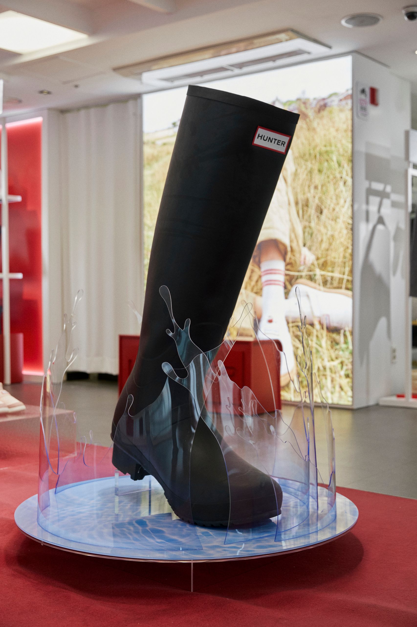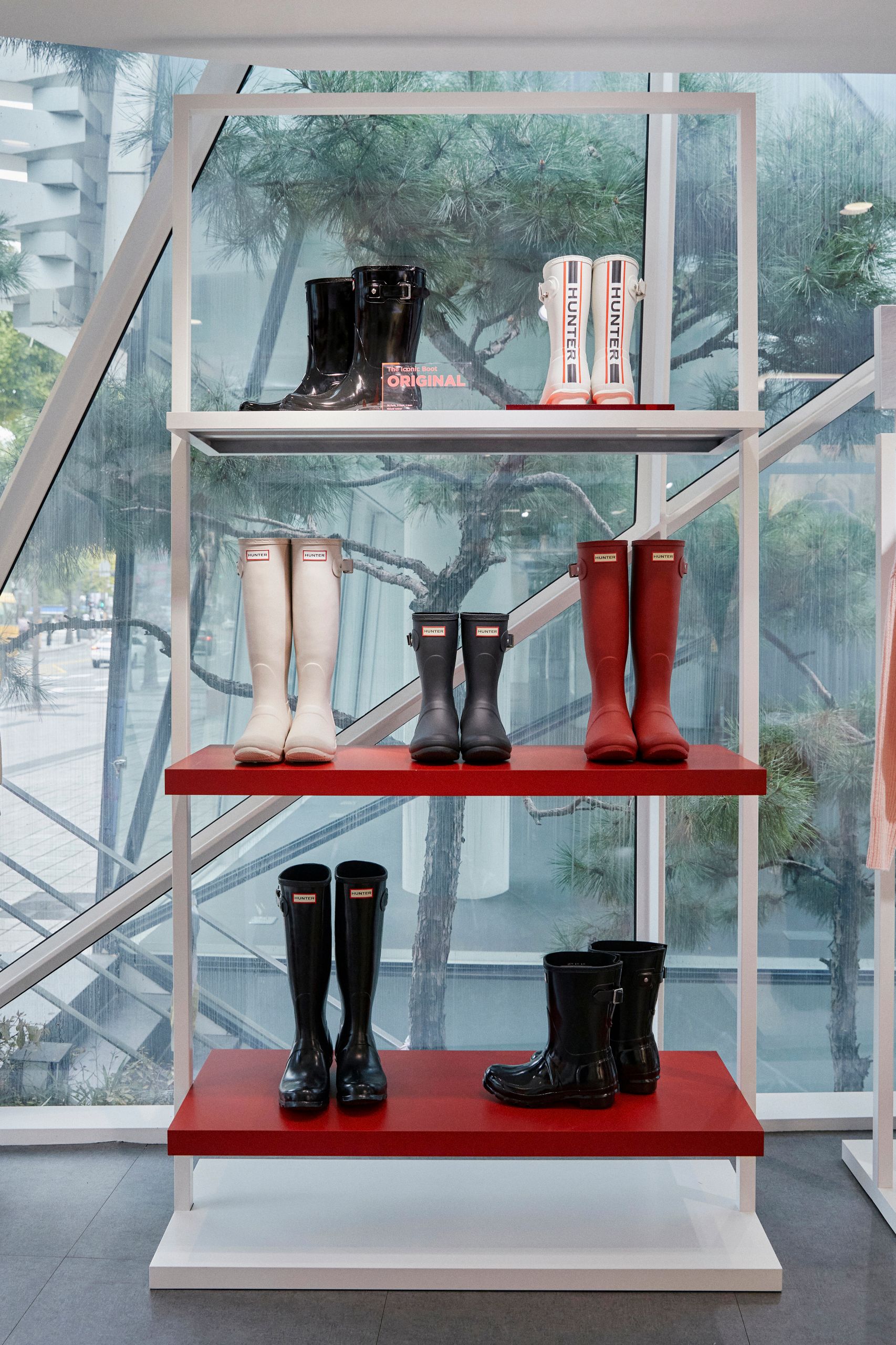 레드 컬러는 헌터의 시그니처이자 브랜드 아이덴티티의 핵심입니다. 강렬하고 대담한 감성을 담고 있으며 헌터의 전통과 현대성을 연결하는 역할이 되기도 하죠. 플래그십 스토어 곳곳에 배치된 레드 컬러는 브랜드의 고유성을 강조하고 고객들에게 시각적으로 기억에 남는 경험을 제공해요.