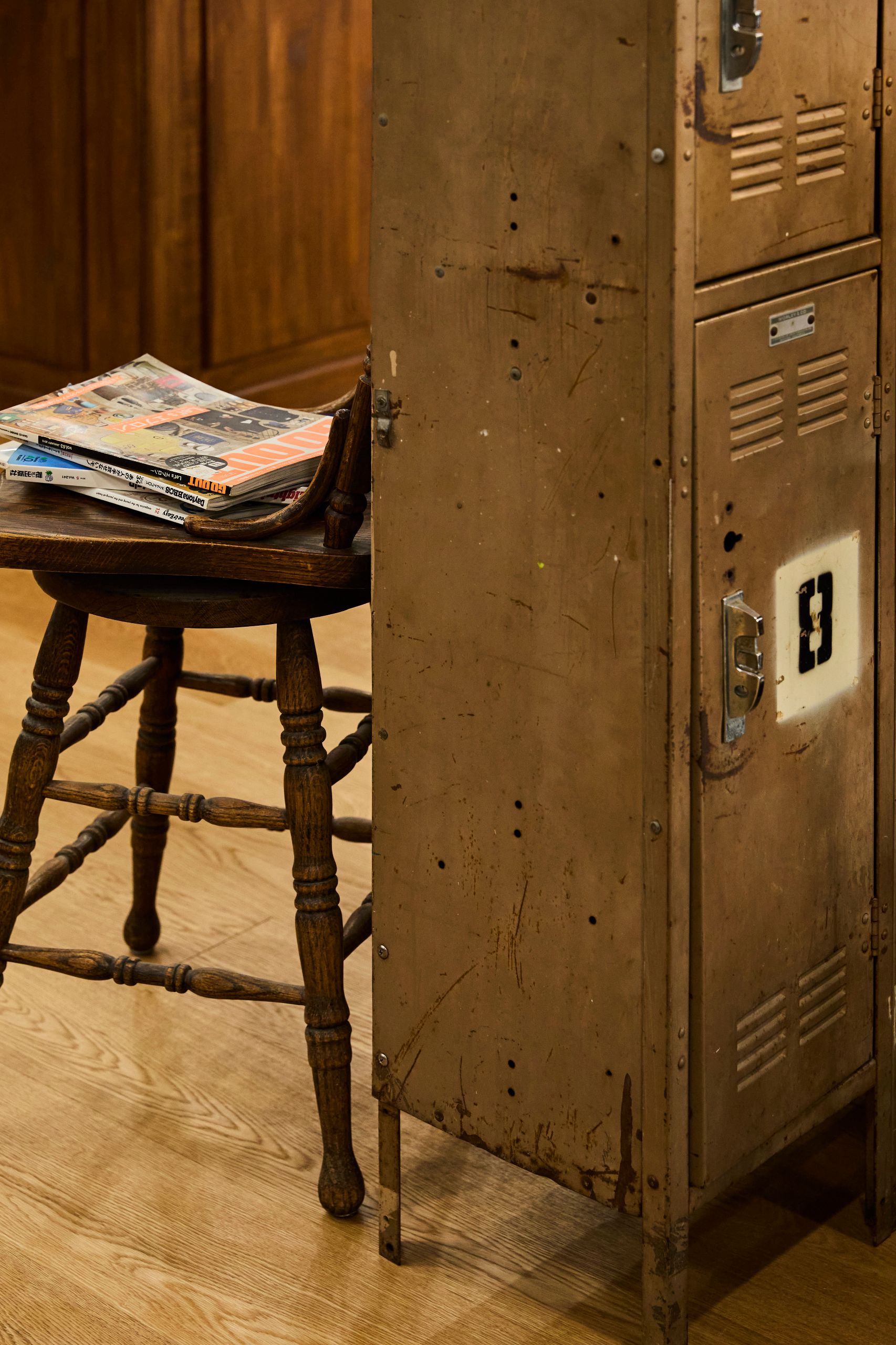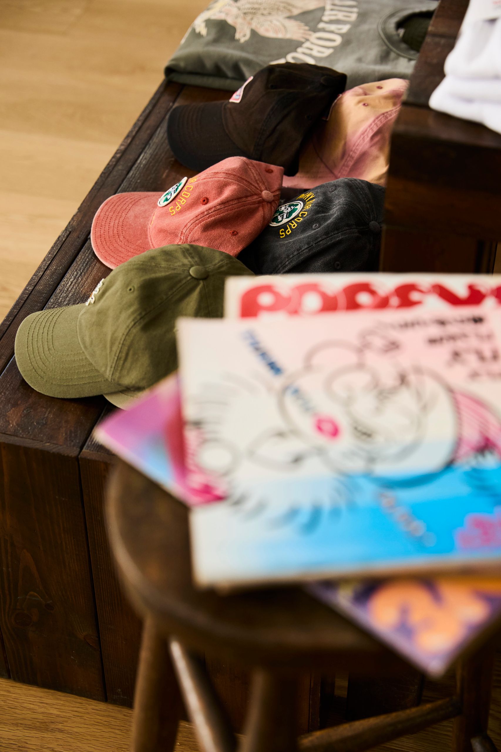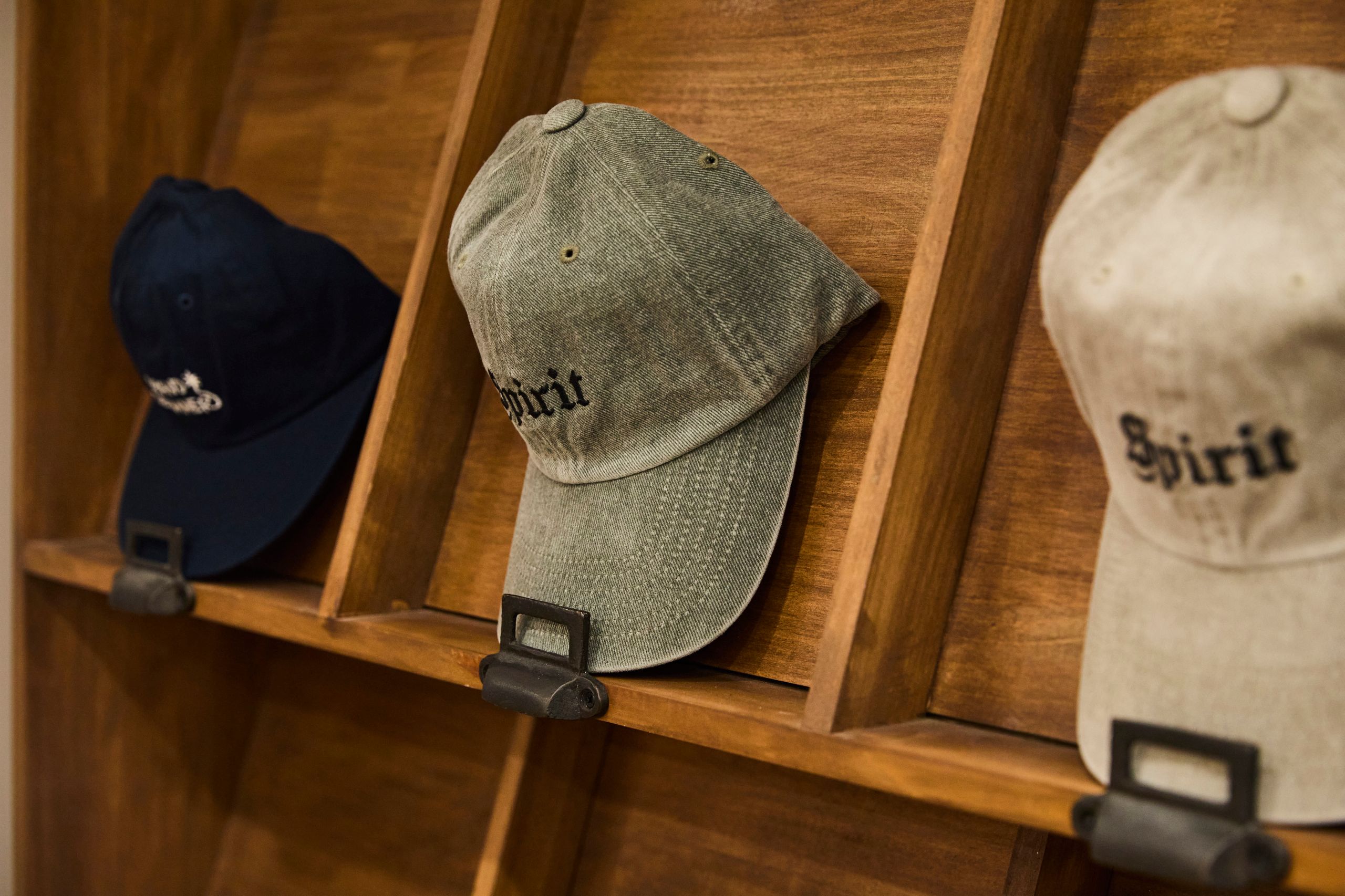 여기저기 긁히고 칠이 벗겨진 오래된 가구 위로 아웃스탠딩의 옷들이 다양하게 놓여 있습니다. 상품의 콘셉트와 소품이 잘 어우러지며 공간의 분위기는 물론, 브랜드가 추구하는 빈티지 무드가 더욱 깊이 있게 느껴집니다.