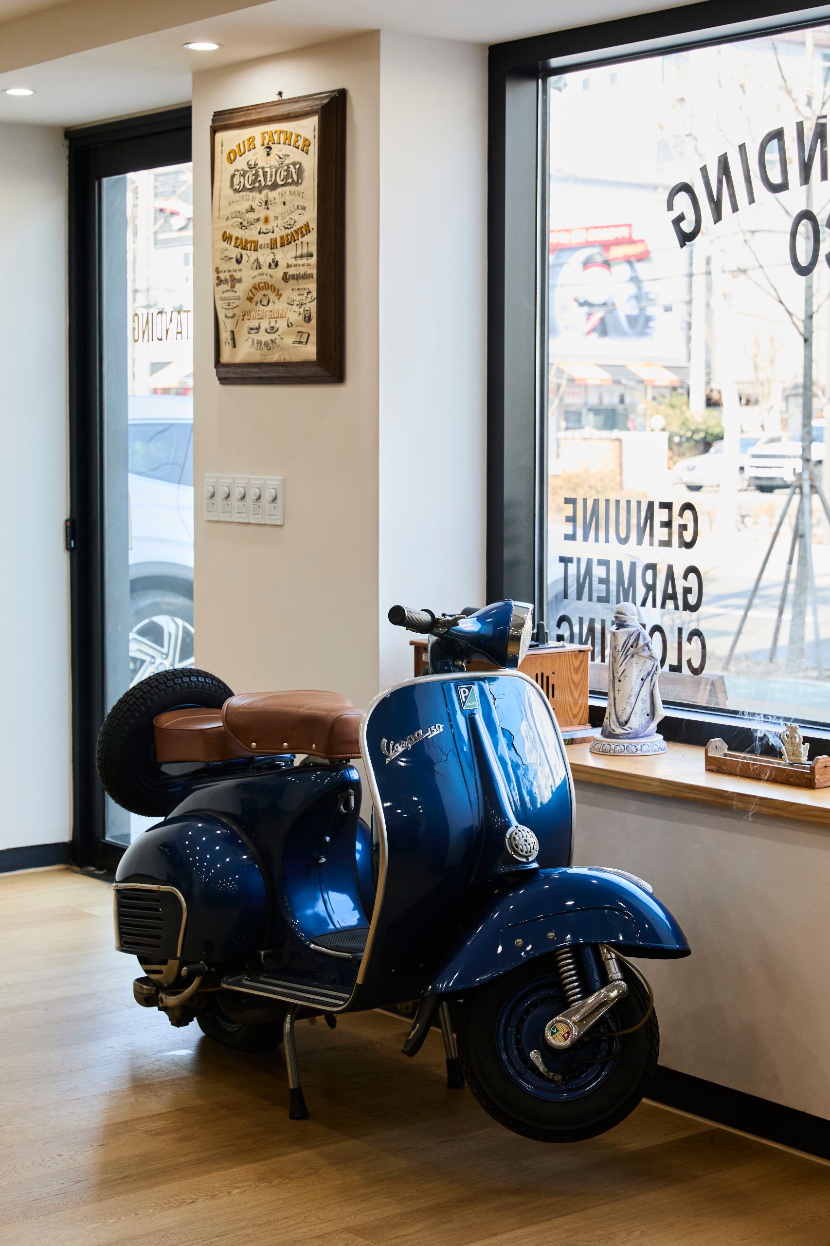 아무래도 저희가 데님 라인을 시그니처로 삼고 있다 보니 상품의 특성을 살리는 동시에 매장의 분위기까지 챙겨줄 소품으로 *유니온 스페셜이라는 재봉틀을 꼭 들이고 싶었습니다. 오래된 기계이기도 하고, 이제 더는 생산하지 않는 모델이라 정말 구하기 힘든 소품이었습니다. 우여곡절 끝에 손에 넣었던 순간을 생각하면 지금도 웃음이 나오네요.