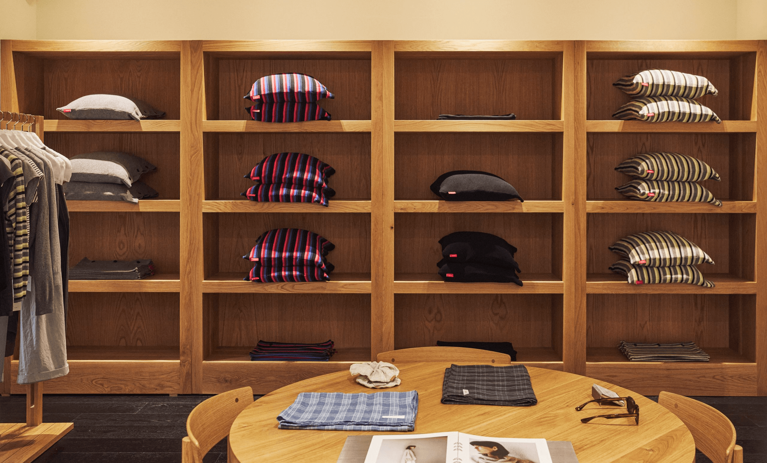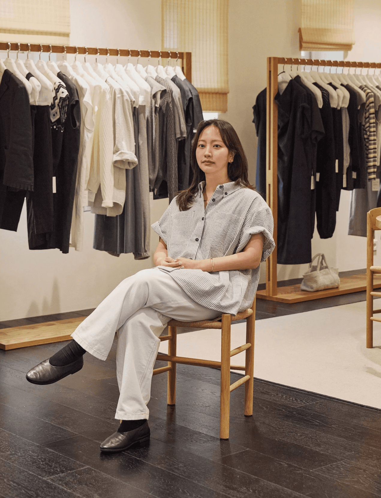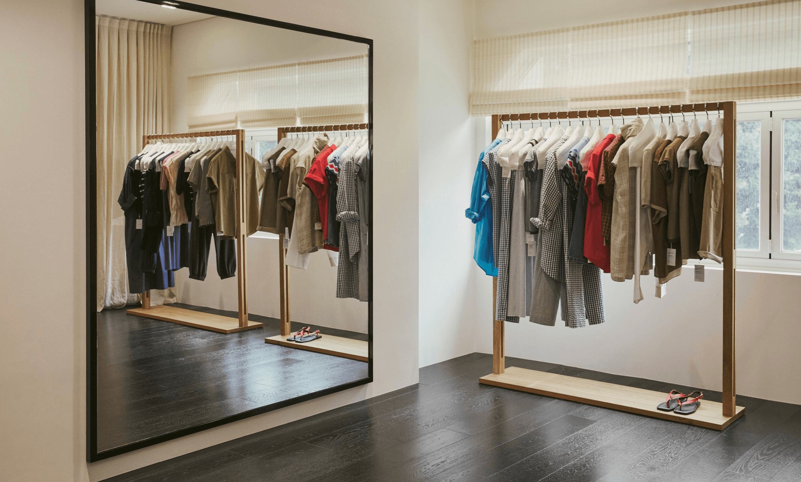 브랜드와 상품에서 느껴지는 분위기가 매장에서도 그대로 느껴졌으면 했어요. 차분한 블랙 색상의 원목 바닥재로 무게감을 줬고, 이어서 우드톤 집기와 곳곳에 배치한 동양적인 요소를 통해 최대한 편안한 인상을 받을 수 있도록 신경 썼어요.