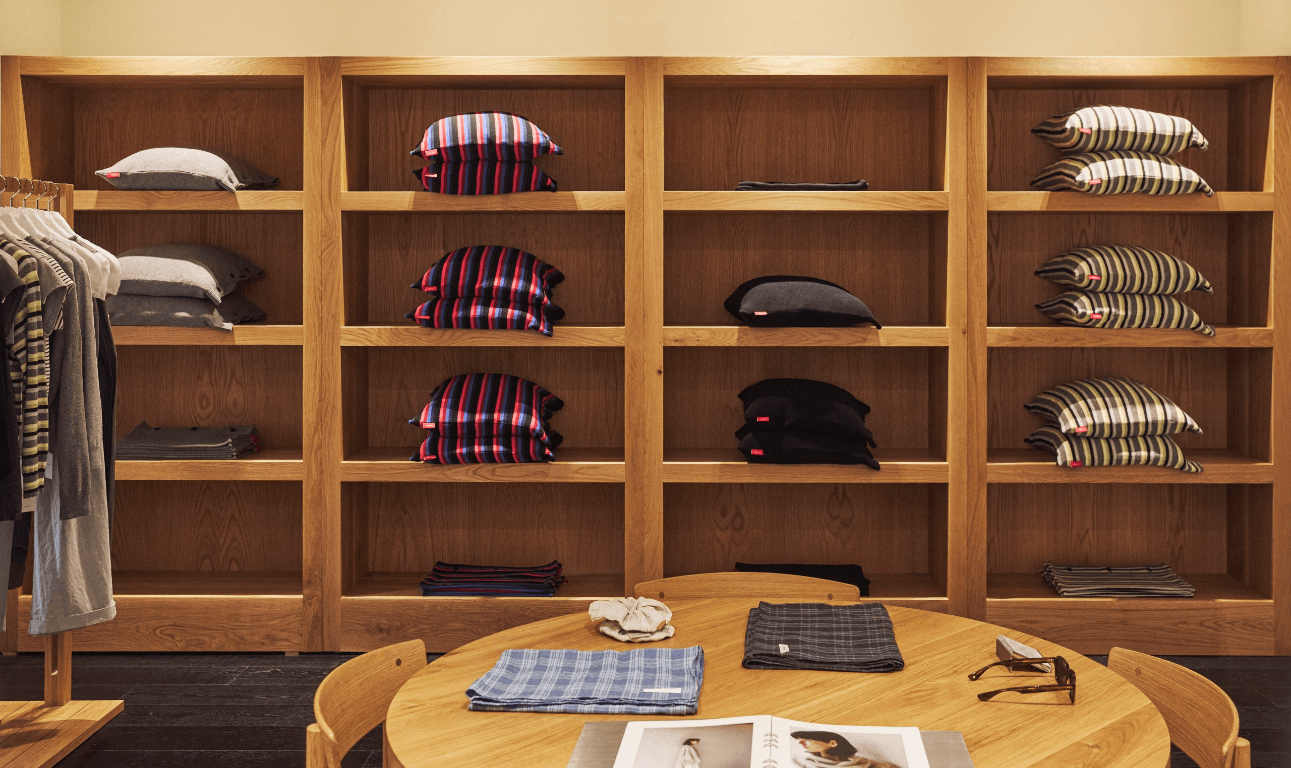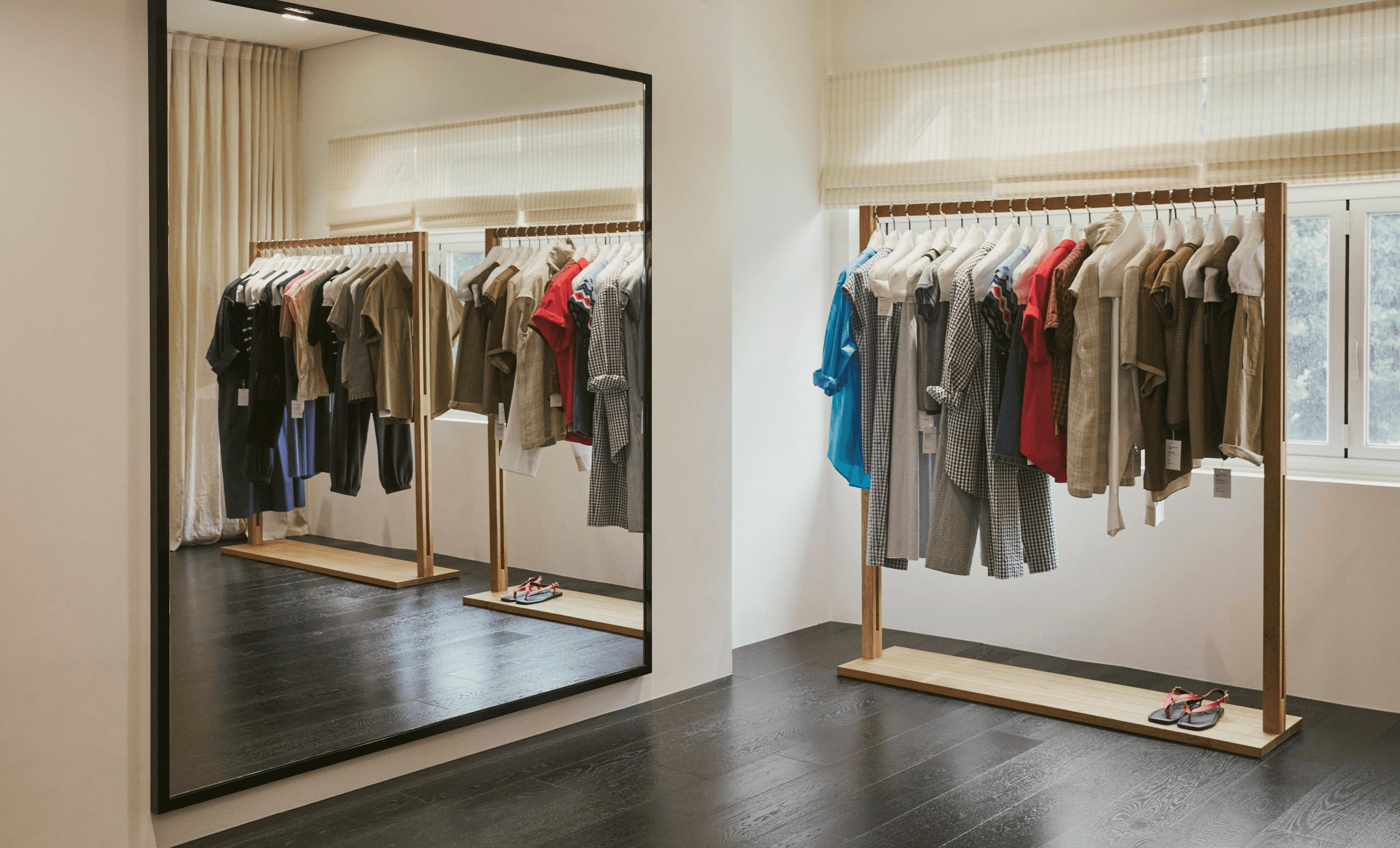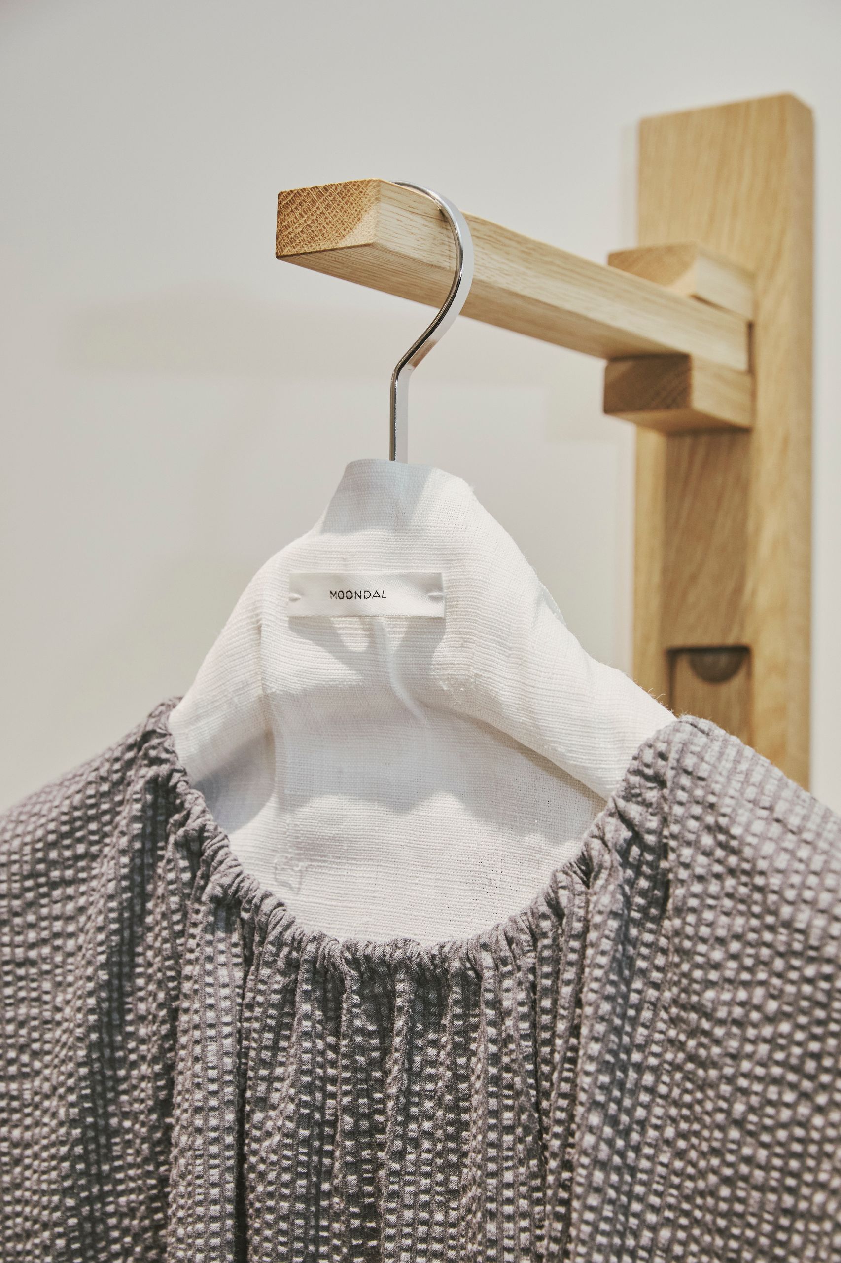 브랜드와 상품에서 느껴지는 분위기가 매장에서도 그대로 느껴졌으면 했어요. 차분한 블랙 색상의 원목 바닥재로 무게감을 줬고, 이어서 우드톤 집기와 곳곳에 배치한 동양적인 요소를 통해 최대한 편안한 인상을 받을 수 있도록 신경 썼어요.