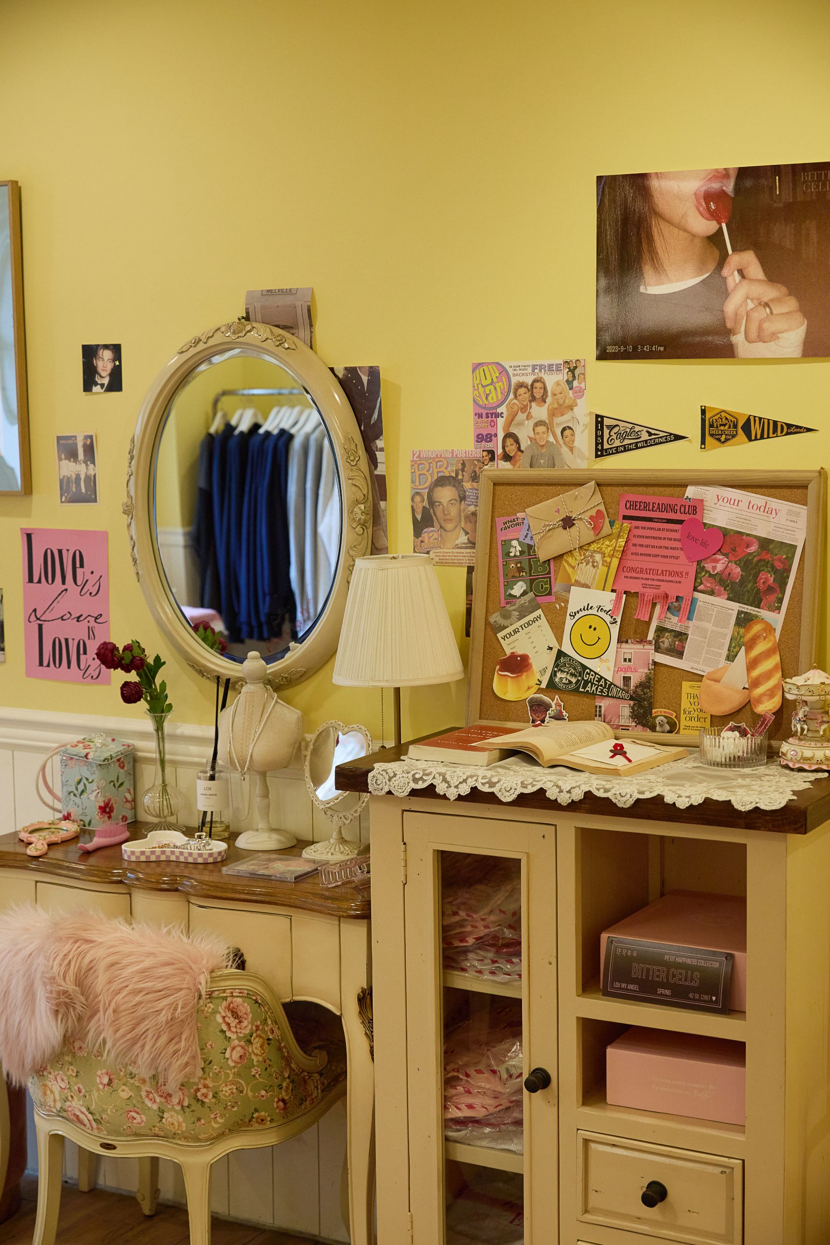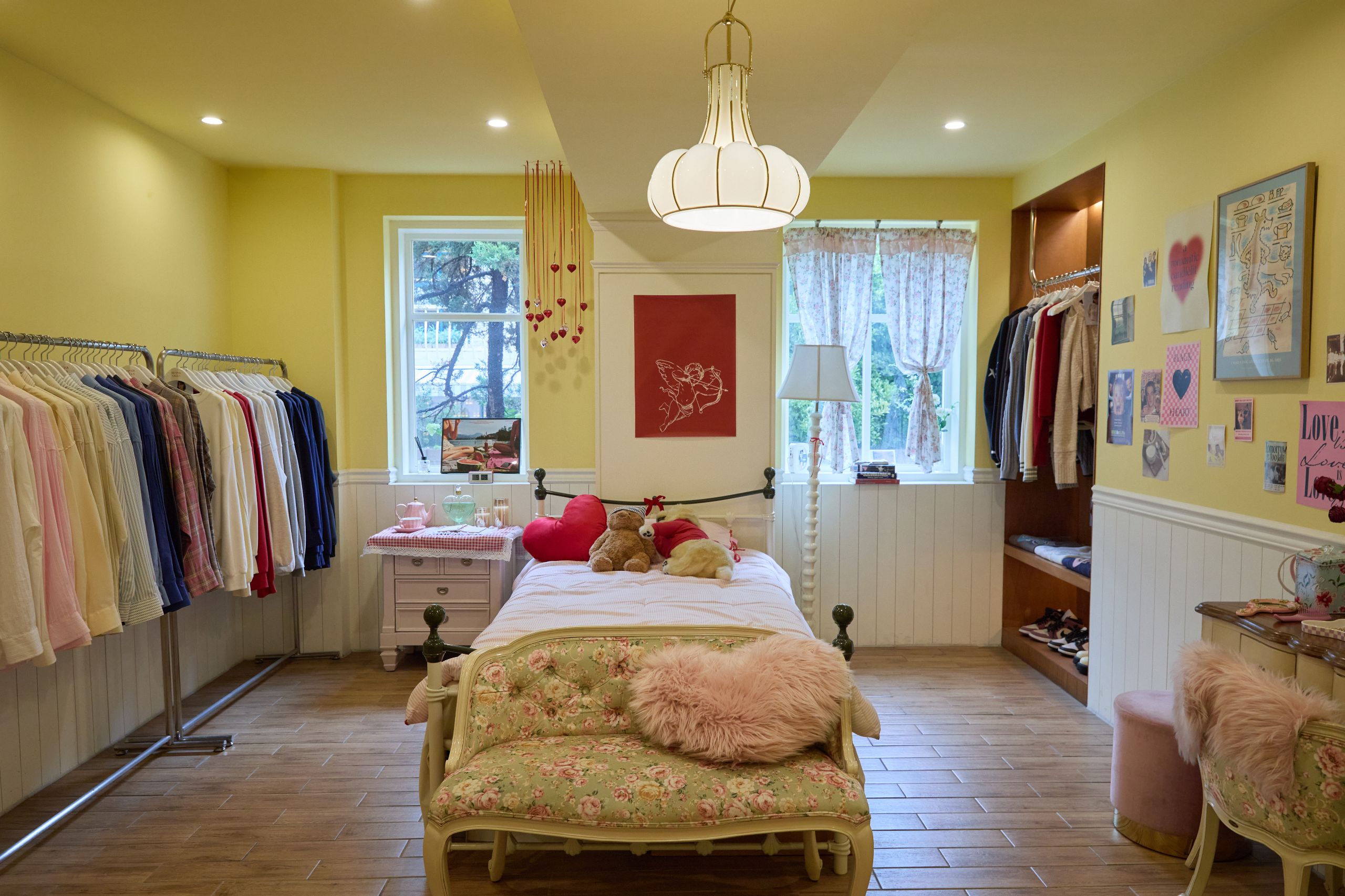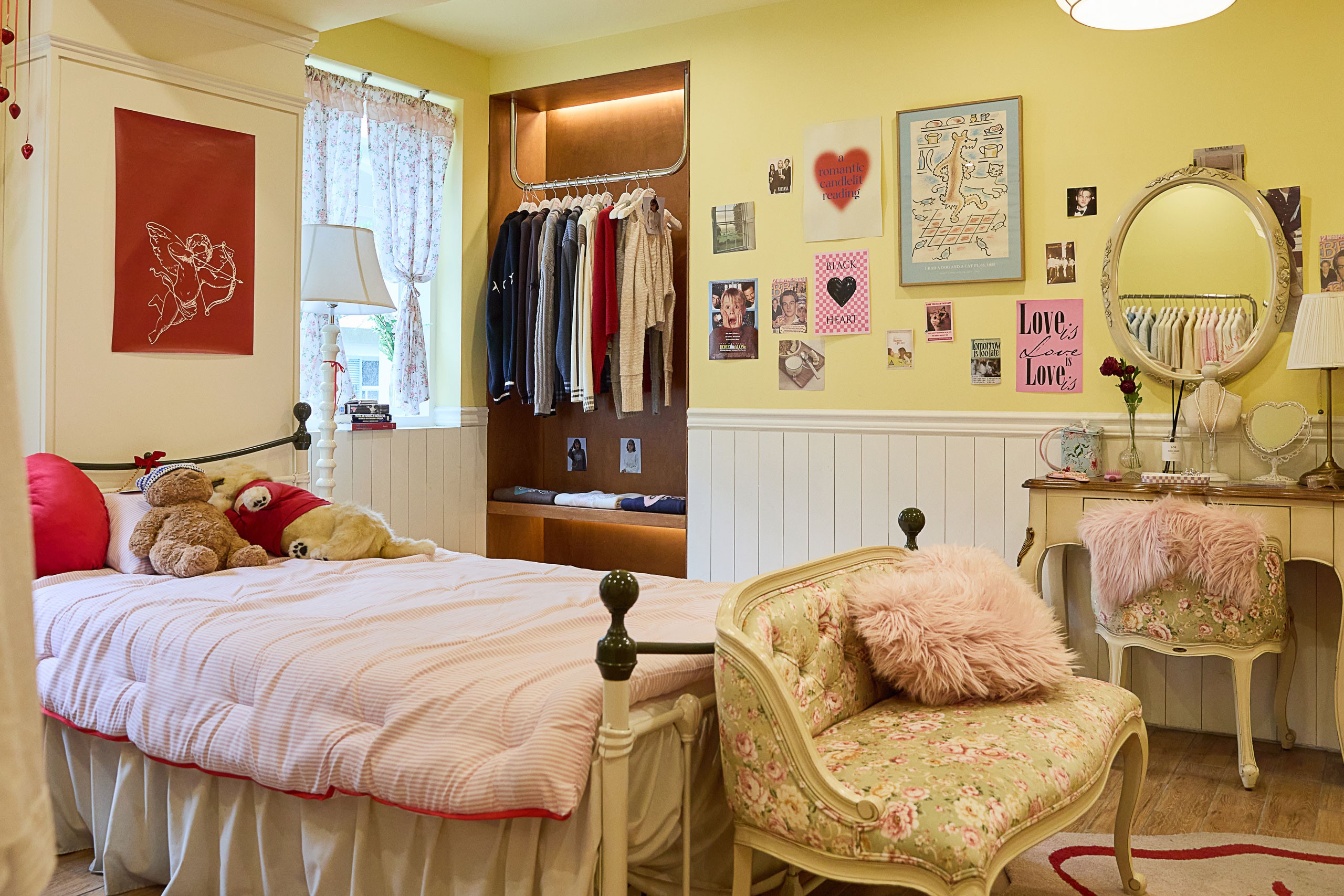 디렉터 캘리포니아 소녀의 집을 상상하며 꾸몄어요. 솔직 당당한 캐릭터를 반영해 외벽은 핑크 컬러로 존재감을 주었고, 내부는 따뜻한 노란색 벽지를 바탕으로 클래식하고 빈티지한 무드가 느껴지도록 했어요. 쇼룸에 들어서 거실을 지나 작은 통로를 따라 들어가면 사랑스럽고 개성 넘치는 방을 만날 수 있는데요, 이곳에는 실제 로컬 라디오 소리가 흘러나오도록 해 생동감을 더했습니다.