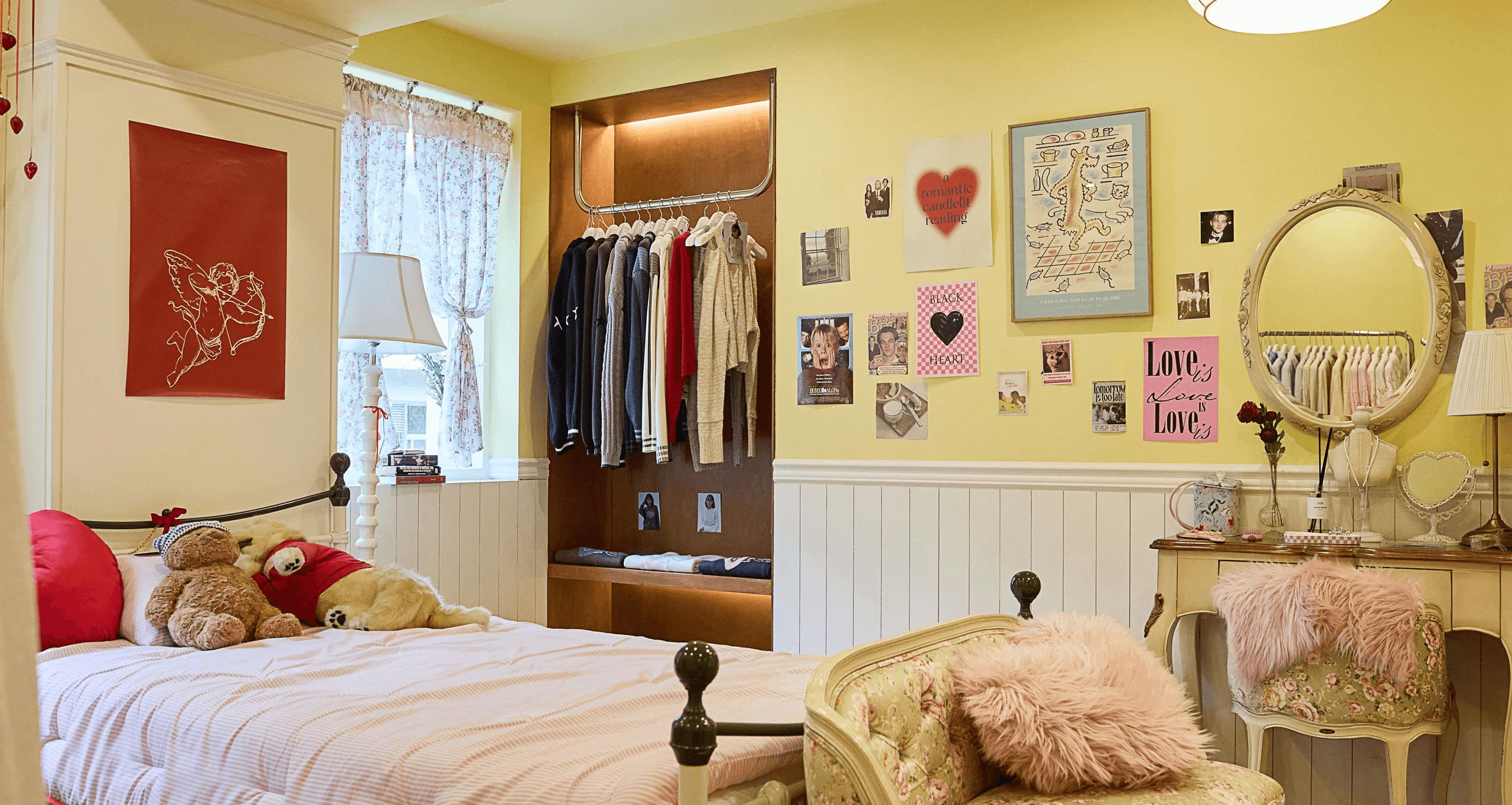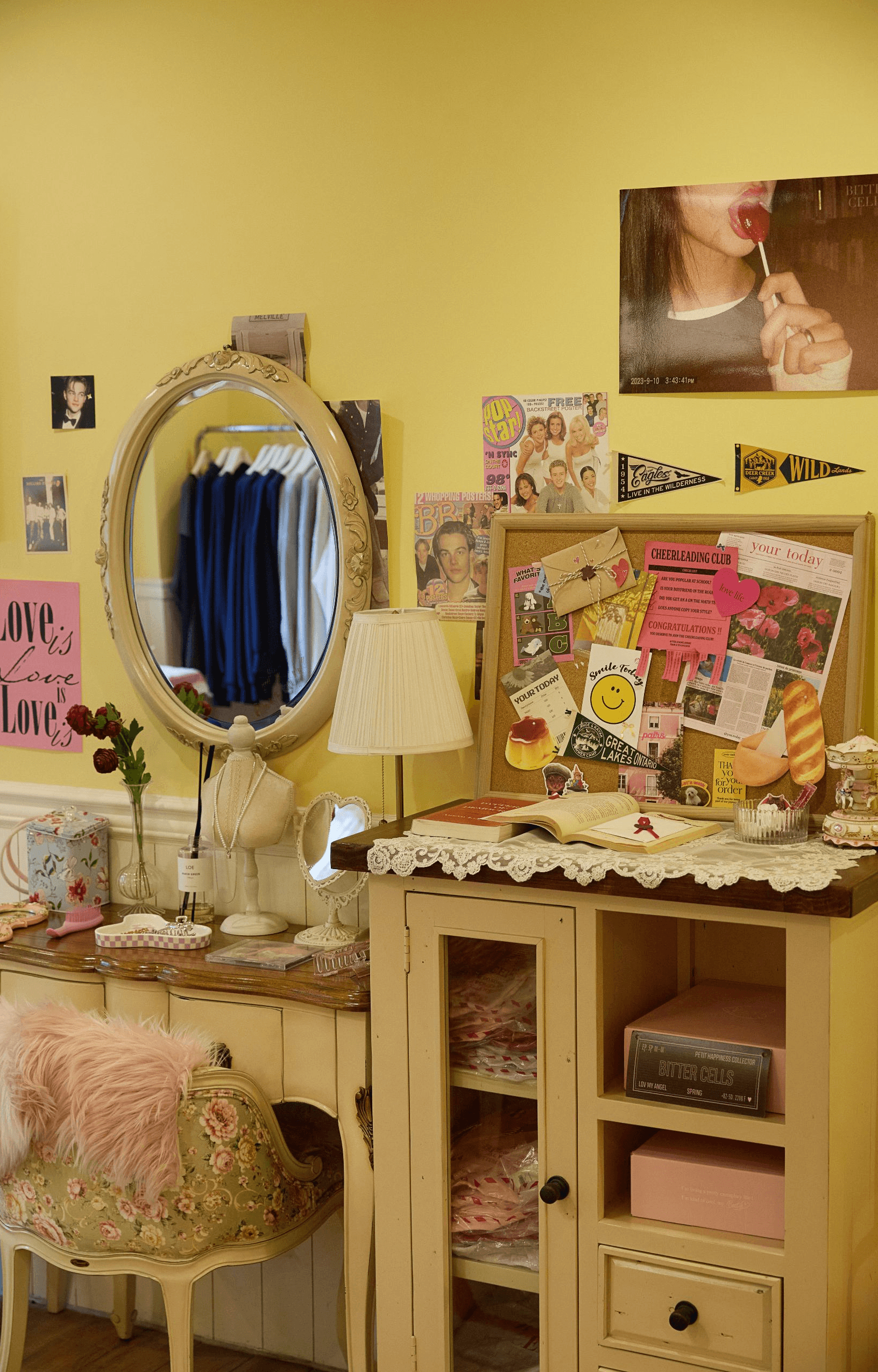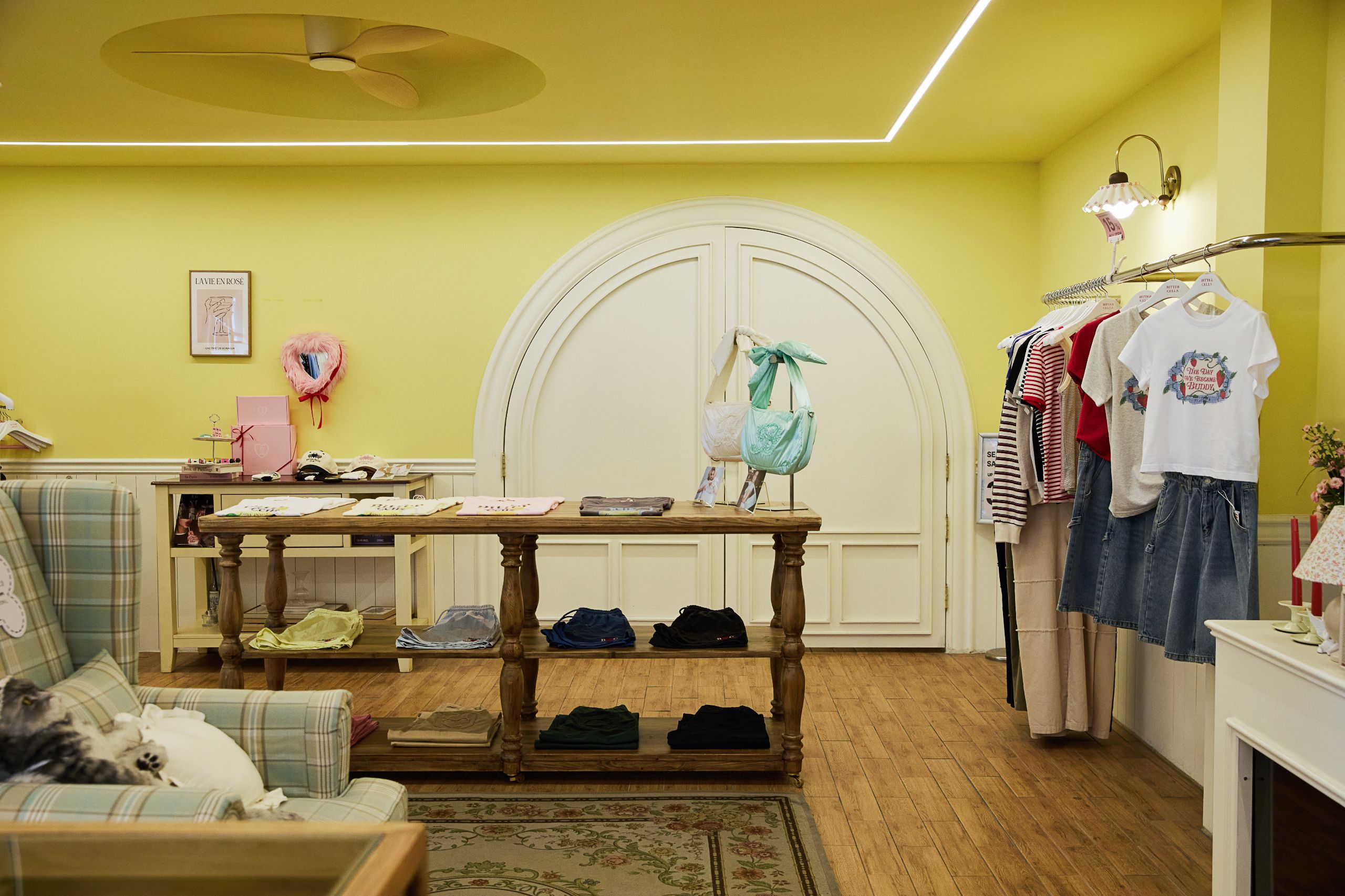 디렉터 캘리포니아 소녀의 집을 상상하며 꾸몄어요. 솔직 당당한 캐릭터를 반영해 외벽은 핑크 컬러로 존재감을 주었고, 내부는 따뜻한 노란색 벽지를 바탕으로 클래식하고 빈티지한 무드가 느껴지도록 했어요. 쇼룸에 들어서 거실을 지나 작은 통로를 따라 들어가면 사랑스럽고 개성 넘치는 방을 만날 수 있는데요, 이곳에는 실제 로컬 라디오 소리가 흘러나오도록 해 생동감을 더했습니다.