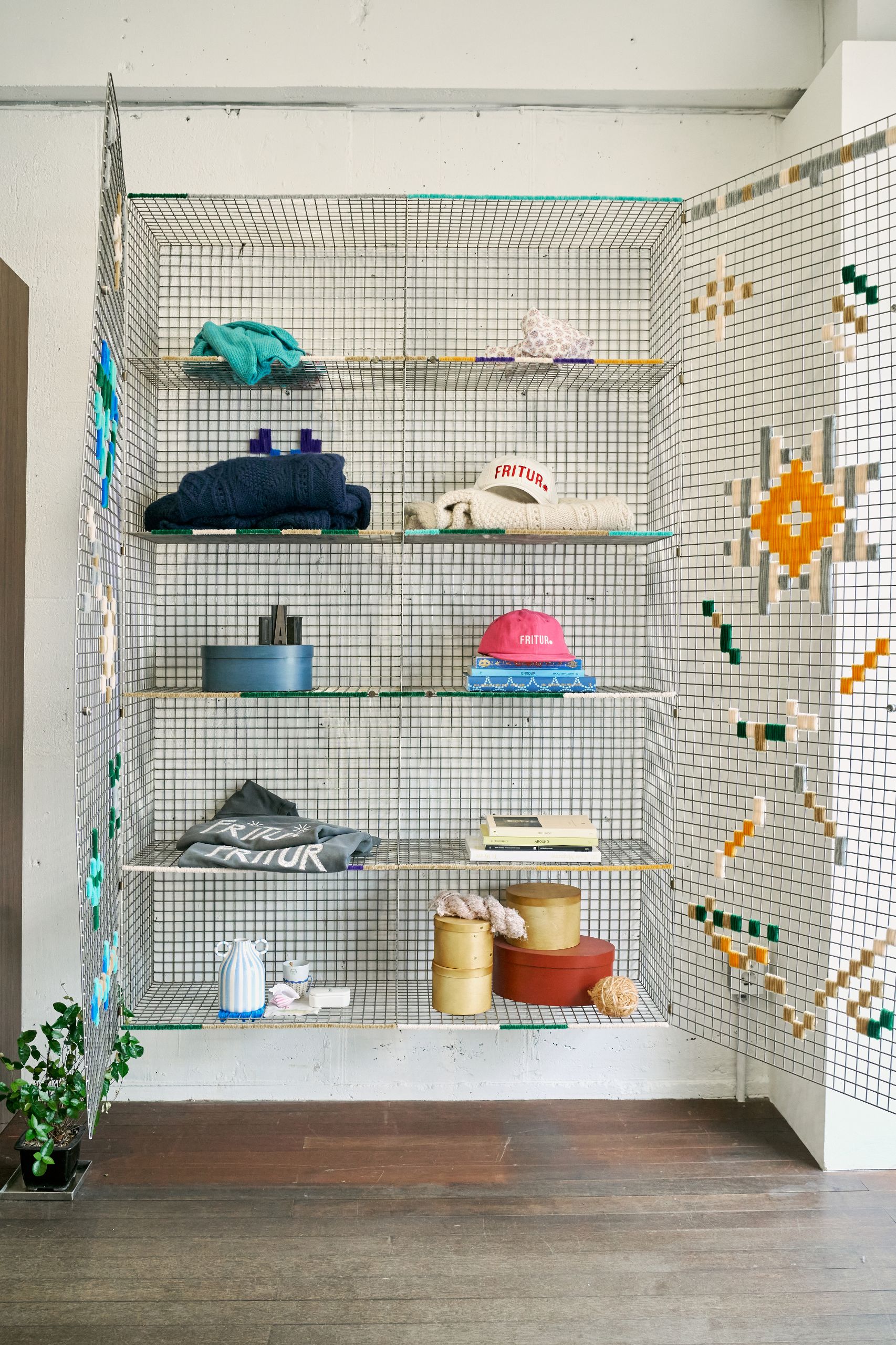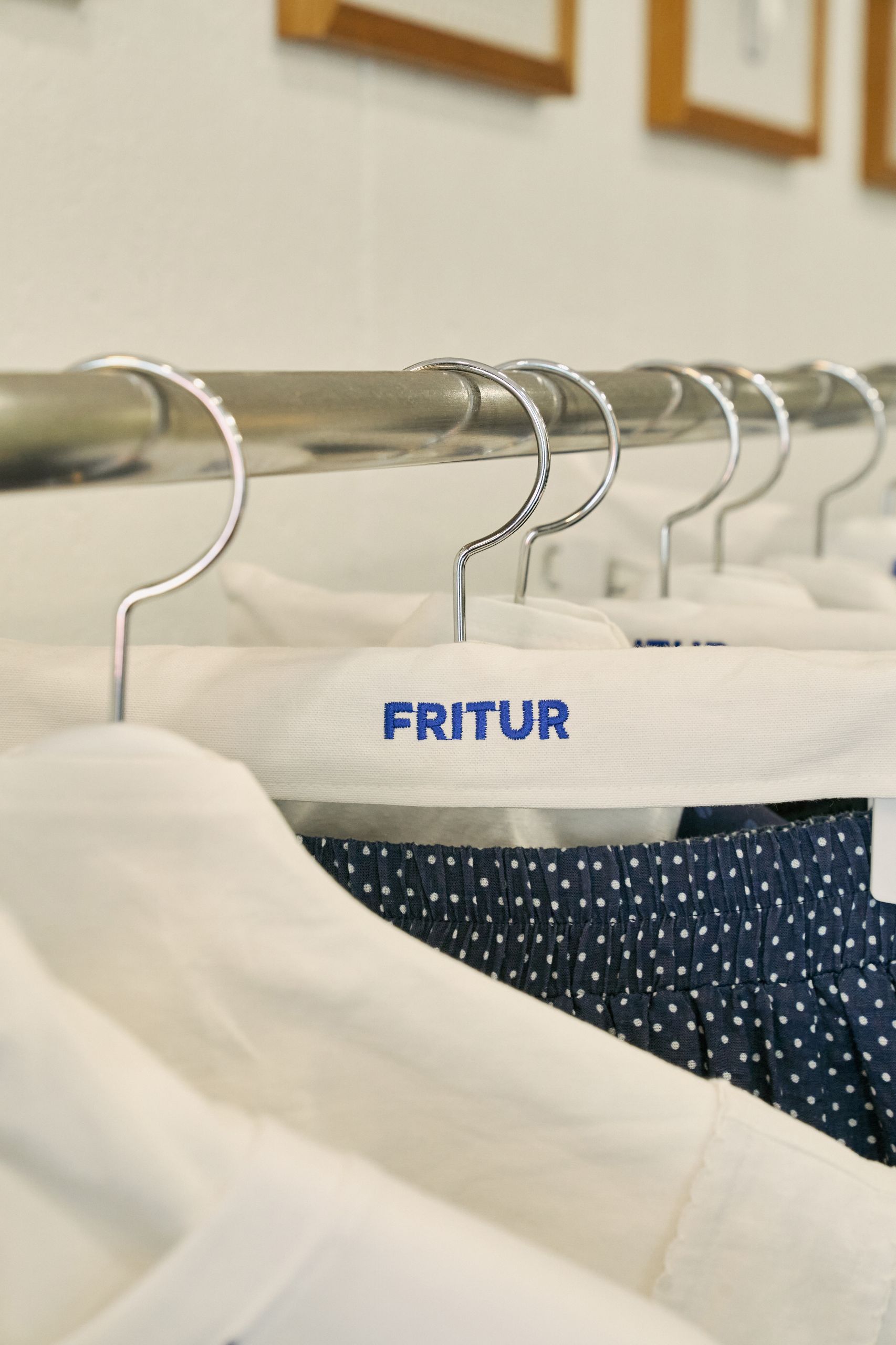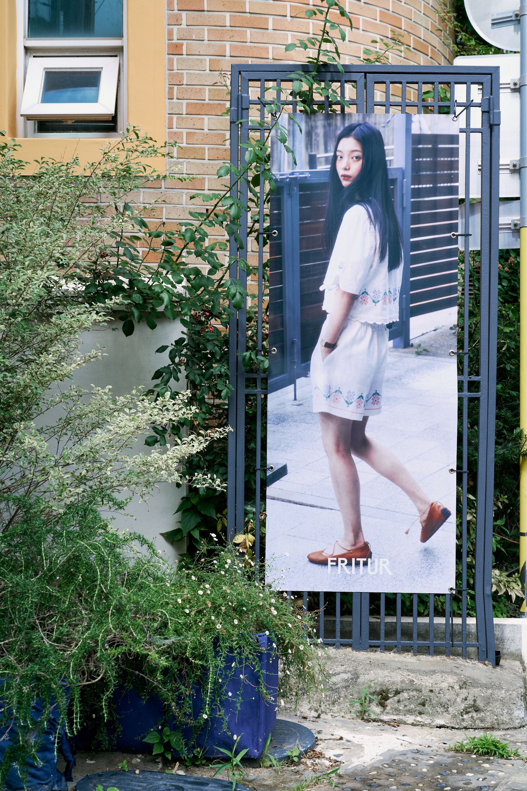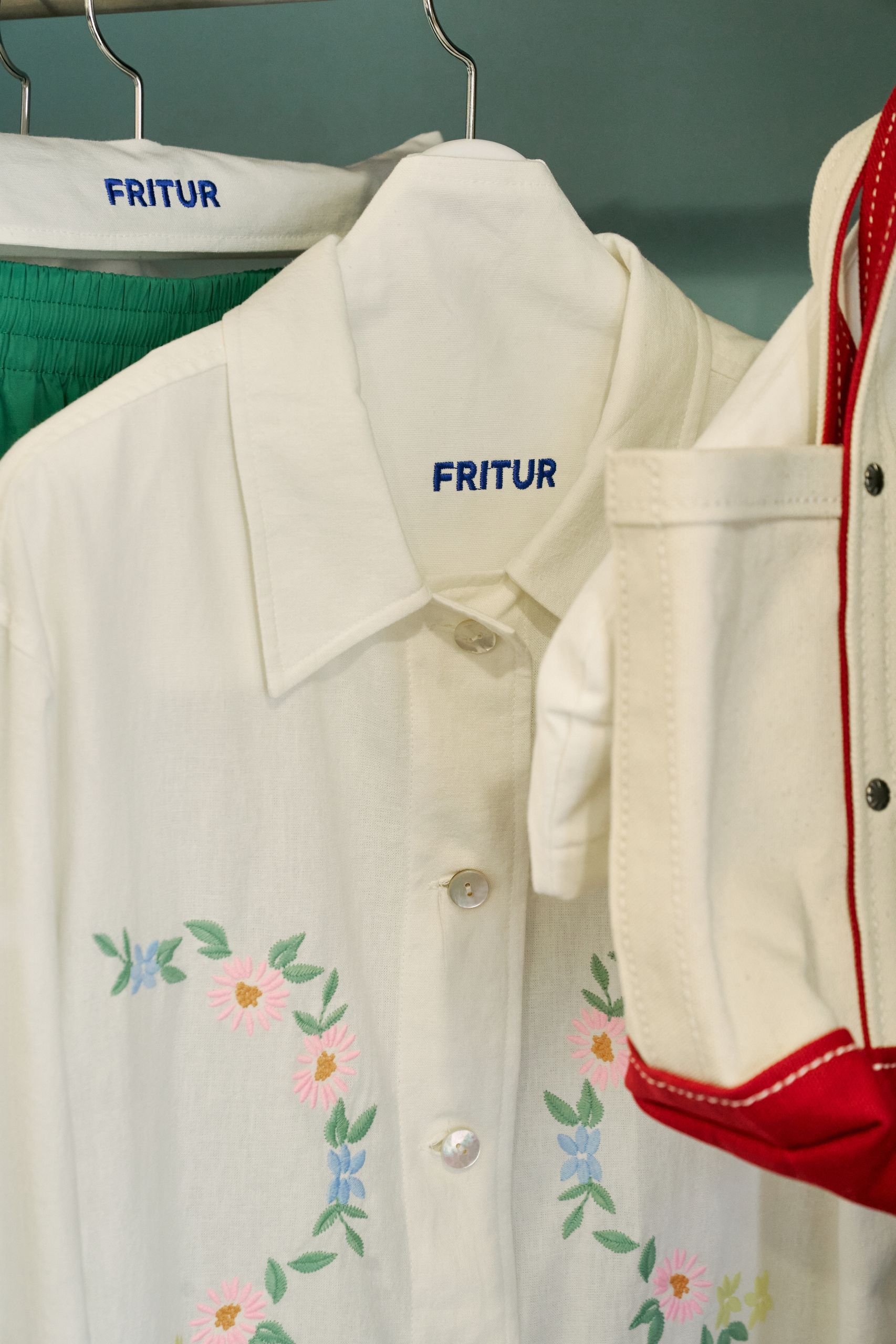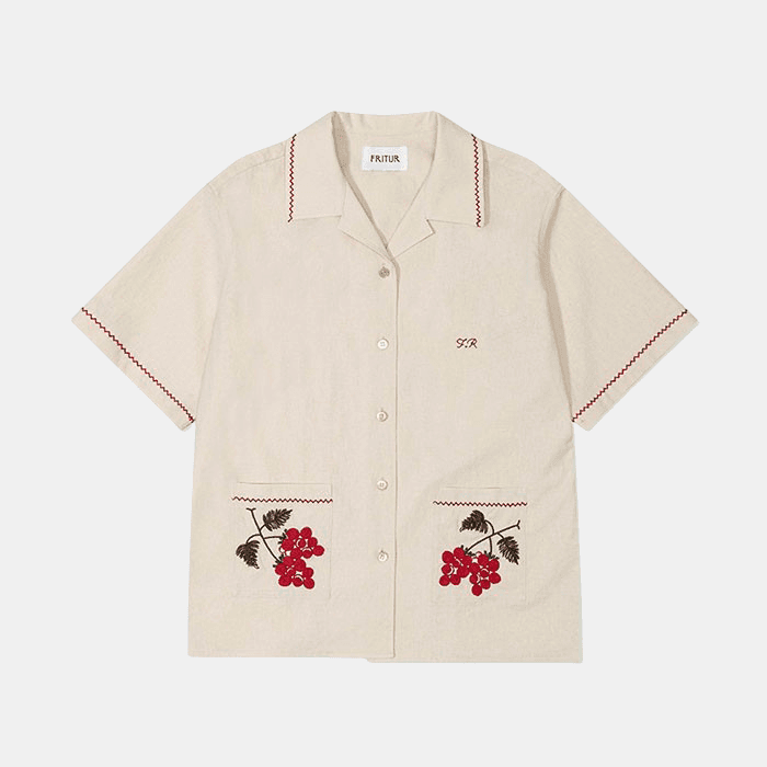 디렉터 브랜드를 온전히 표현하기 위해 프리터의 슬로건인 'FRITUR AND HANDCRAFTS'를 VMD에 그대로 재현했습니다. 외관엔 브랜드 컬러인 블루를 사용했고 내부는 네덜란드 디자이너인 피트 하인 이크의 패치 워크 스타일의 테이블로 중심을 잡았어요. 손으로 자수를 넣은 액자와 스테인레스 벽 장식의 디테일에도 프리터의 미학을 담았습니다. 이번 시즌은 통기성 좋은 소재에 섬세한 자수를 넣은 리넨 셔츠를 소개하고 싶습니다. 프리터의 여름이 셔츠에 담겨있어요.