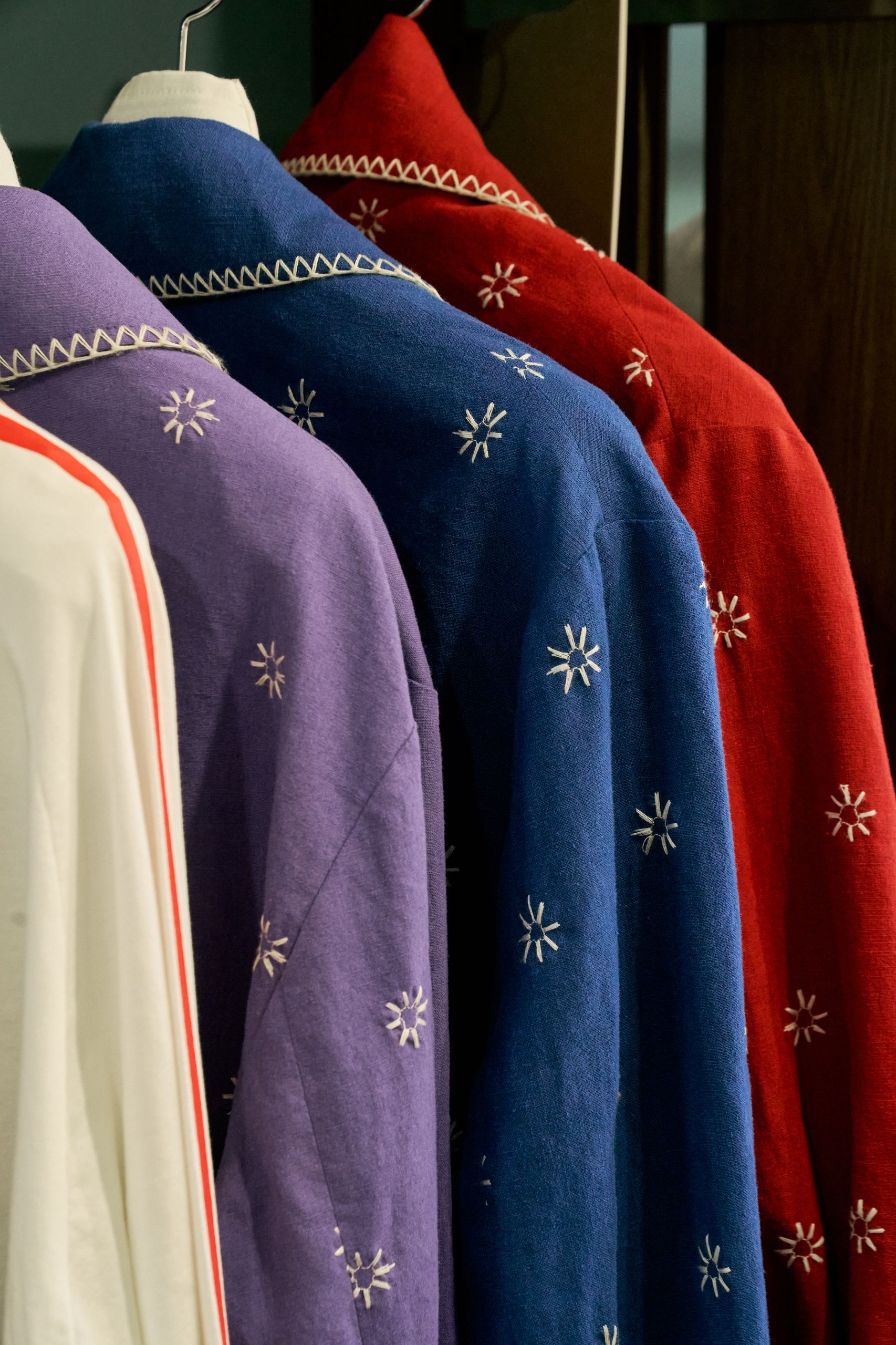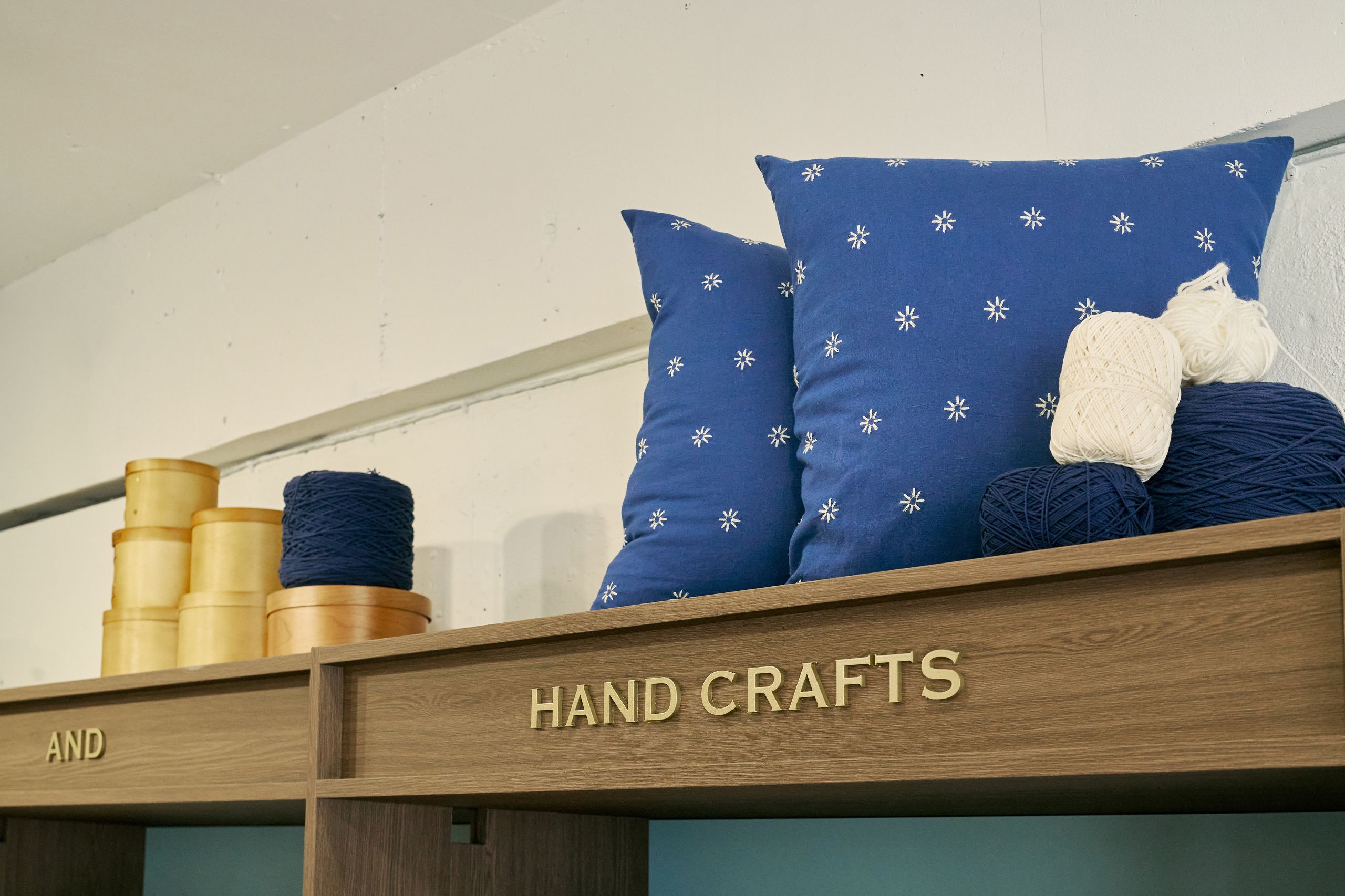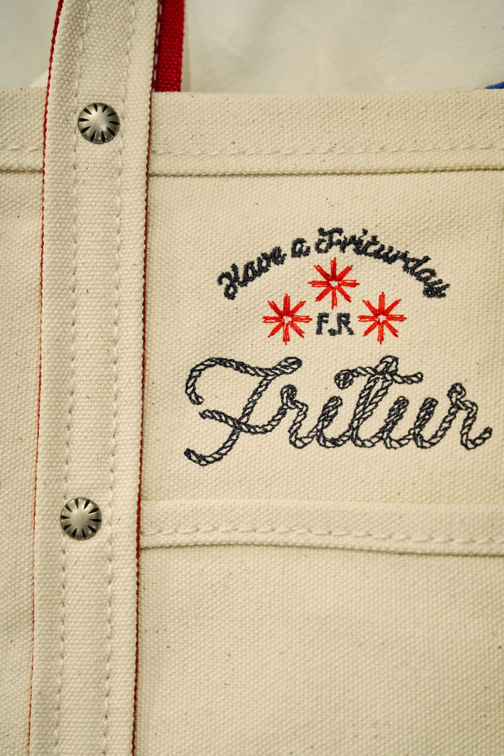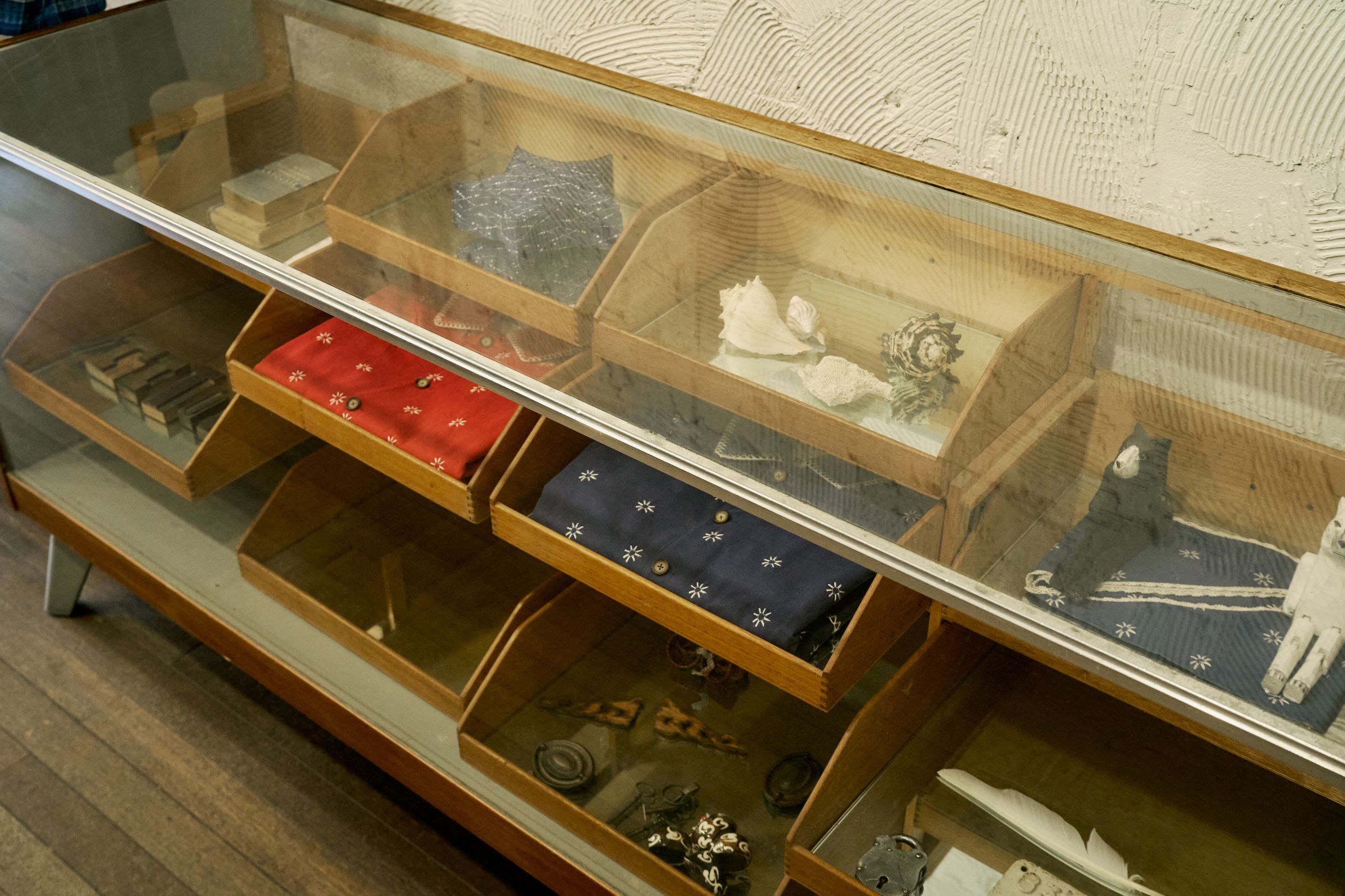 디렉터 브랜드를 온전히 표현하기 위해 프리터의 슬로건인 'FRITUR AND HANDCRAFTS'를 VMD에 그대로 재현했습니다. 외관엔 브랜드 컬러인 블루를 사용했고 내부는 네덜란드 디자이너인 피트 하인 이크의 패치 워크 스타일의 테이블로 중심을 잡았어요. 손으로 자수를 넣은 액자와 스테인레스 벽 장식의 디테일에도 프리터의 미학을 담았습니다. 이번 시즌은 통기성 좋은 소재에 섬세한 자수를 넣은 리넨 셔츠를 소개하고 싶습니다. 프리터의 여름이 셔츠에 담겨있어요.