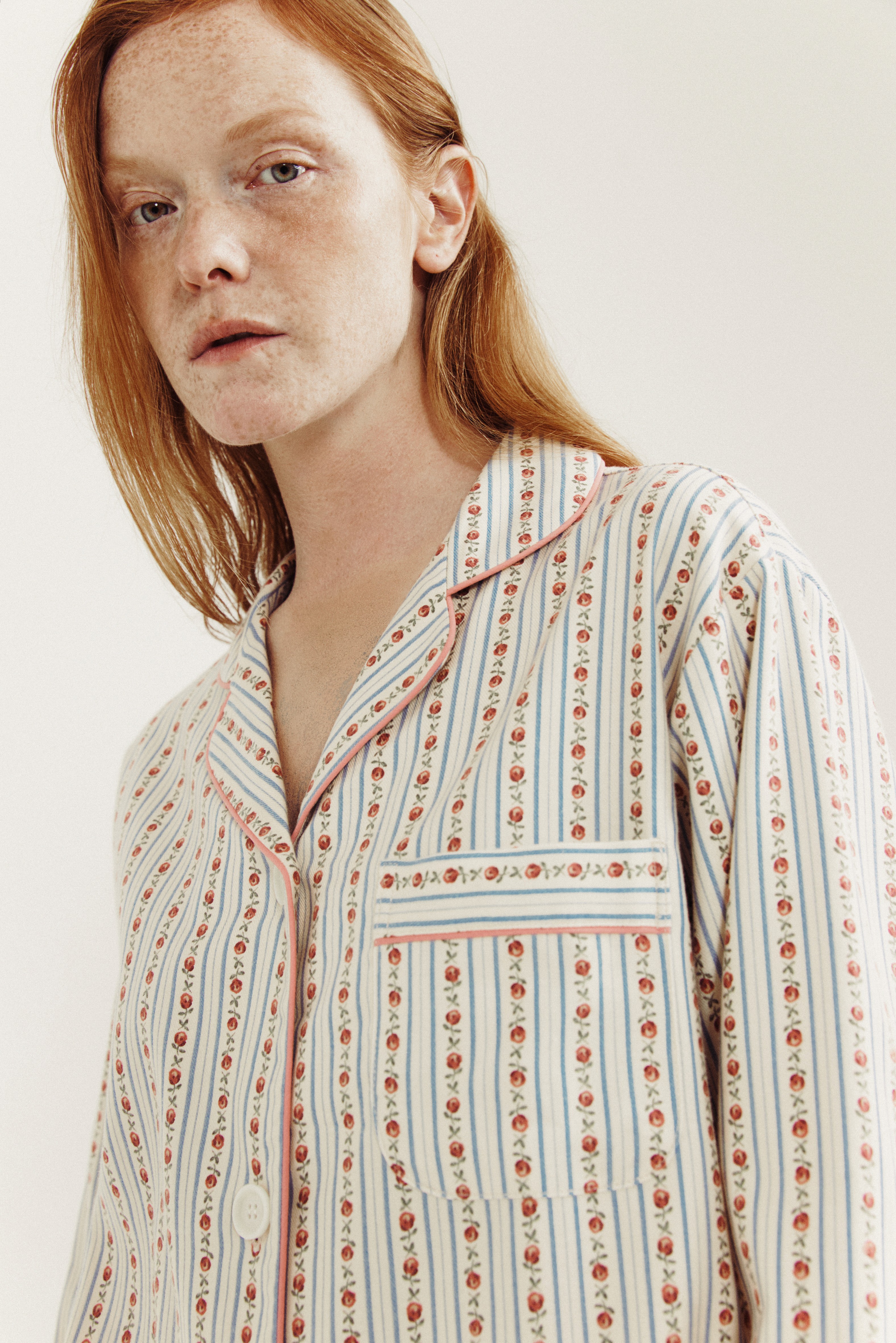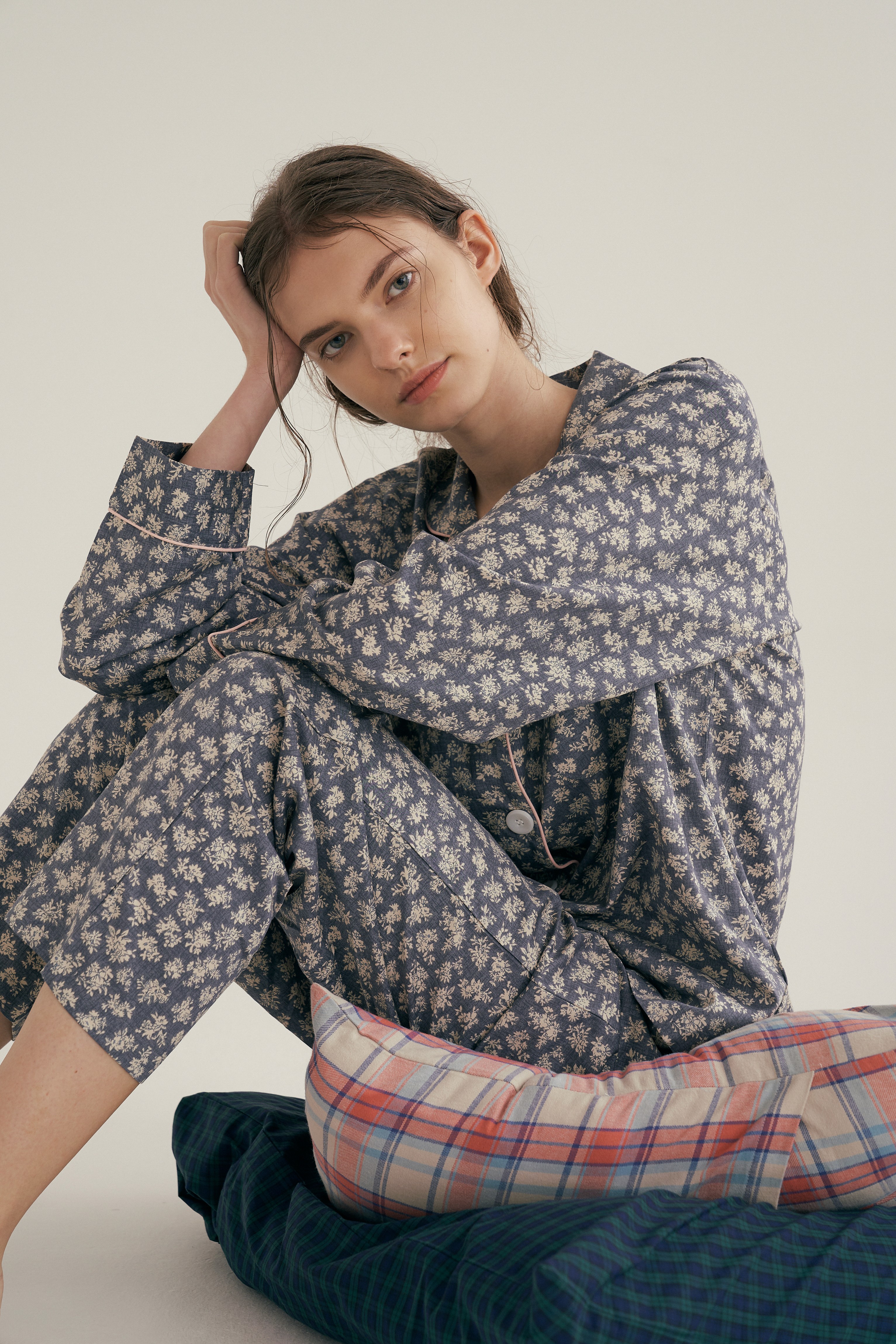 헬싱키를 소개할 때 언급했던 시그니처 블렌드를 이번에는 가을과 겨울에 맞춰 도톰하게 짜 웜 모달 원단으로 개발시켜 사용한 잠옷입니다. 2023년 팝업 전시 이후, 전시를 통해 선보인 아카이빙용 빈티지 잠옷에 대한 문의가 늘어나는 걸 보고 일부러 조금 촌스러운 느낌의 스트라이프와 플라워 패턴을 교차시킨 패턴을 만들었는데, 따뜻하고 부드러운 촉감과 색감 덕분인지 출시와 동시에 곧바로 큰 인기를 얻은 아이템이랍니다.