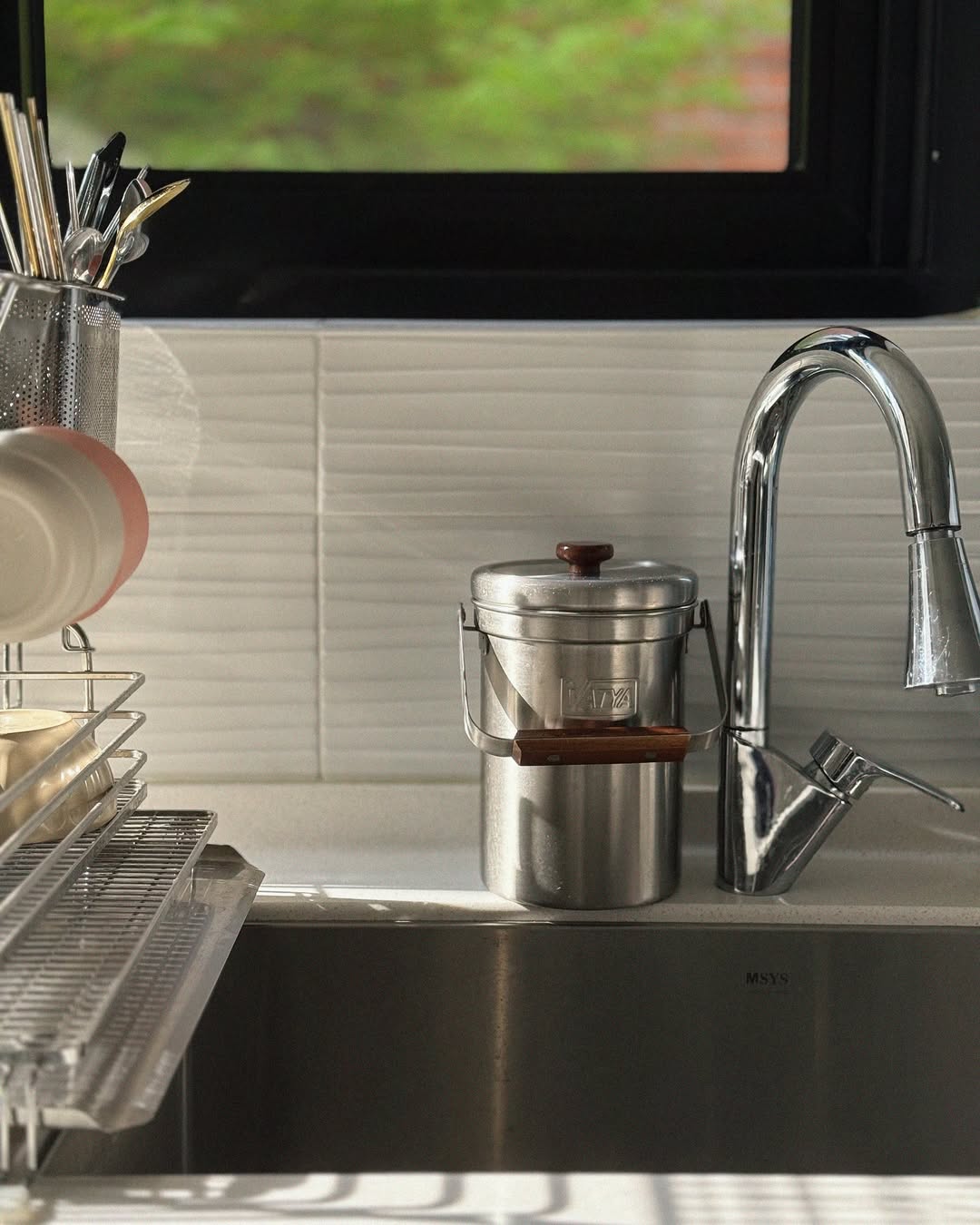 기존의 음식물 쓰레기통에는 냄새가 쉽게 배이거나 변색이 잘 된다는 단점이 있었어요. 그래서 보통 음식물 쓰레기통을 쓰지 않고 얼리거나 베란다에 모아두었다가 버리는 집이 많았죠. 스테인리스는 냄새를 차단할 수 있어 소비자를 설득할 수 있을 거란 확신이 있었습니다. 쓰레기통처럼 보이지 않았으면 해서 파스타 면 삶는 냄비처럼 디자인했는데 그 덕분인지 싱크대 위에 올려두고 쓰는 분이 정말 많이 보였어요.