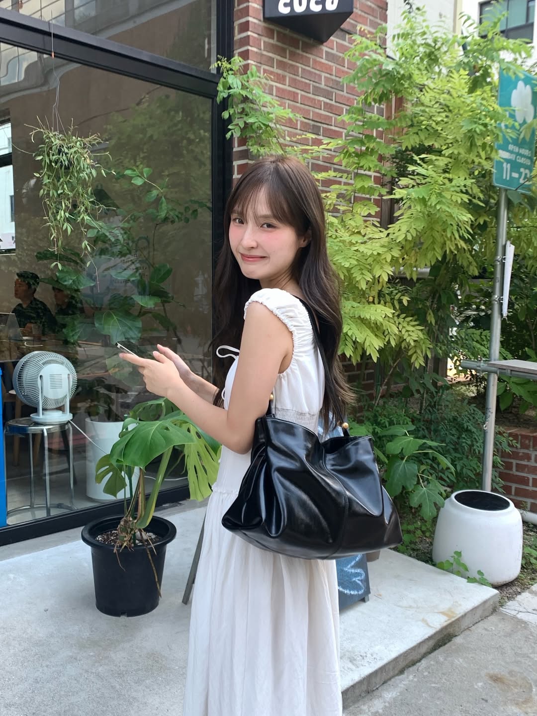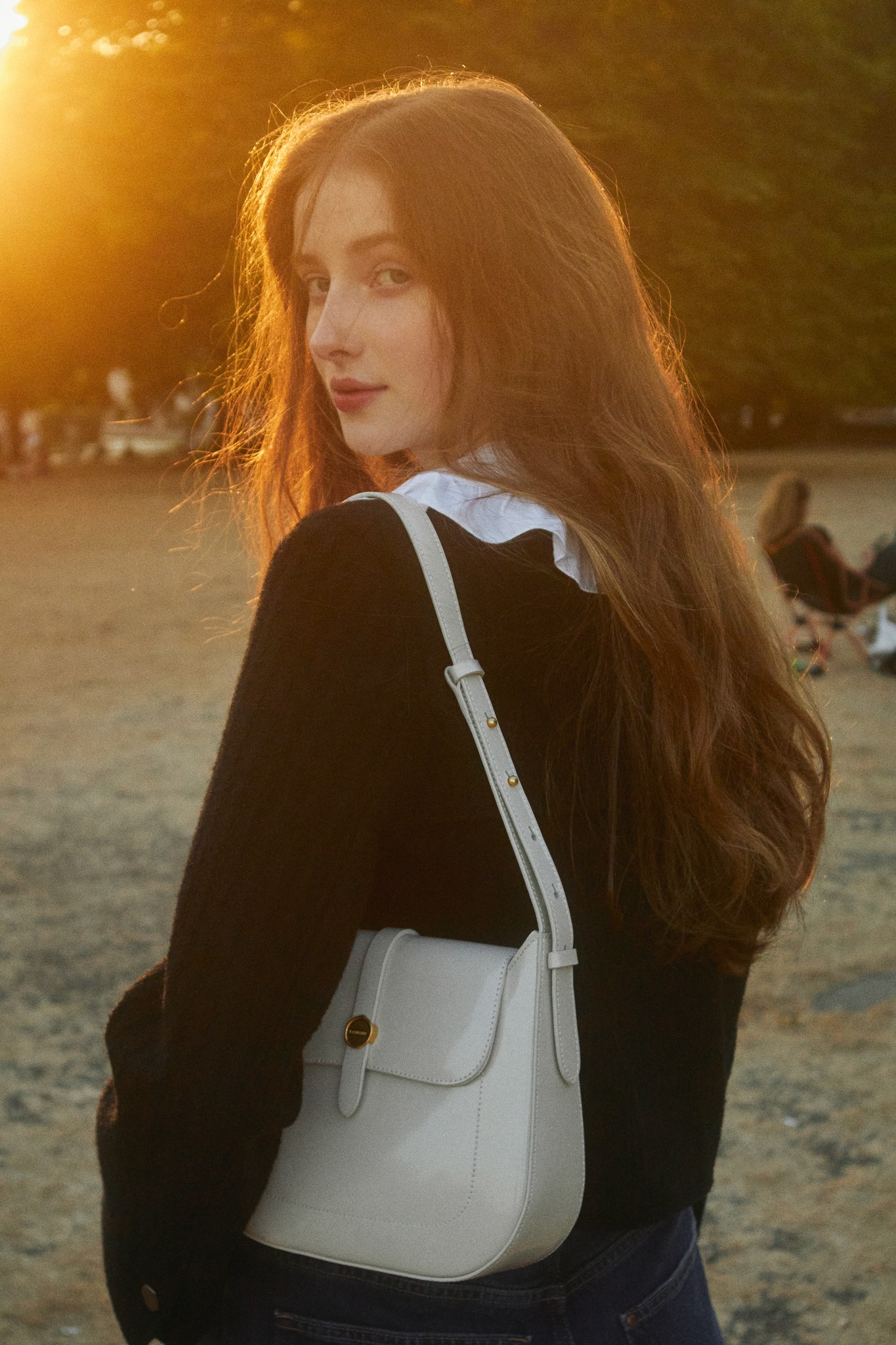 이번 시즌 새롭게 선보이는 '삭 루시앙'은 조각가 리처드 세라의 건축적 조형에서 출발했어요. 어깨 위에 자연스럽게 안착되는 곡선 하나에도 수많은 테스트가 더해졌죠. 유려하게 흐르는 곡선과 이를 단단히 받쳐주는 골드 볼 장식이 만나, 하나의 오브제처럼 균형감 있는 형태를 완성해 냈어요.