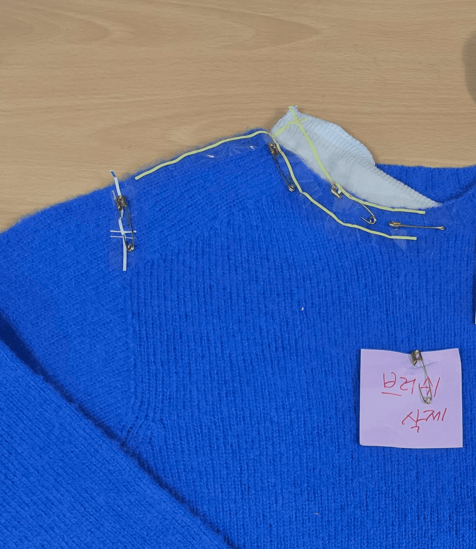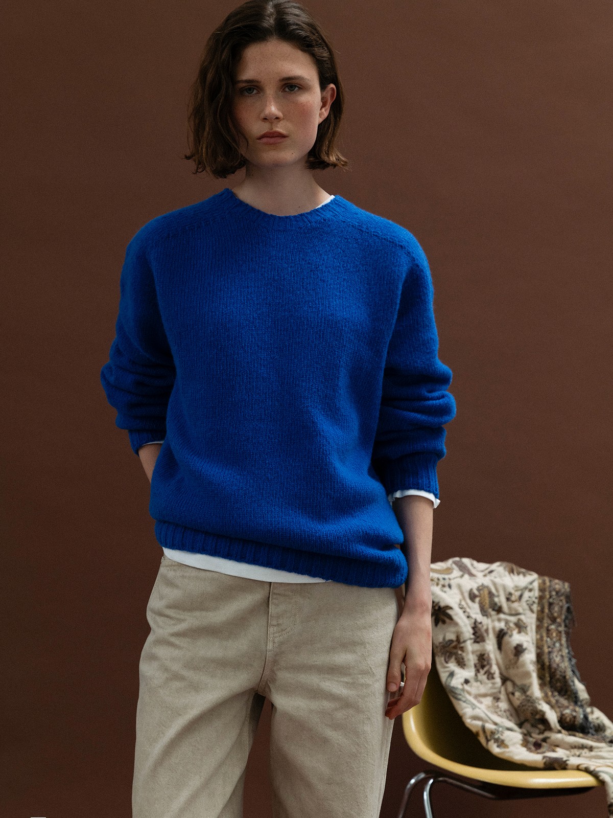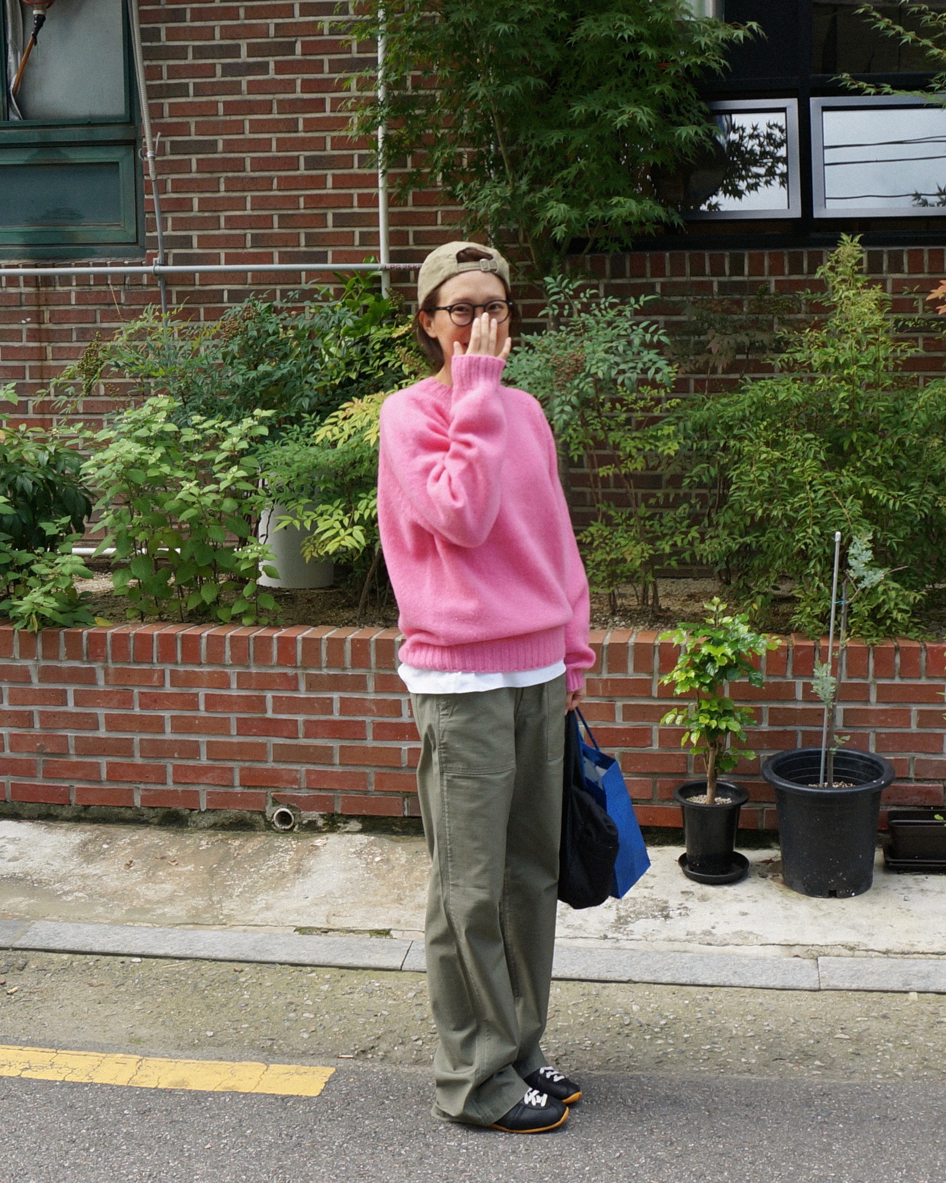 워크웨어의 정수와 가을의 깊이를 느낄 수 있는 색 위주의 컬렉션 사이 눈에 띄는 포인트를 발견할 수 있었어요. 선명한 핑크와 블루를 활용한 홀가먼트 스웨터가 바로 그 주인공이죠. 컬렉션 전반의 통일감을 해칠까 제작을 망설이기도 했지만, 가을철 레이어링의 재미를 더욱 크게 전달하고픈 마음이 더욱 커 과감히 시도하게 됐다고 해요.