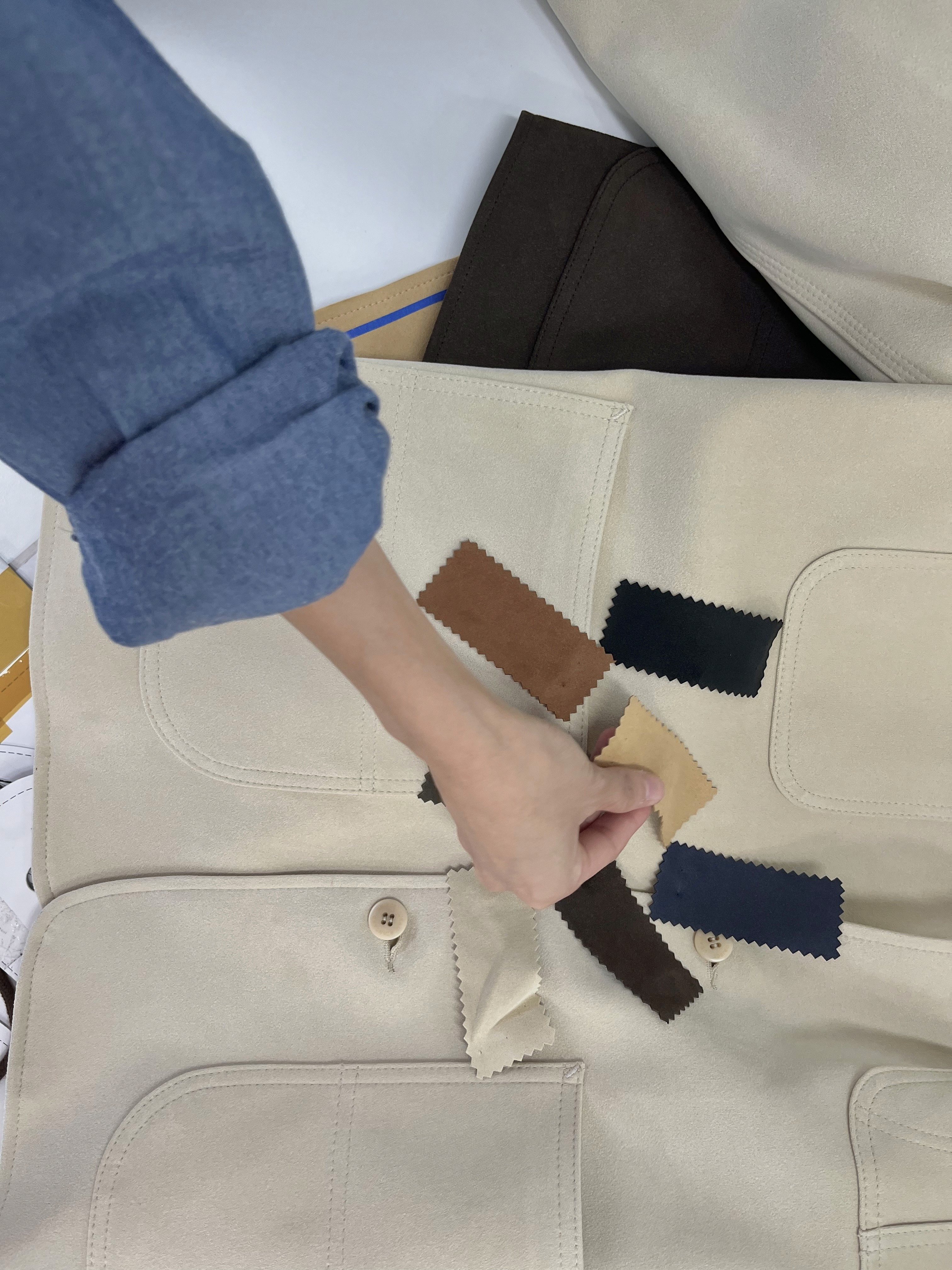 또한, 로우는 소재의 변형을 적극적으로 시도했어요. 워크웨어의 견고한 구조에서 비롯된 실용성에는 만족했지만, 원단의 무게감이나 투박한 실루엣은 로우가 생각하는 일상복과는 거리가 있었거든요. 원소재의 질감은 최대한 살리고, 현대 일상생활에서의 불편함을 줄일 수 있는 완벽한 대체재를 찾기 위해 셀 수 없이 많은 샘플 작업을 거쳤다고 합니다.