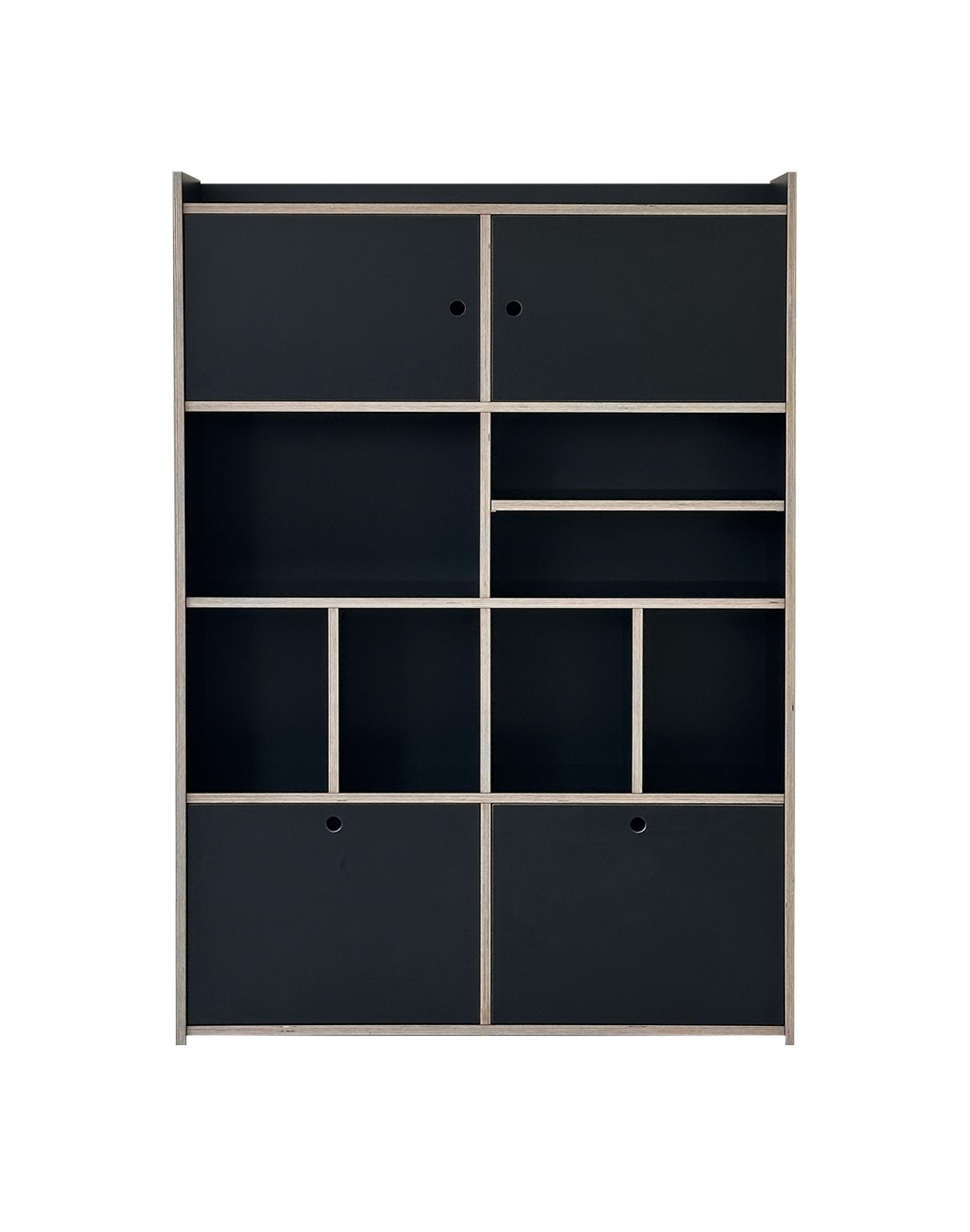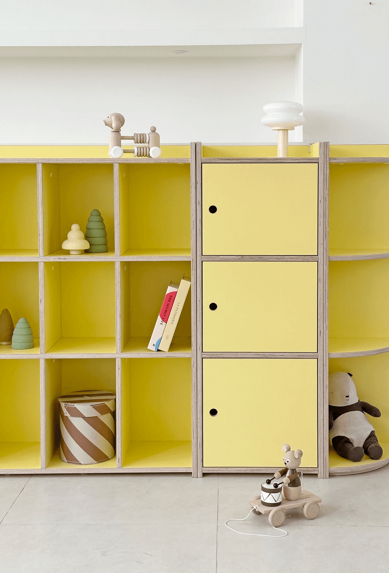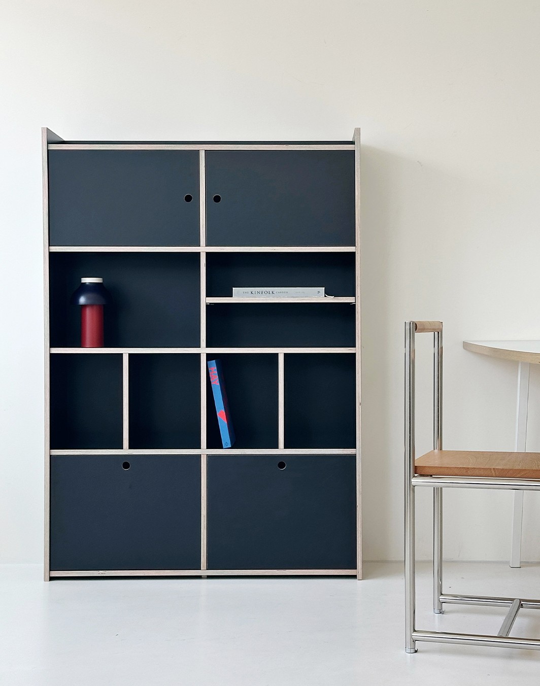 칸마다 다양한 수납이 가능하며, 깔끔한 정리를 위해 도어형 수납도 함께 구성되어 있어요. 블랙은 심플하게 디자인 포인트가 되면서, 다양한 색감이 공존하는 아이들 공간에서도 균형감을 더해줘요.