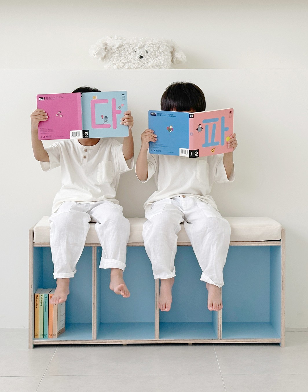 1단 높이로 아이들도 쉽게 사용할 수 있고, 쿠션을 얹어 벤치 형태로도 사용할 수 있어요.