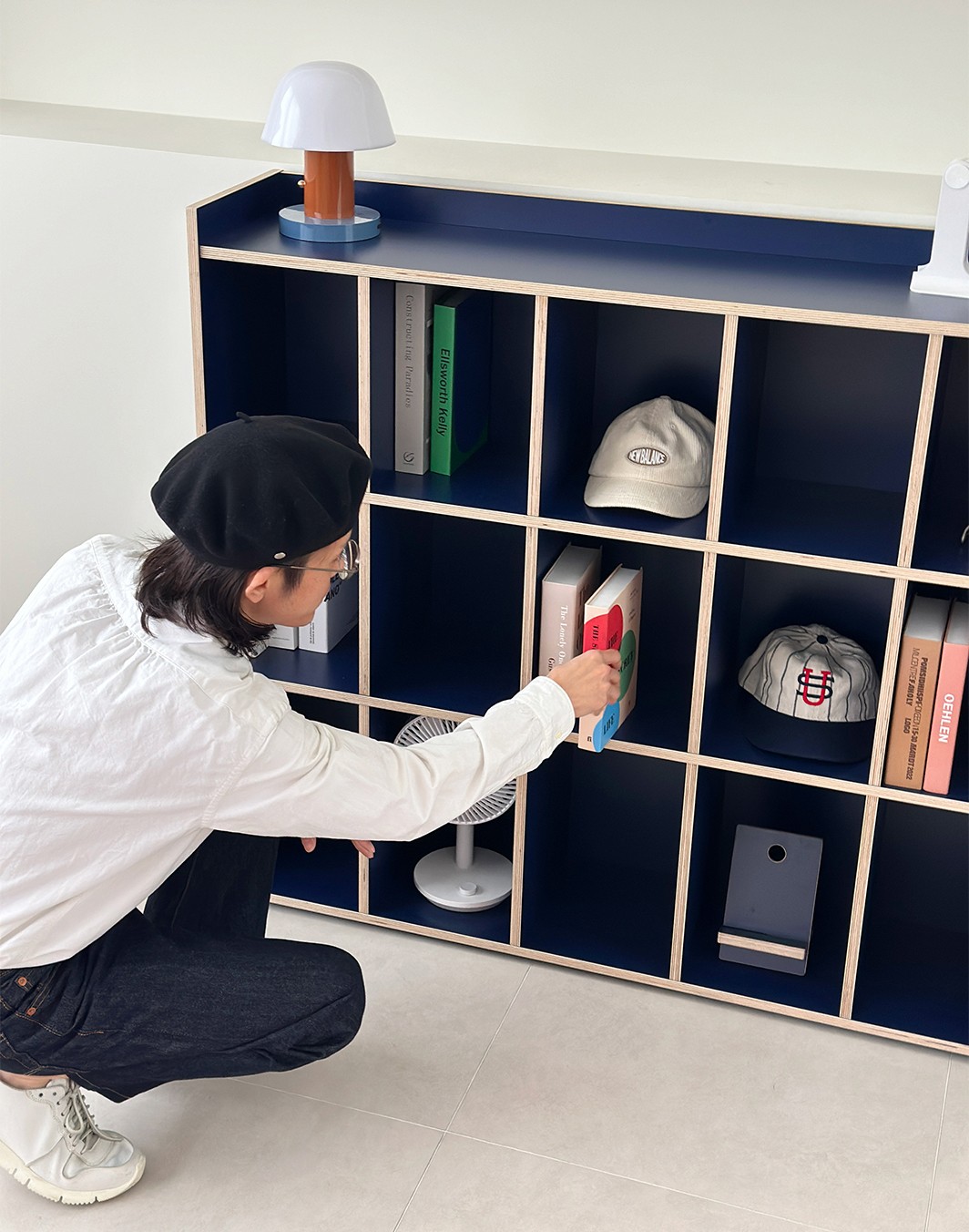 안전한 SEO 소재와 은은한 네이비 포인트로 많은 사랑을 받고 있는 제품이에요. 3단 대형 책장으로 넉넉하고 다양한 수납이 가능합니다.