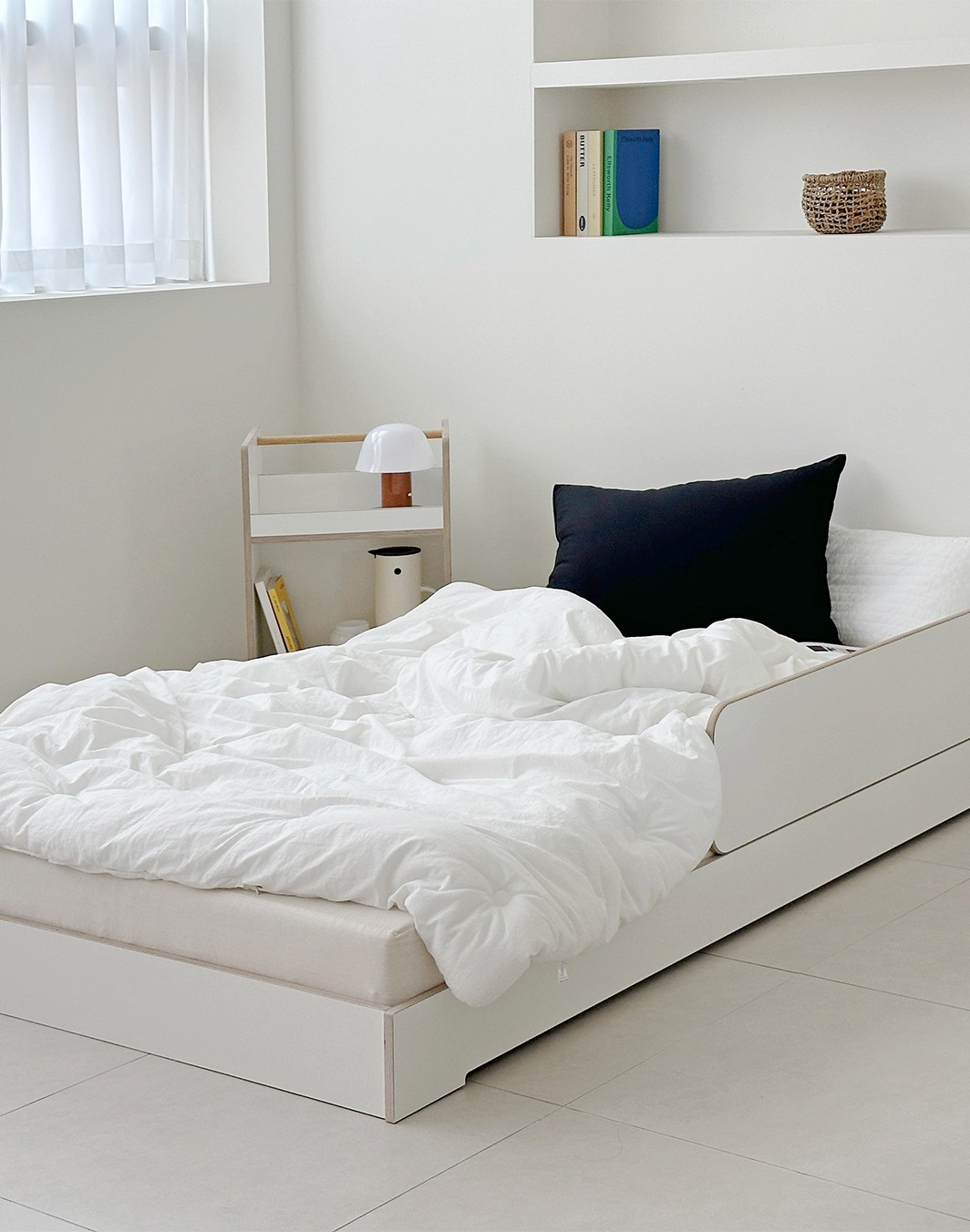 깔끔하고 세련된 디자인은 어느 공간에나 잘 어우러져요. 저상형 구조로 아이의 안전은 물론, 보다 포근하고 안정감 있는 잠자리를 완성해줍니다.