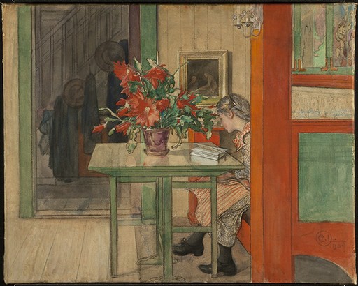 칼 라르손 Carl Larsson, 책을 읽는 리스베스 Lisbeth Reading, 60 × 76 cm, Watercolor, charcoal and tempera on paper mounted on canvas, 1904 ©Nationalmuseum Stockholm