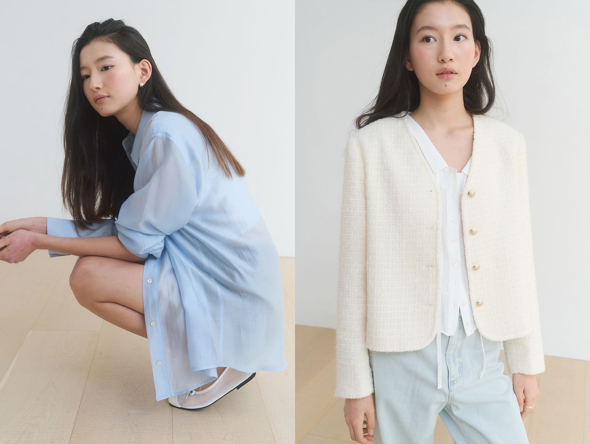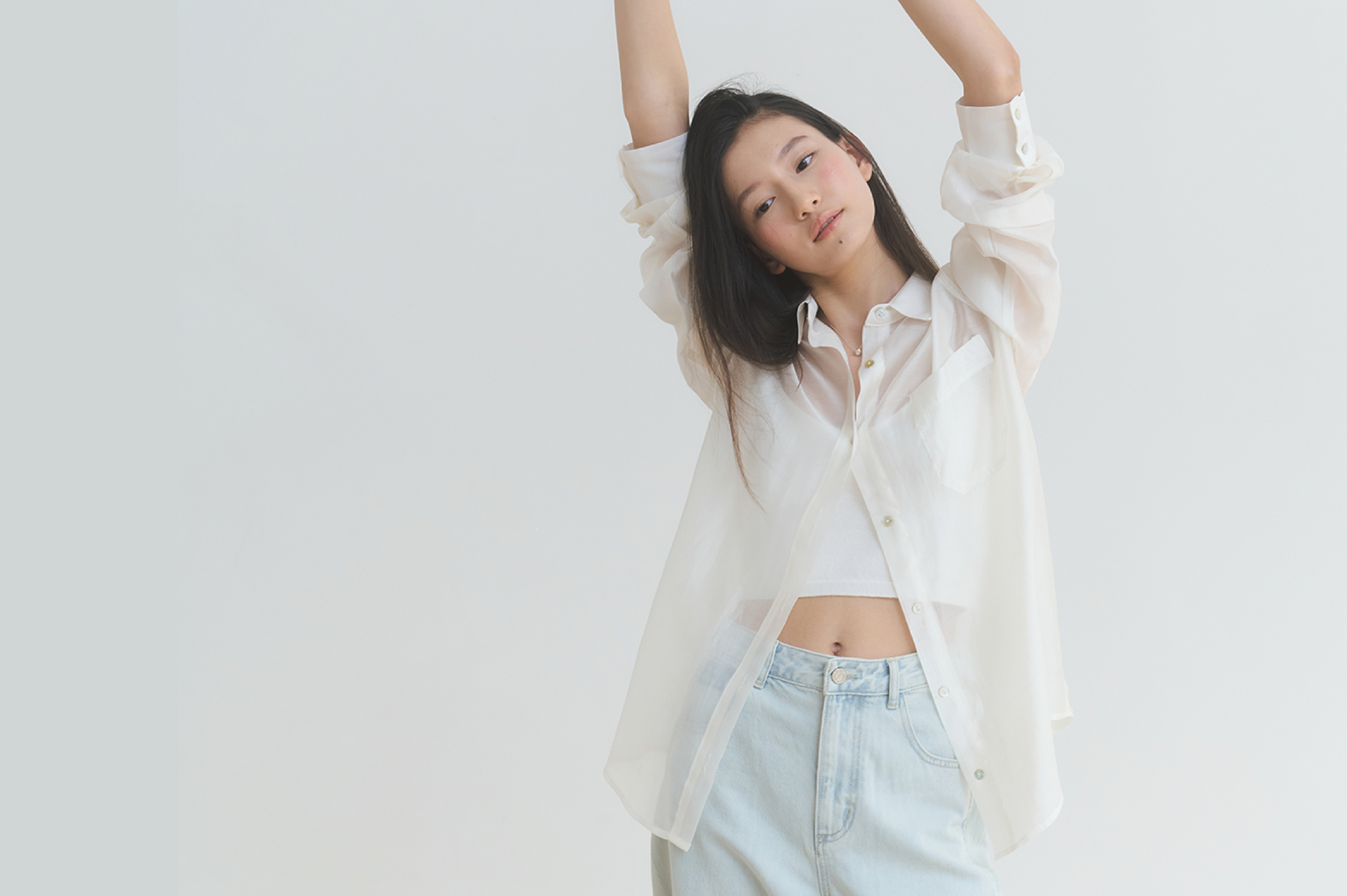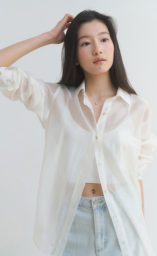 실키 시어 셔츠 - 블루, 버터크림 : 95,000원