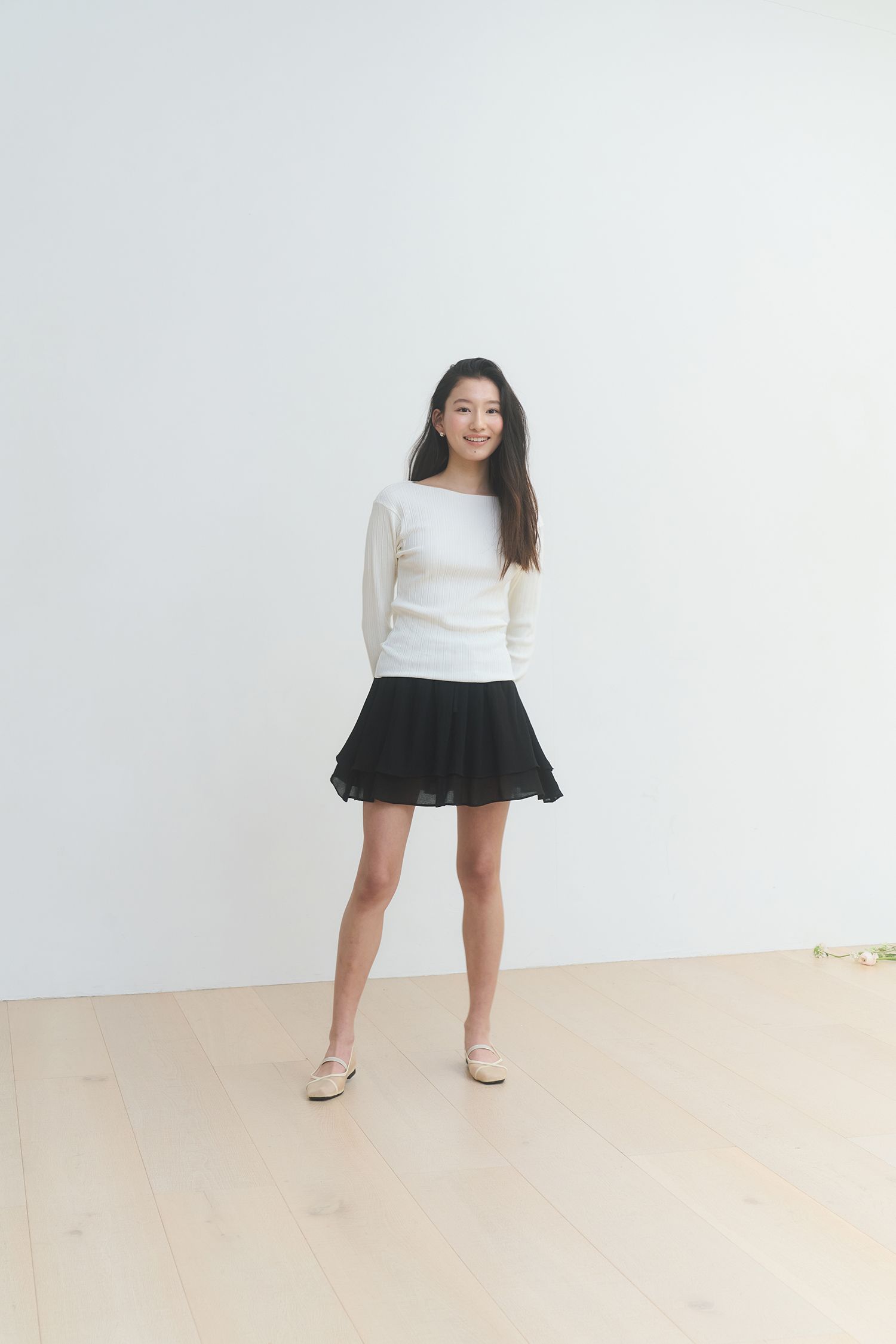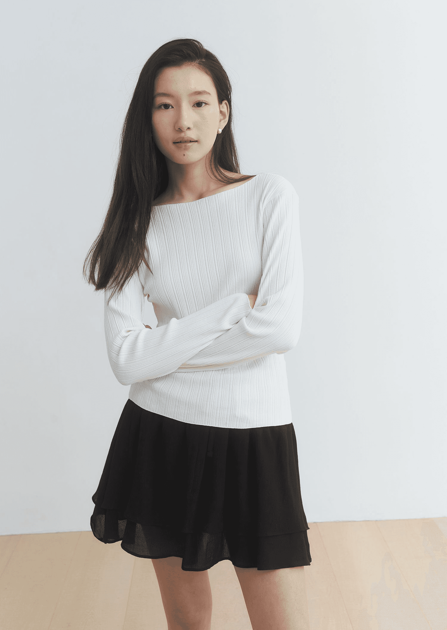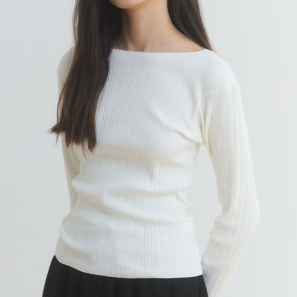 슬림한 넥 라인이 돋보이는 보트넥 티셔츠