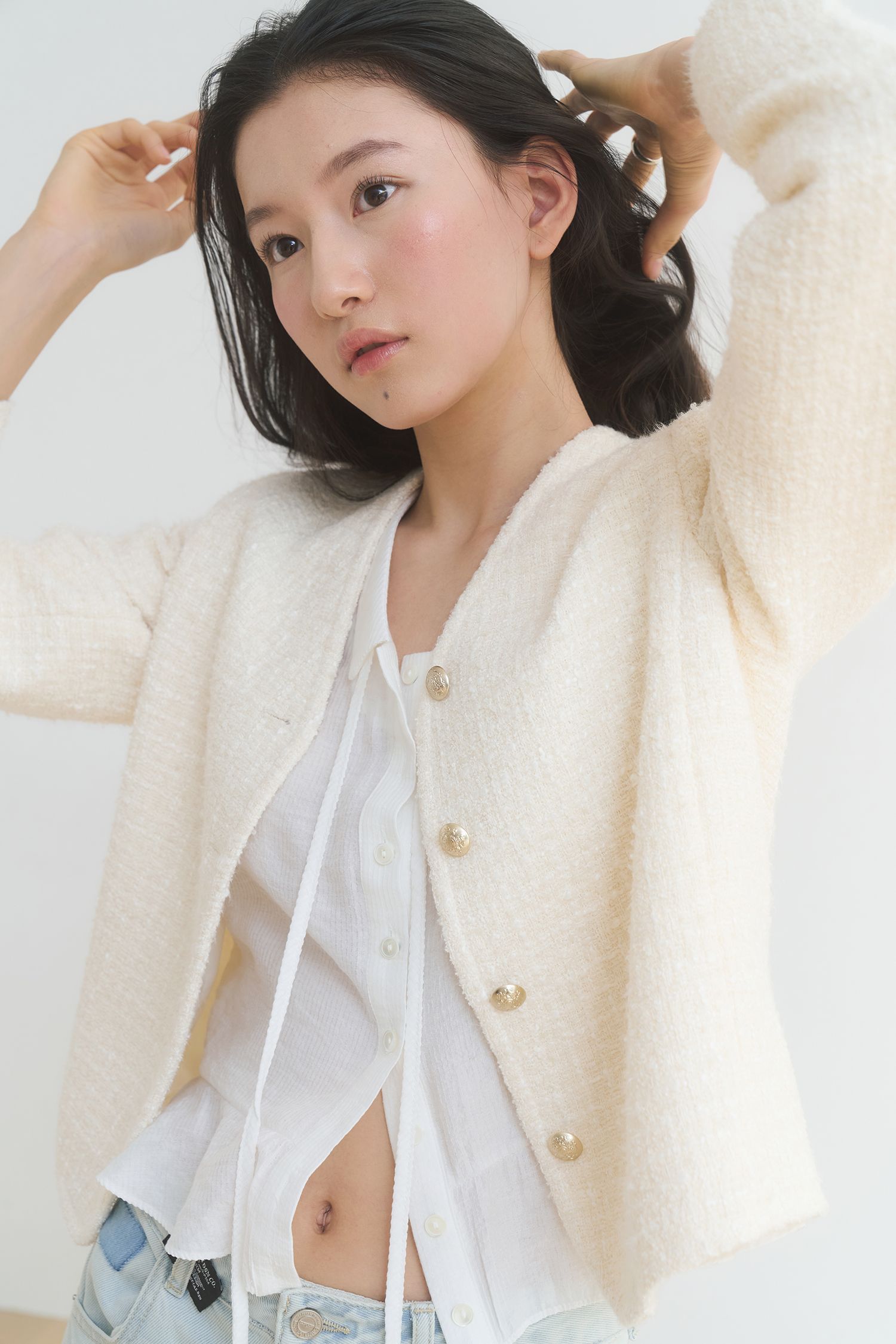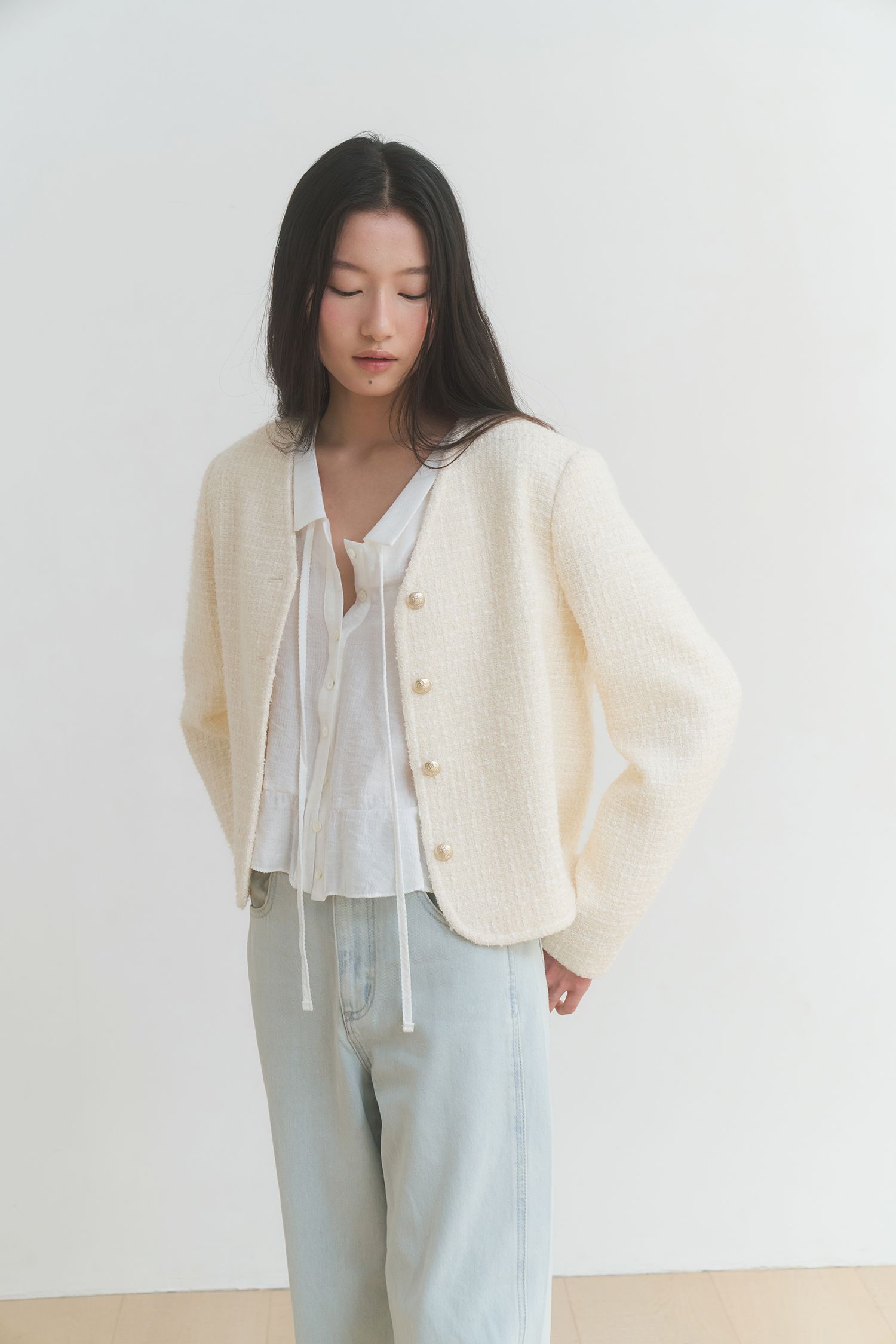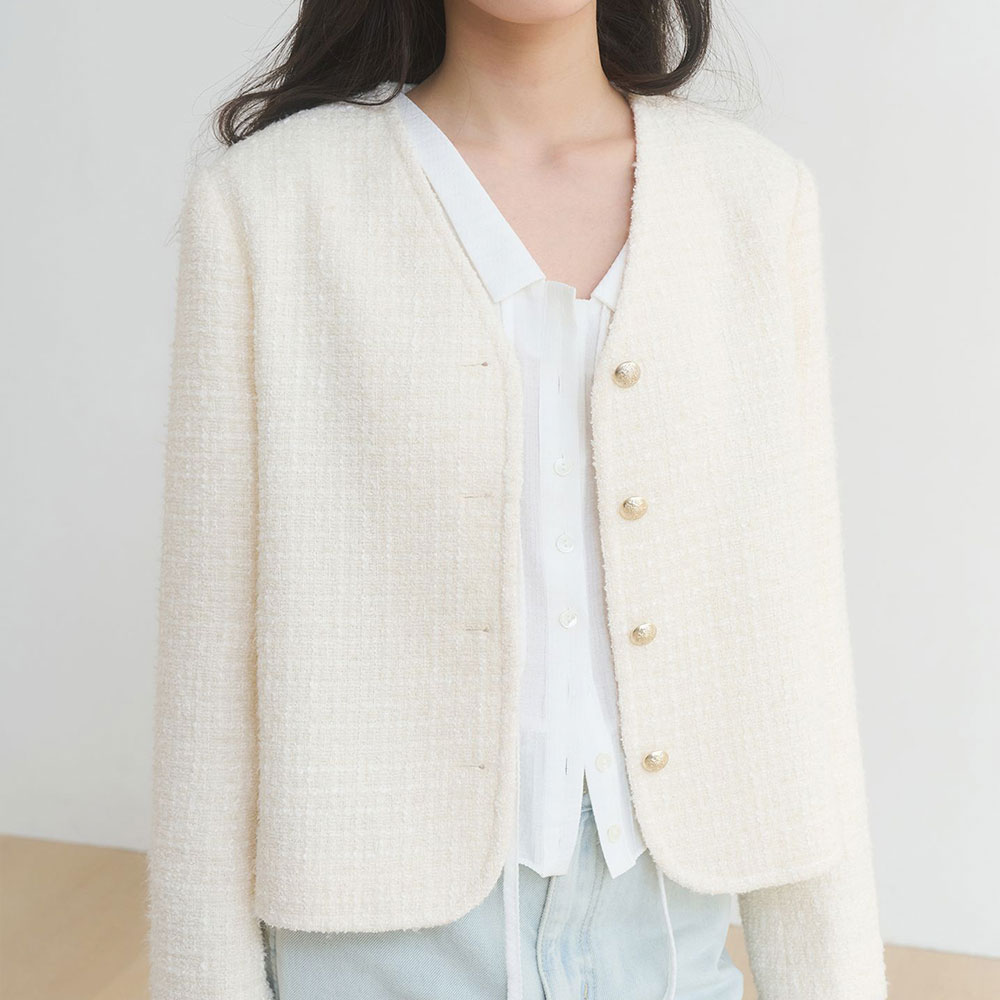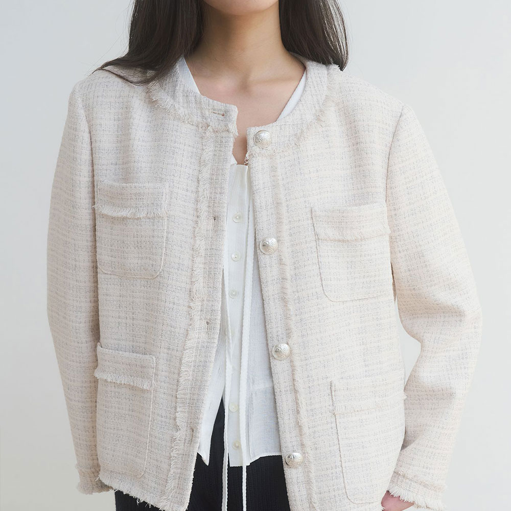 프린지 하프 트위드 재킷 - 클라우디 크림 : 198,000원