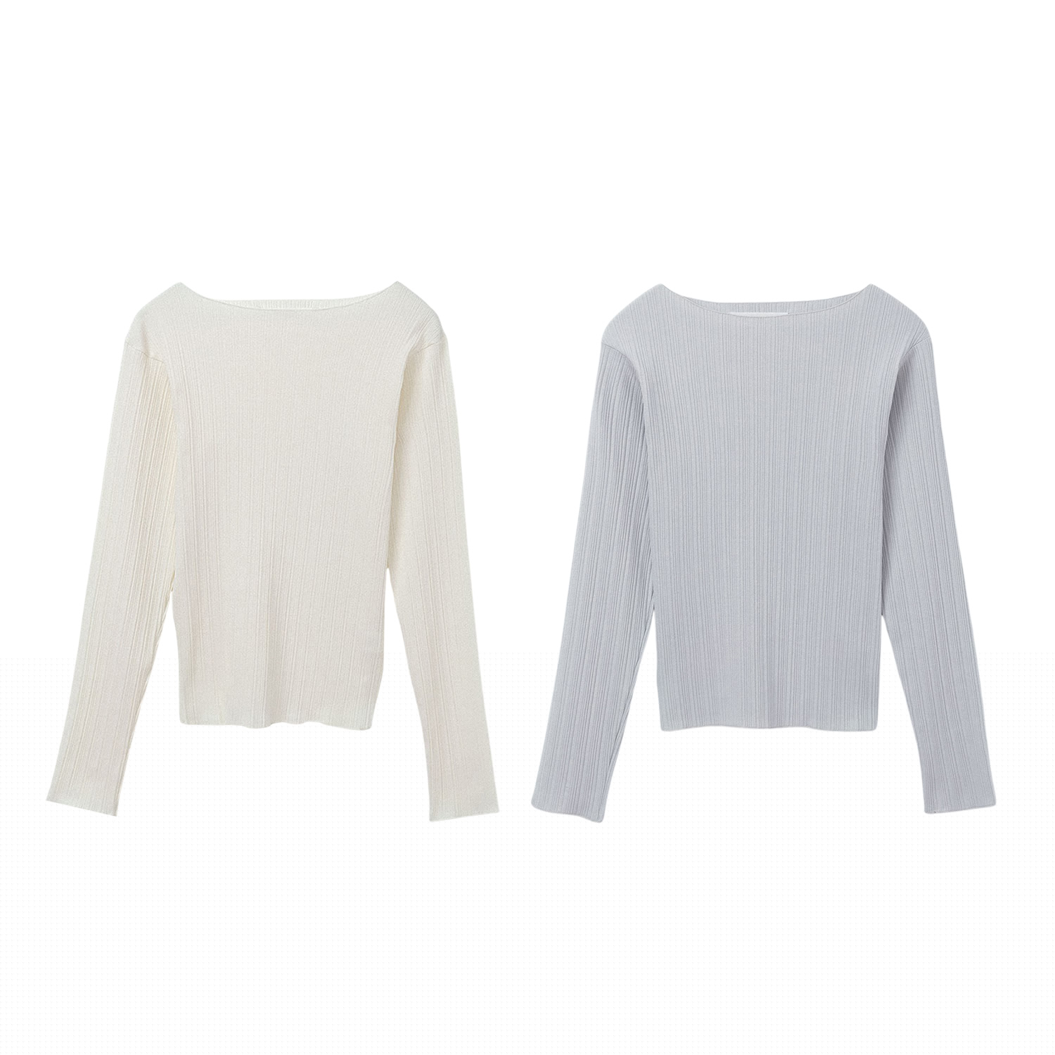 플리츠 보트넥 티셔츠 - 아이보리, 블루그레이 : 65,000원