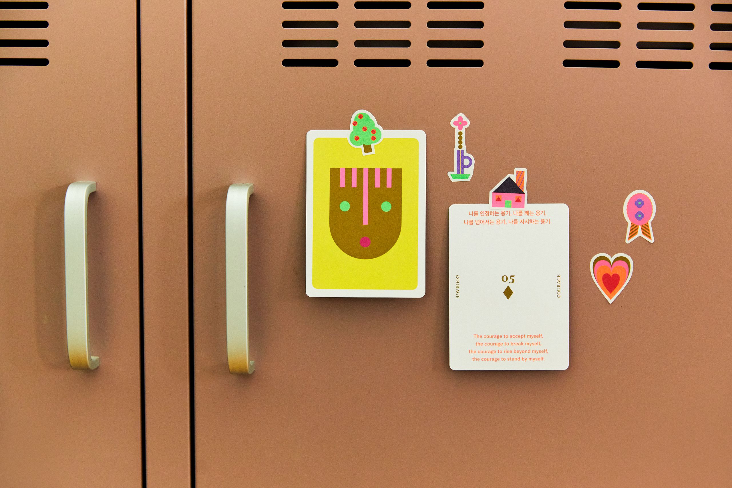 긍정의 에너지가 담긴 색감 그래픽과 문장들