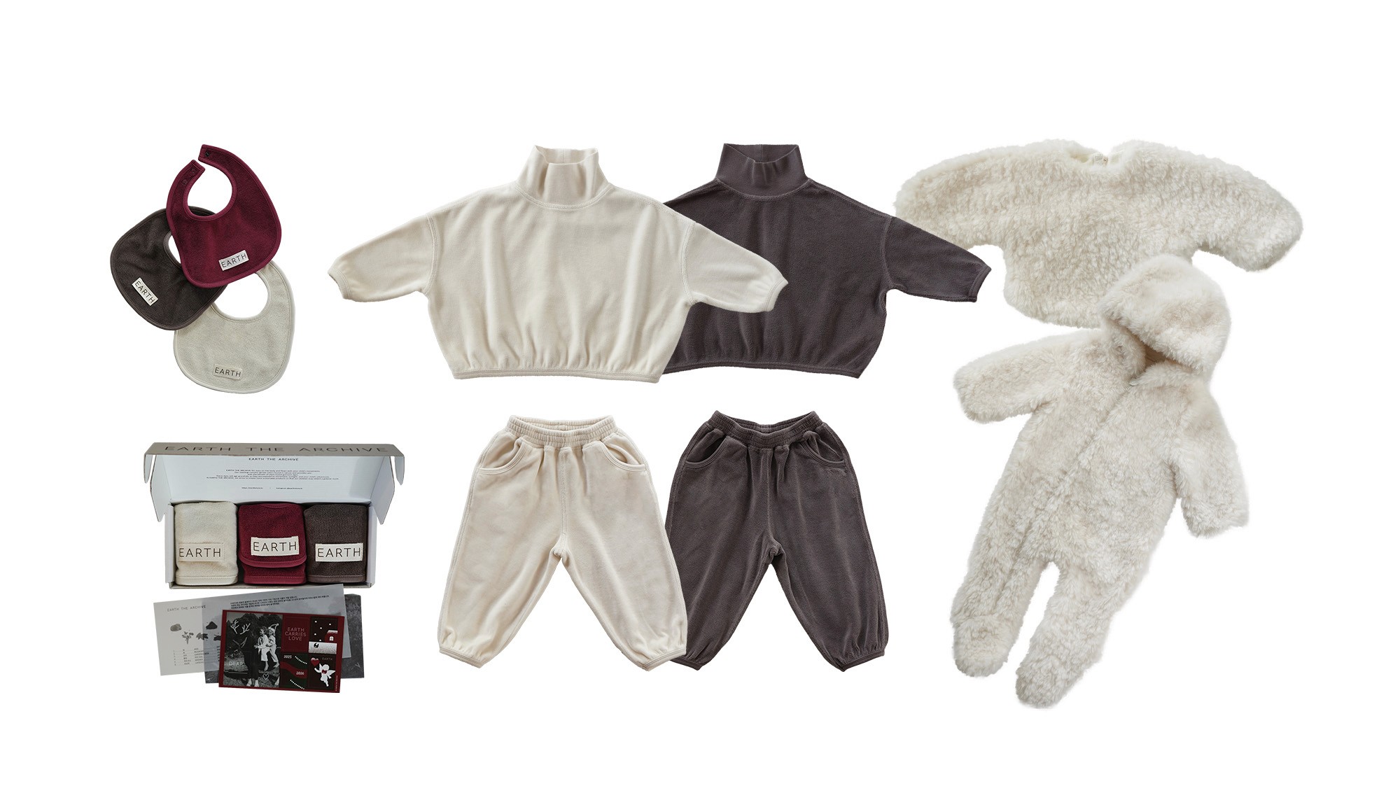 적막한 듯 고요하게 다음 해의 생명을 준비하는 소중한 계절을 얼스디아카이브만의 언어로 소개합니다. 자연에서 온 오가닉 코튼과 지구를 위한 리사이클 소재, 자연스러운 색감으로 완성한 크리스마스 에디션은 아이에게 잔잔한 온기를 전하는 '이로운 취향'이 되어줄 거예요.