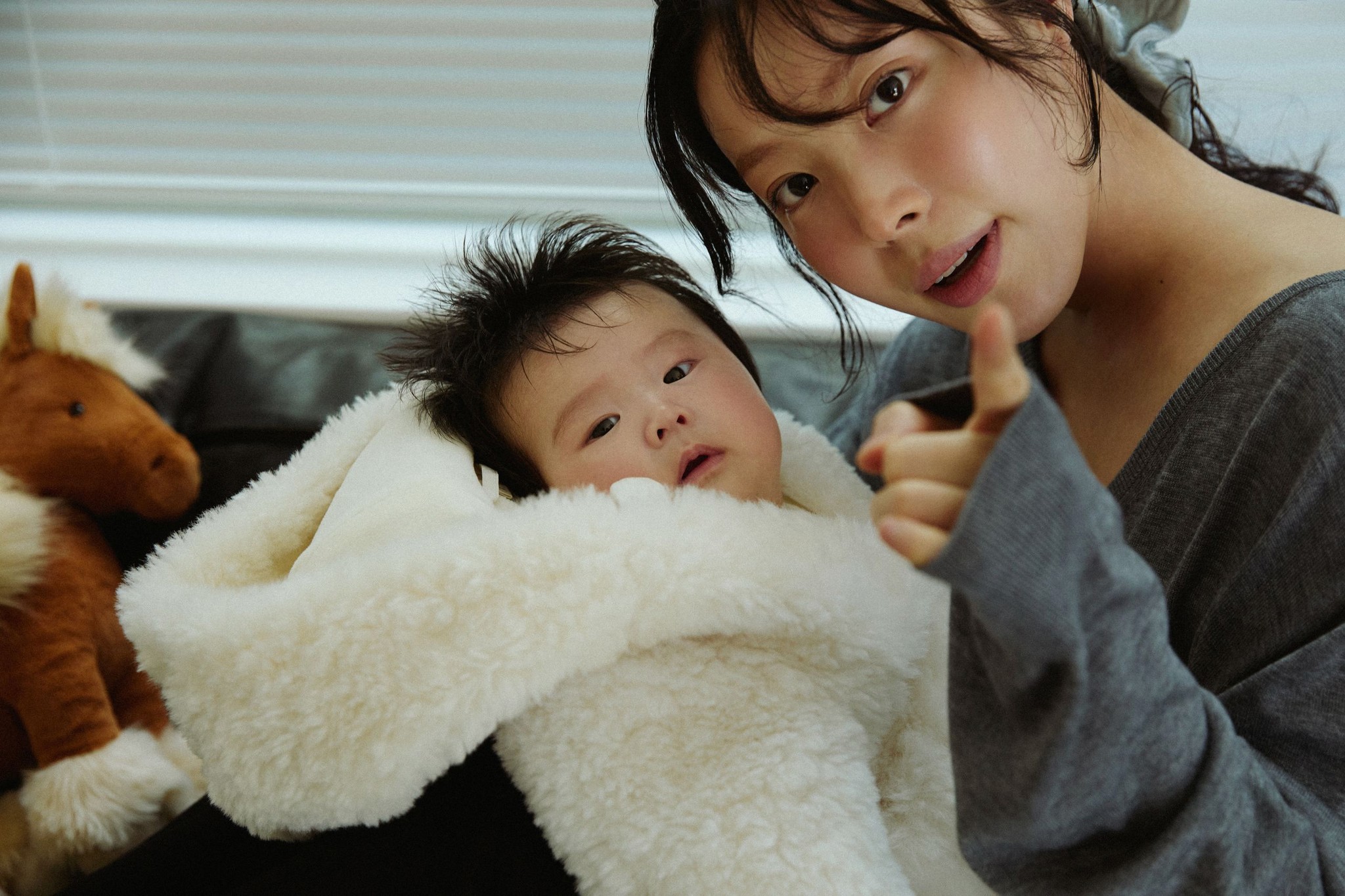 Velour Top/Velour Pants/Wool-Blend Fur Jumper, 2 size 착용