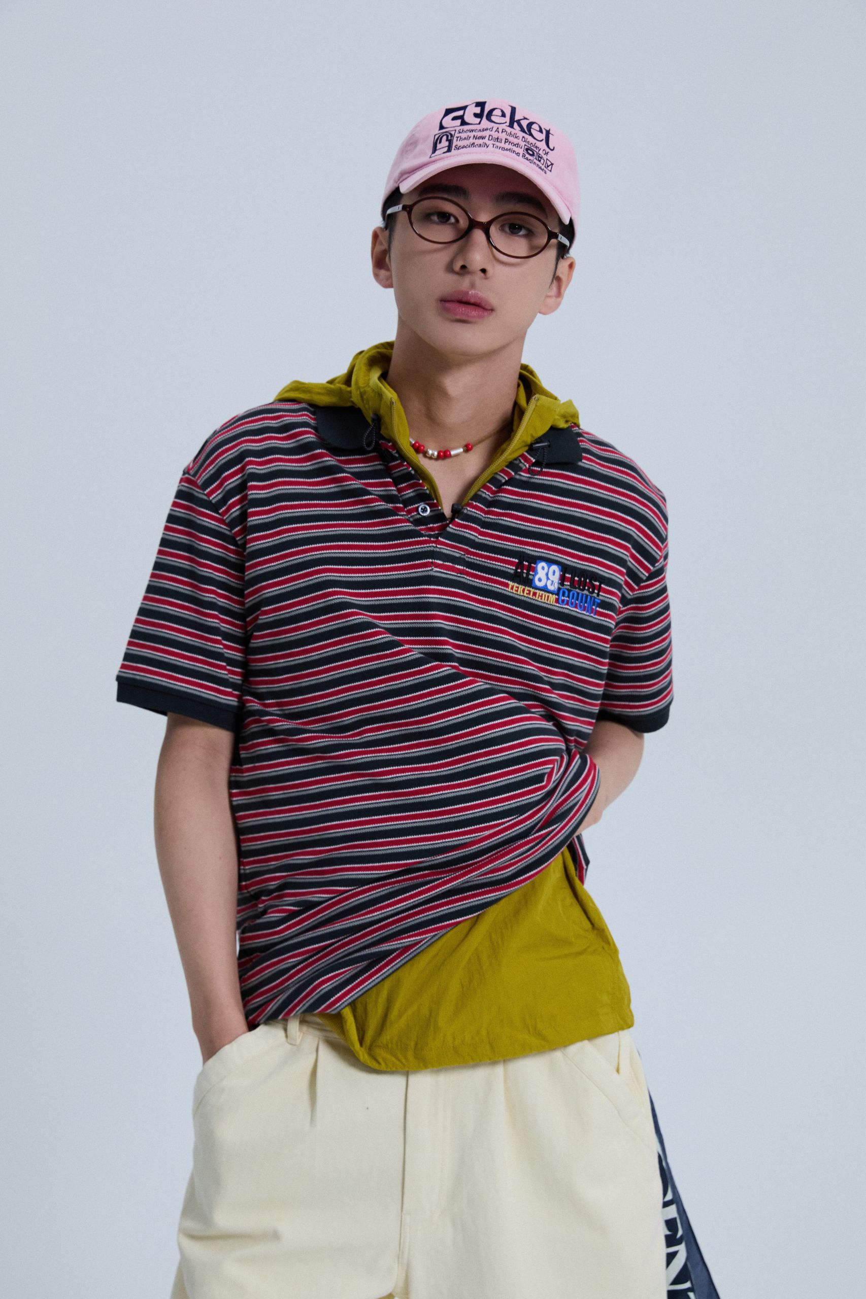 아웃도어는 과감한 색과 패턴을 즐기기에 제격이에요. 90년대 감성을 담은 스트라이프 피케 셔츠에 후디 베스트를 겹쳐 입고, 핑크 볼캡으로 산뜻하게 완성했어요.