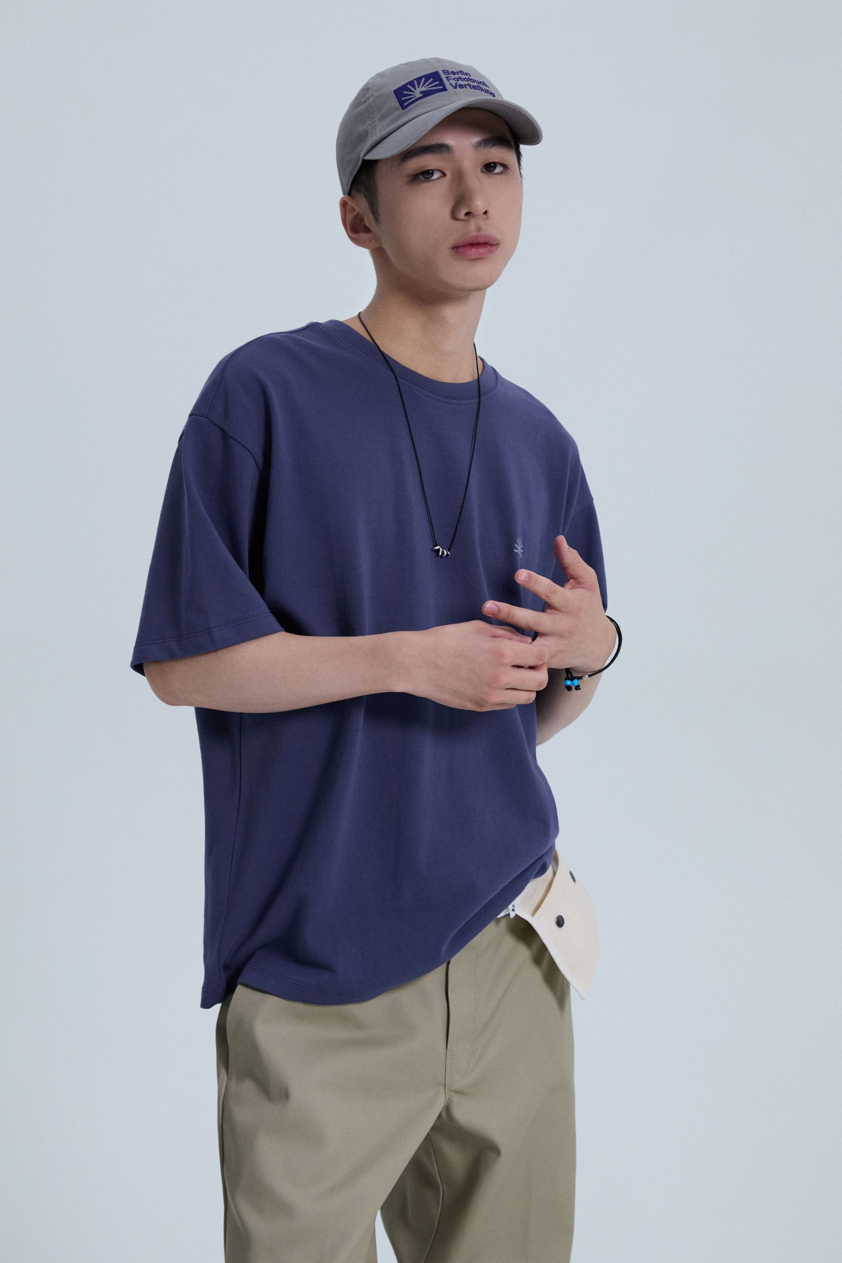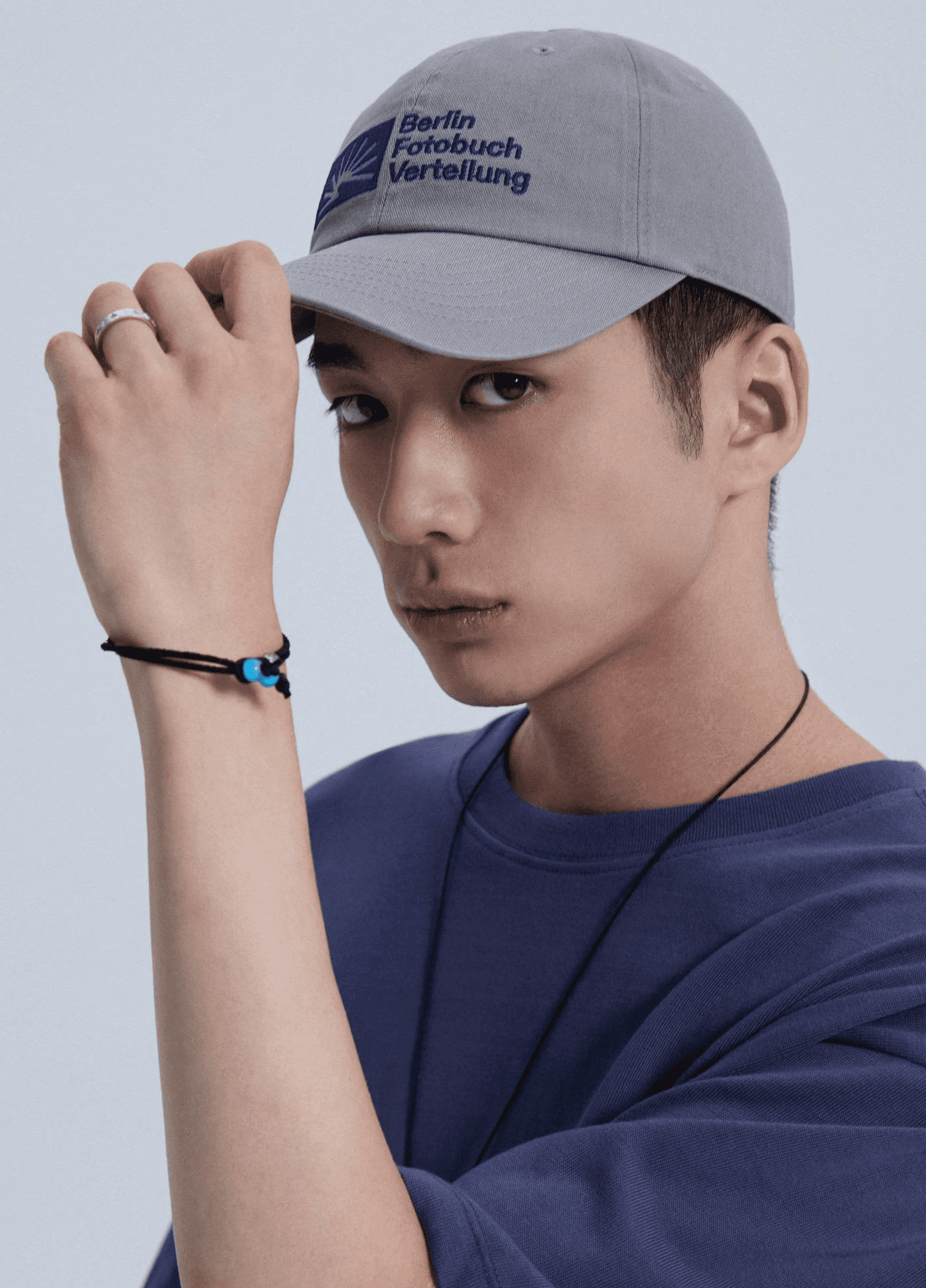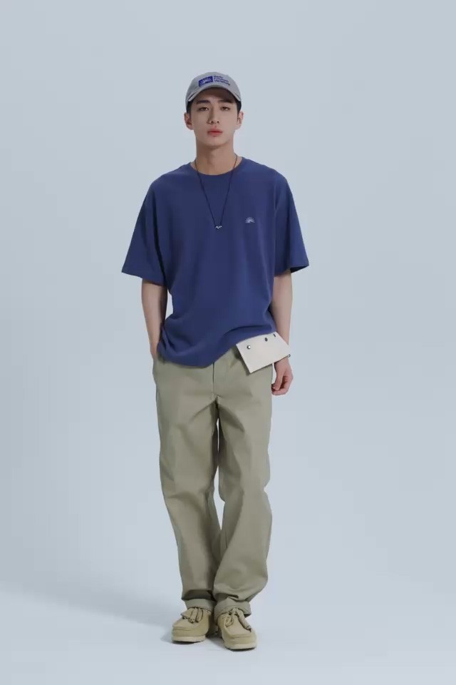 채도 낮은 볼캡과 티셔츠로 깔끔한 인상을 연출했어요.