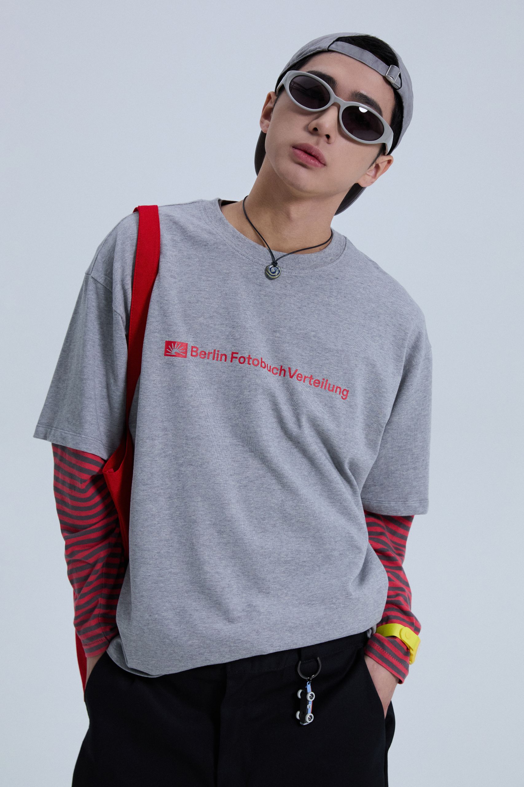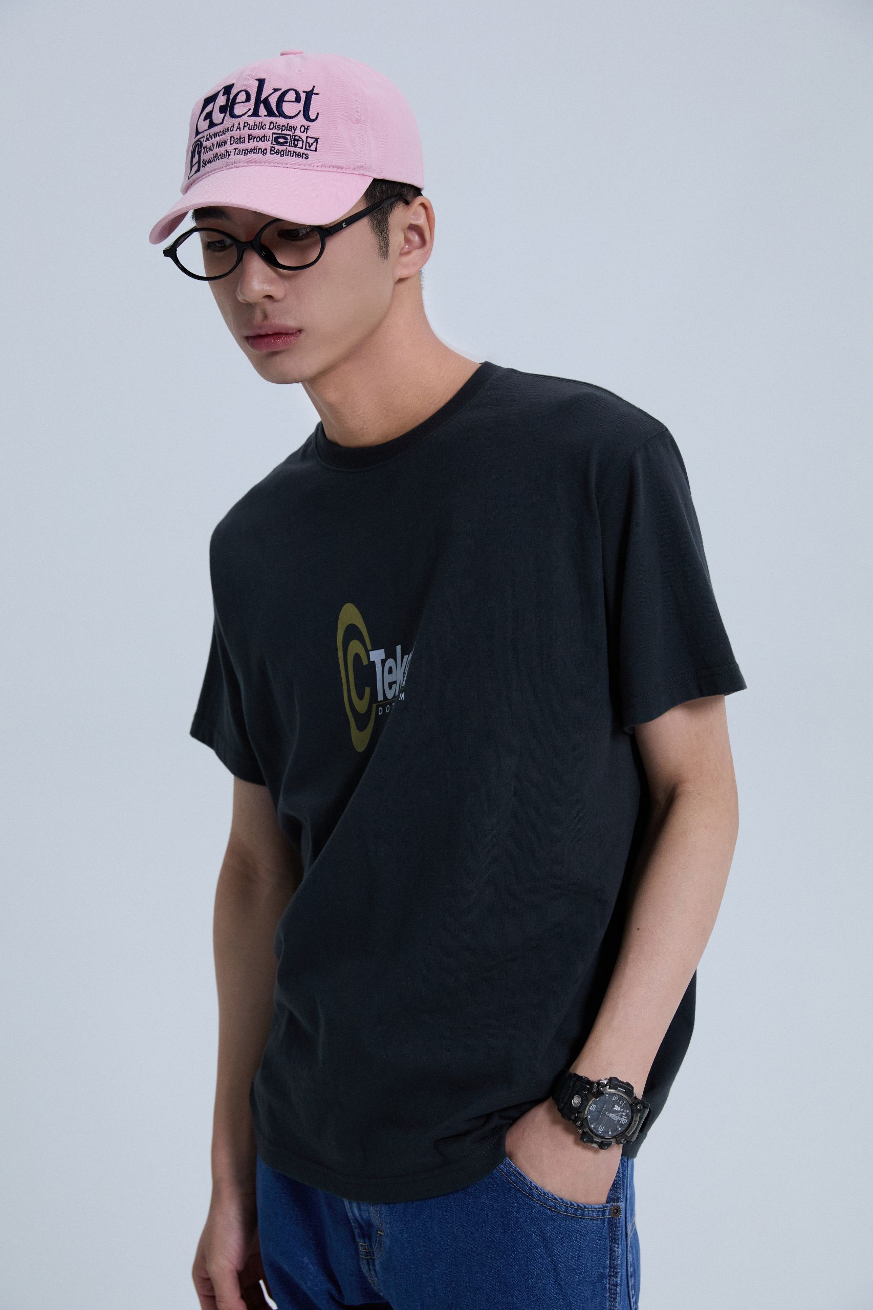 바랜 듯한 차콜색 그래픽 티셔츠에 동그란 안경과 투박한 시계를 더해, 하이틴 영화 속 소년처럼 연출했어요. 볼캡의 컬러와 그래픽을 강조할 수 있는 스타일입니다.