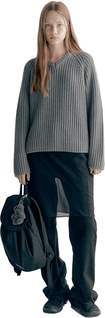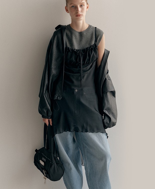 이번 시즌 V-NECK SWEATER도 그중 하나. 여전히 즐겨 입고 있는 로우 클래식 16FW 시즌 스웨터를 23FW에 맞게 원사, 넥 라인을 변형해 제안했다. 간결한 아이템 사이에서 묵묵히 존재감을 드러내는 포인트 아이템도 빠질 수 없다. 기본 아이템의 출발은 내가 실제로 옷을 입으며 느꼈던 경험에서 비롯되었다면, 포인트 아이템은 각자 개성을 가진 로우 클래식 팀원들에게서 영감을 얻곤 한다. 특히 이번 23FW의 LAYERED DRESS, SHEER LAYERED SKIRT-BLACK는 팀원들이 자주 선보이던 레이어링 스타일에서 영감을 받았다.