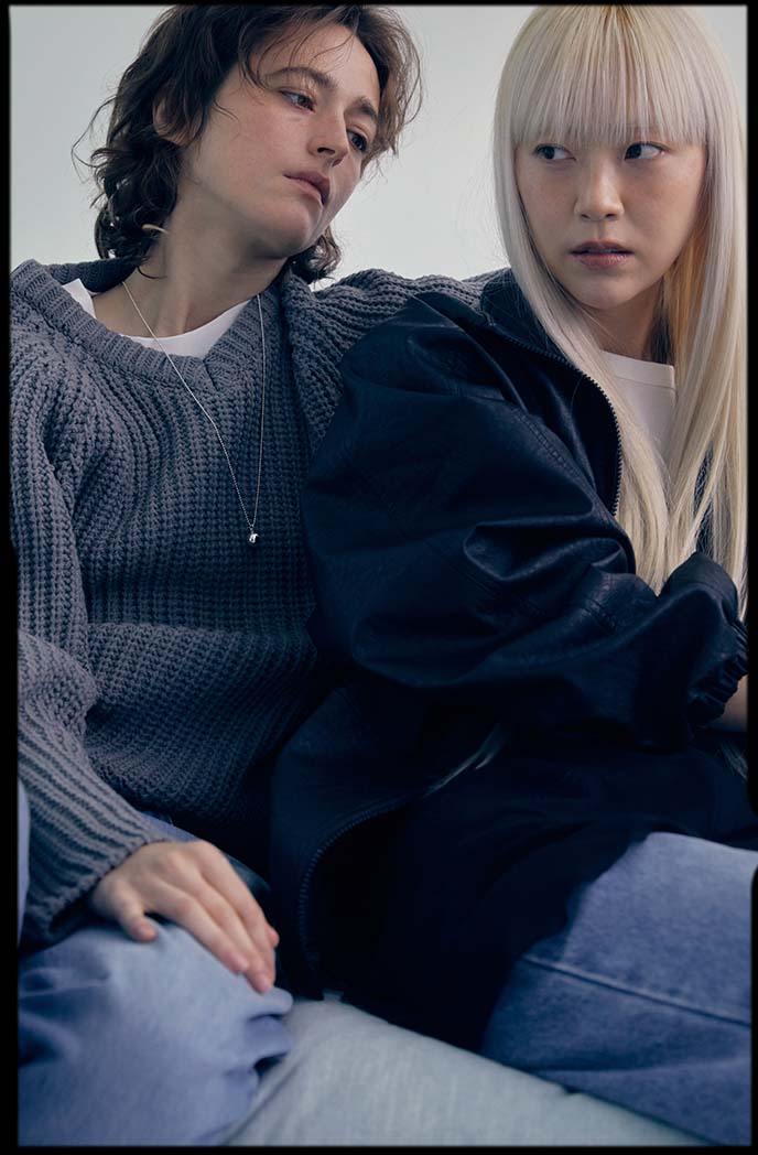 케이트 모스의 빈티지 워싱 가죽 재킷, 시에나 밀러의 화이트 베이직 톱과 가죽 부츠. 긴 머리의 여성이 걸친 남성의 투박한 전유물의 조화가 어딘가 모순적이면서도 그만의 특별하고 오묘한 매력을 선보인다. 로우 클래식에서 새롭게 선보이는 LC 디퓨전 라인 (DIFFUSION LINE) 또한 이러한 존재감에 깊은 영감을 받았는지도 모른다. 한동안 트렌드를 사로잡았던 플로럴 패턴, 레이스와 핑크, 곡선을 강조한 실루엣 보다 직선적이고 단조로운 실루엣, 투박한 레더와 데님, 도회적인 그레이, 블랙, 소프트 블루 등의 색감을 ‘중성적’이라는 키워드 아래 사용하고 있기 때문.