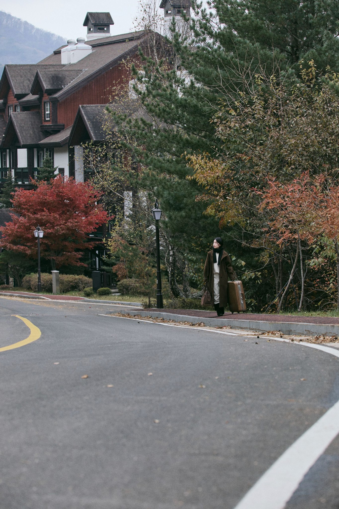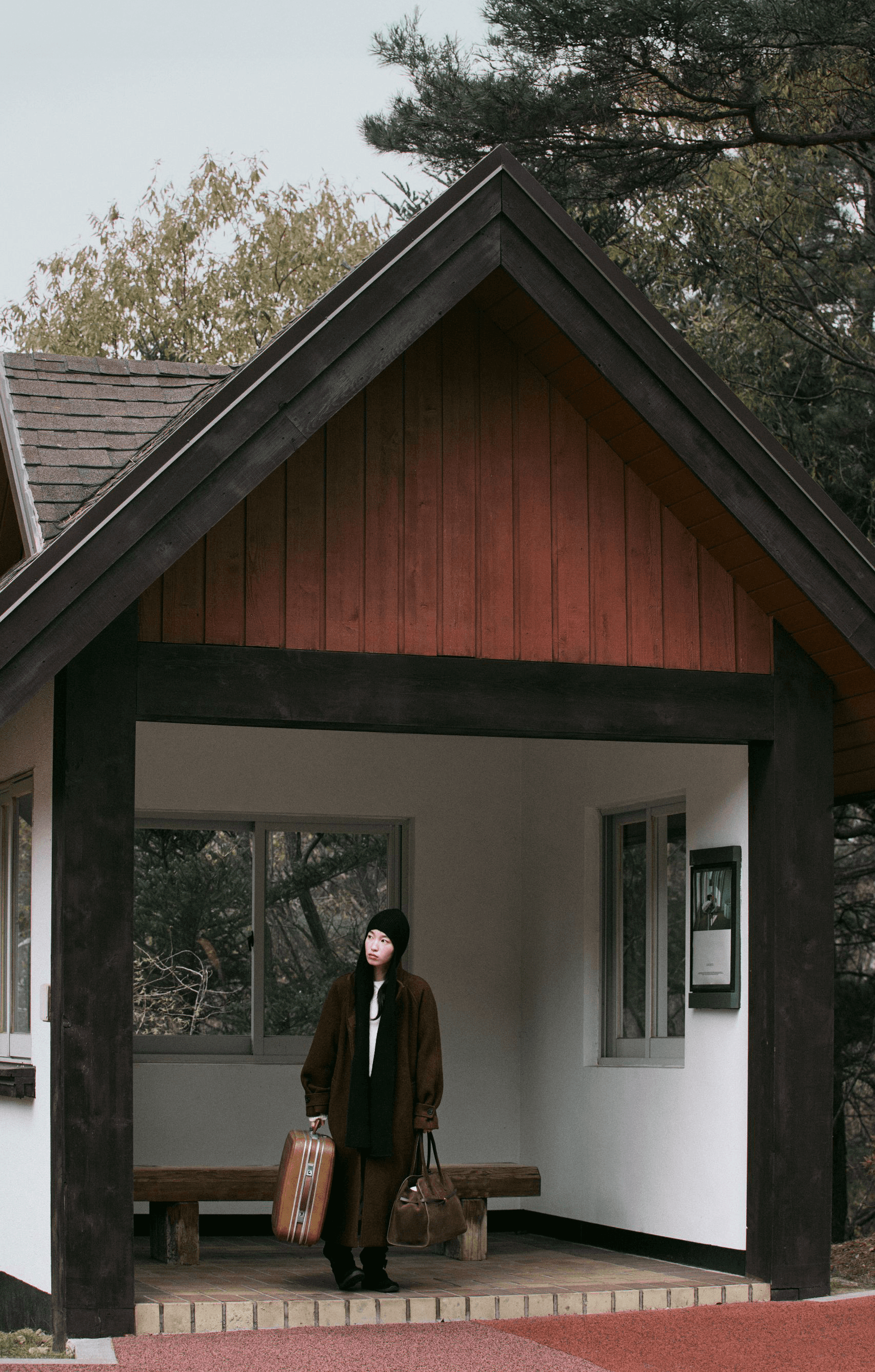 손에 익은 캐리어와 포근한 코트를 걸친 채,