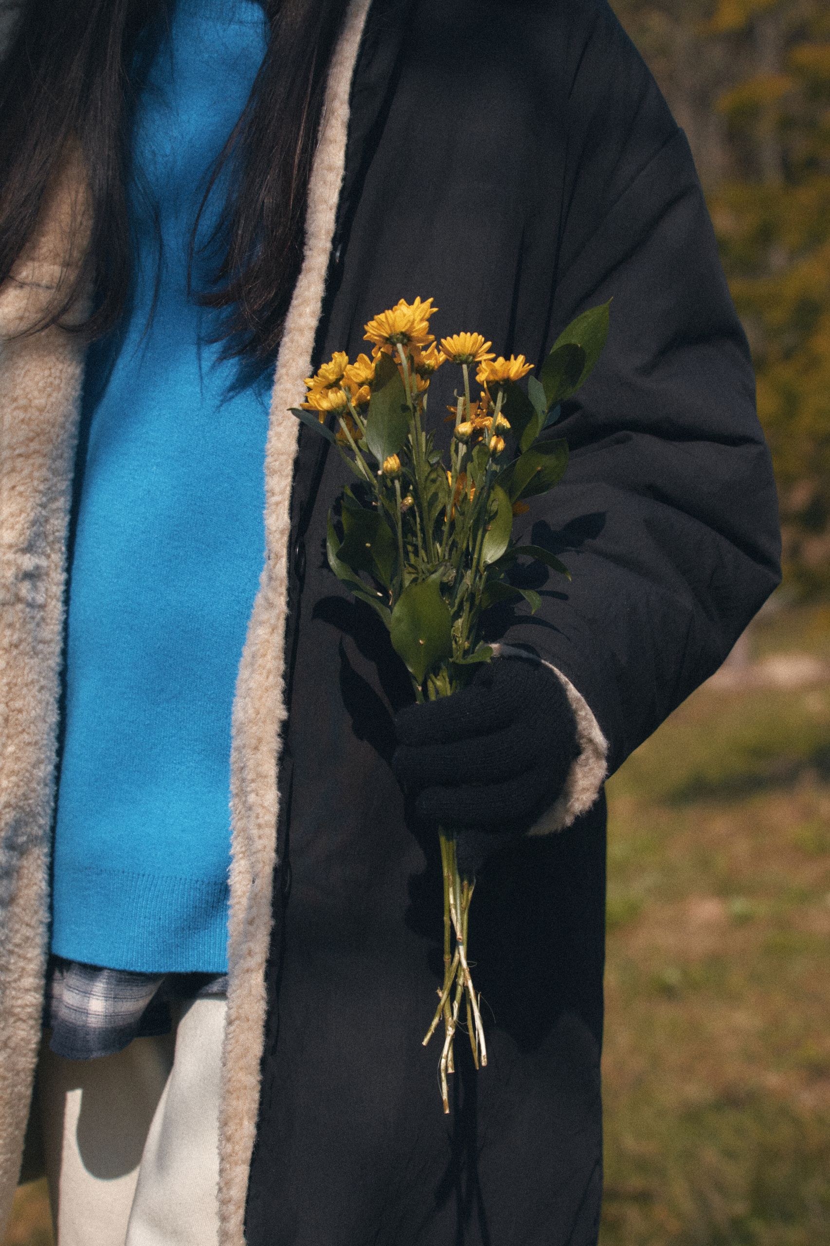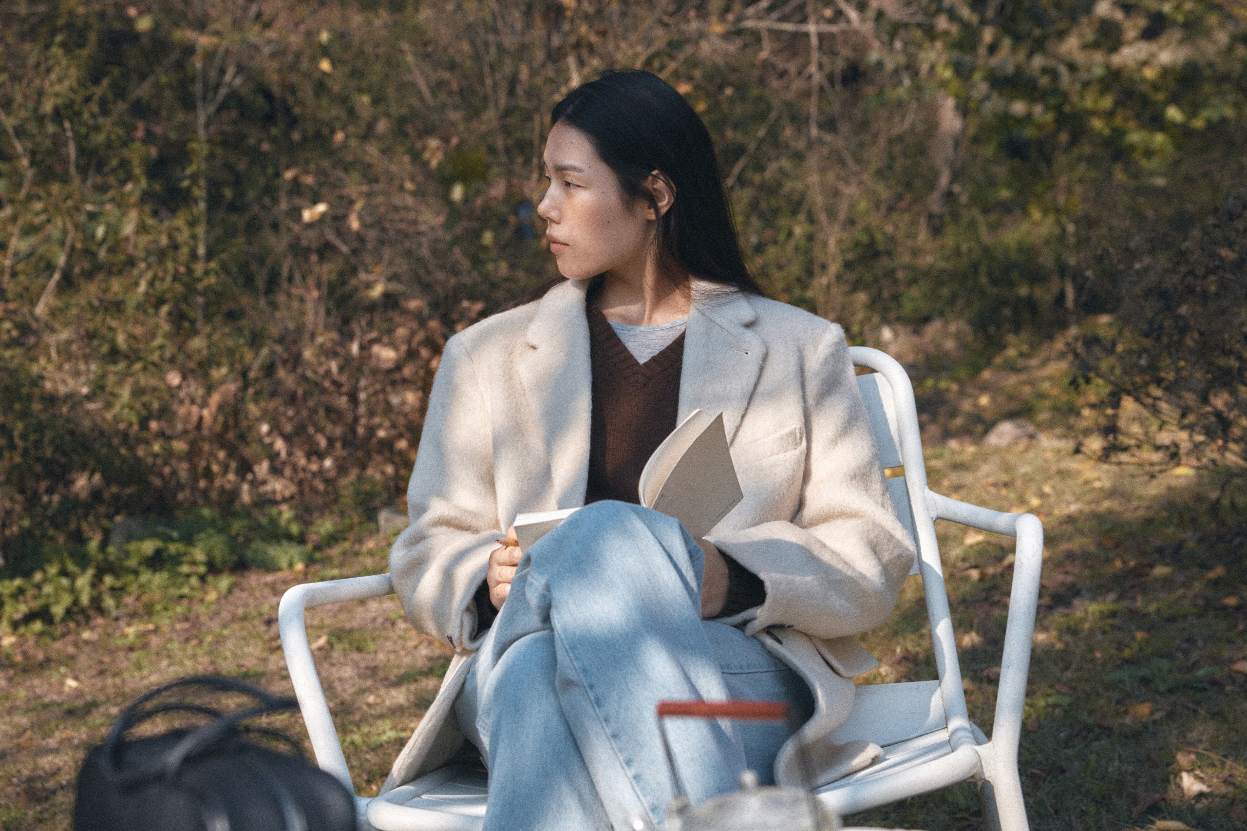 겨울 햇살이 부드러운 옷자락에 스며들고,