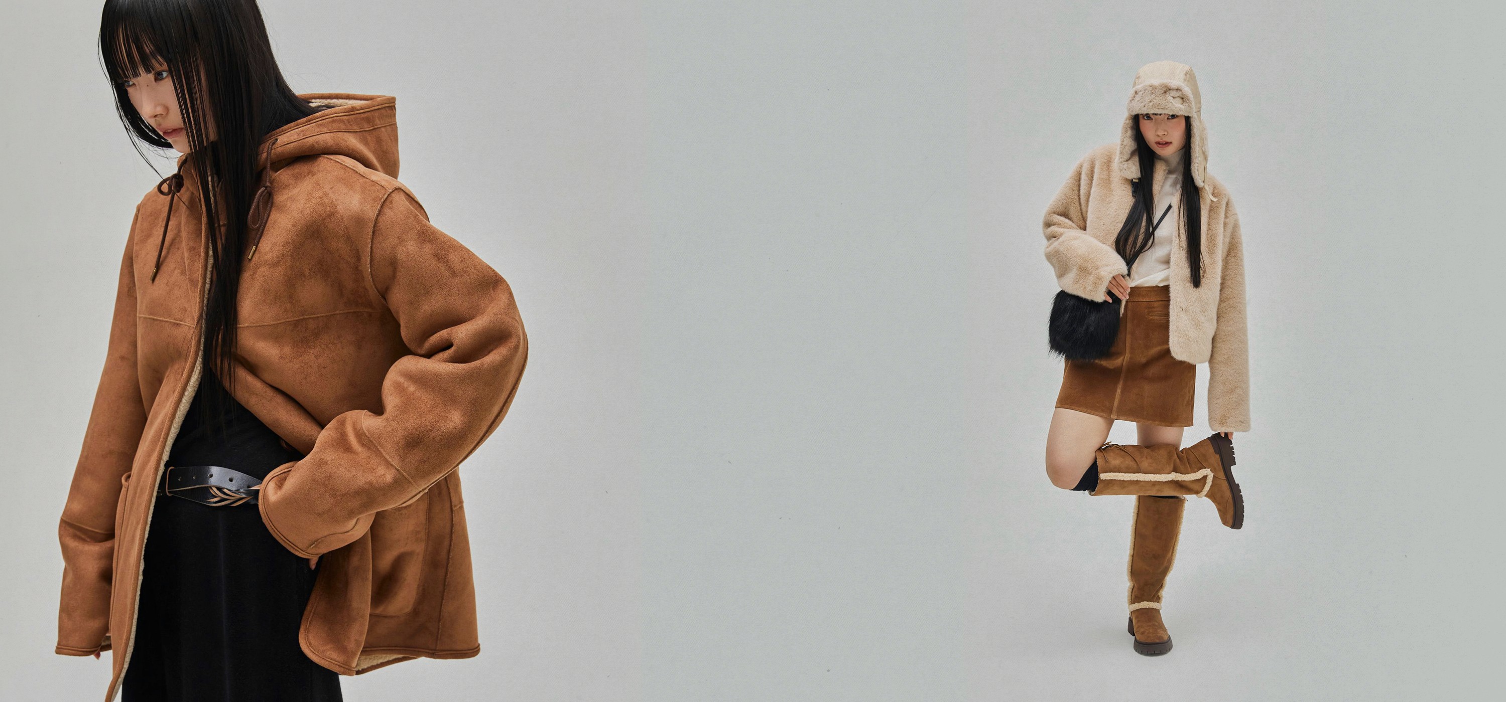 '무스탕'이라는 이름으로 더 익숙한 시어링 재킷은 언뜻 보면 투박한 매력을 풍기지만, 후드와 카라 등의 디테일이 더해져 세련된 무드도 충분히 연출할 수 있어요. 보헤미안부터 시크한 무드까지 그 자체로도 존재감이 크기 때문에, 시어링 재킷 하나만으로도 겨울 아웃핏 고민을 해결할 수 있답니다.
