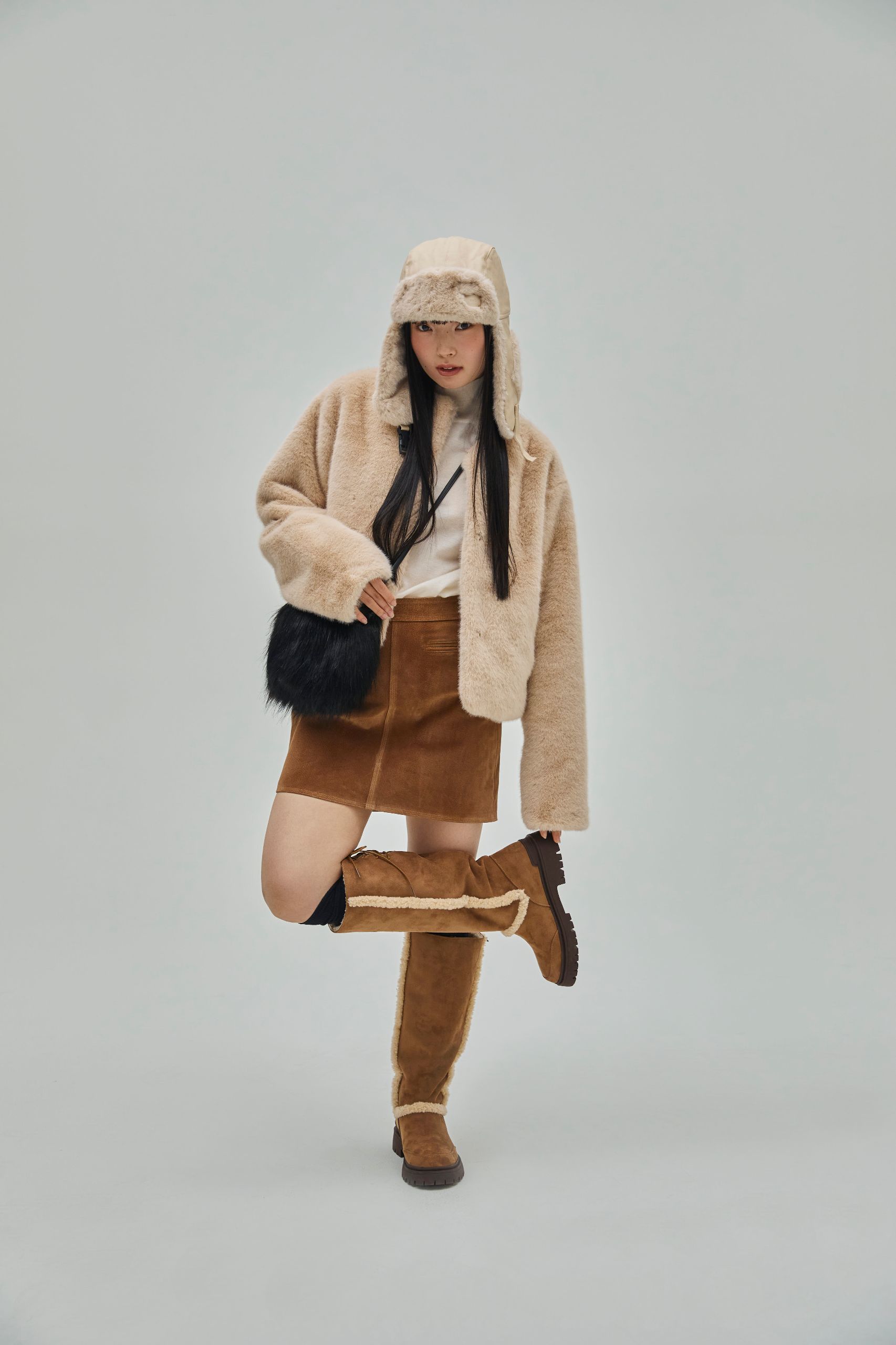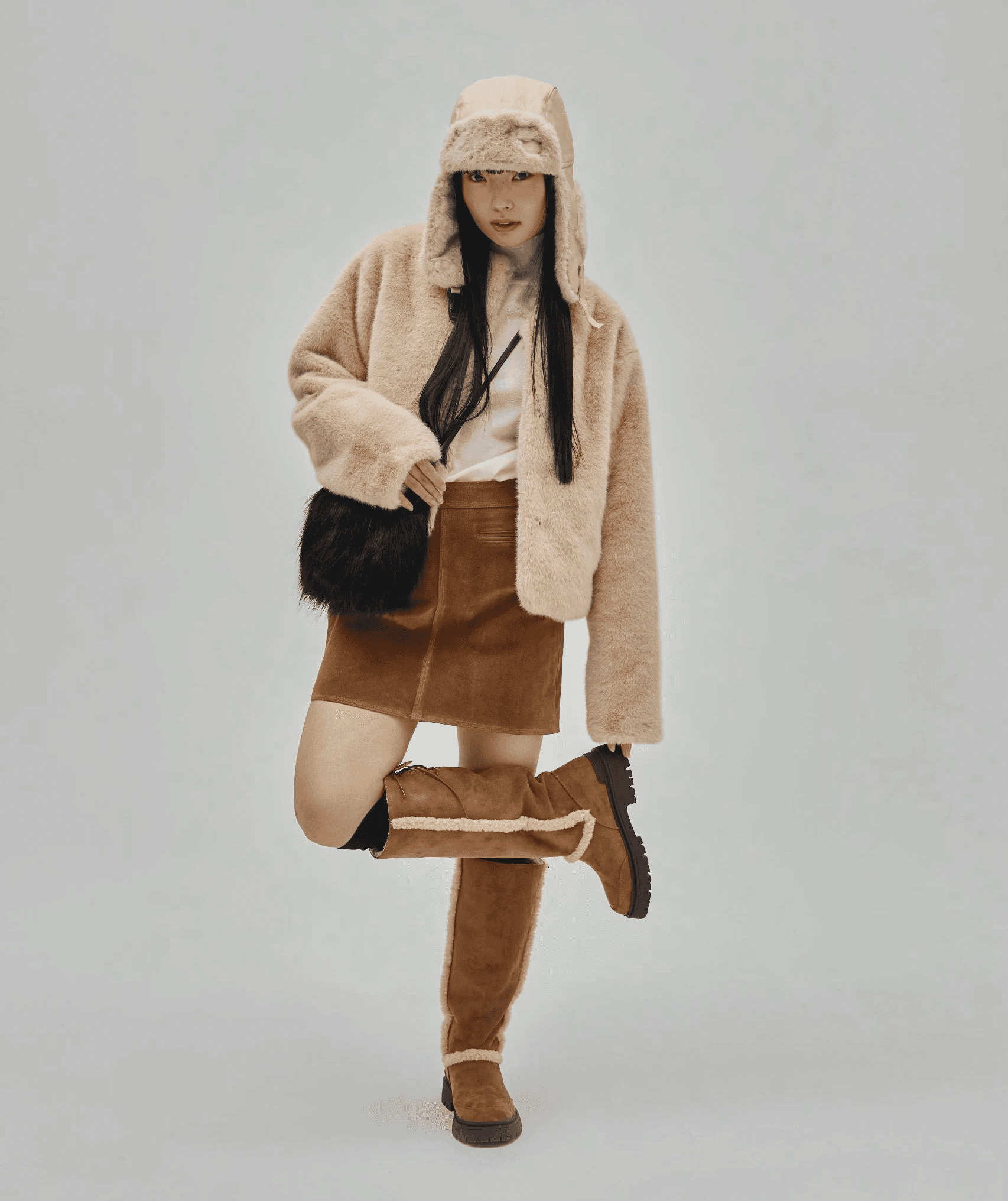 테디베어를 연상시키는 복슬복슬한 매력의 퍼 재킷은 겨울철 사랑스러운 스타일링에 딱 맞는 아이템이에요. 더플 단추 디테일, 은은한 컬러의 조화로 러블리 무드를 자아내며, 여기에 니트 스웨터나 스웨이드 스커트를 매치하면 포근하면서도 감각적인 겨울 룩이 완성됩니다.