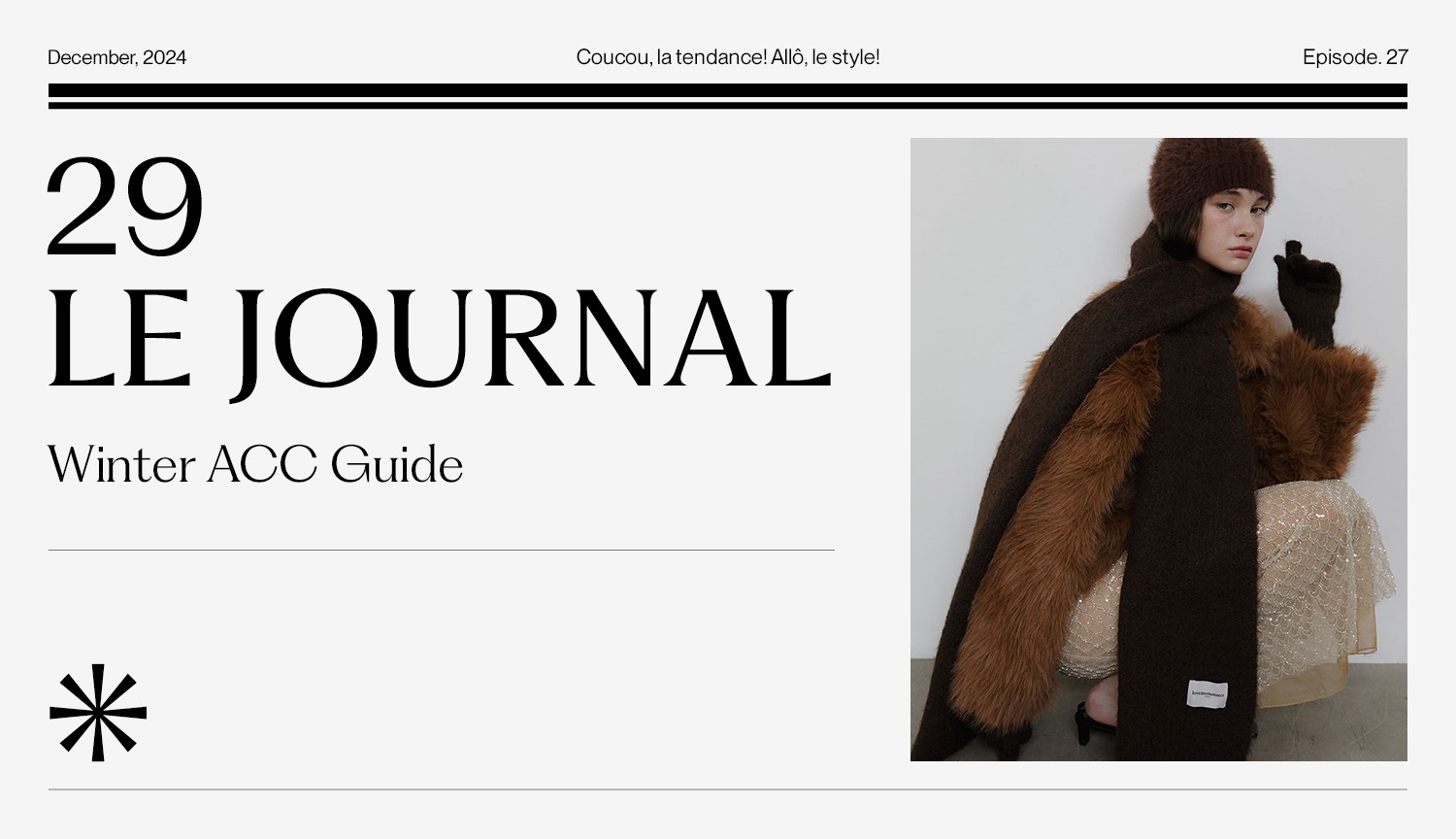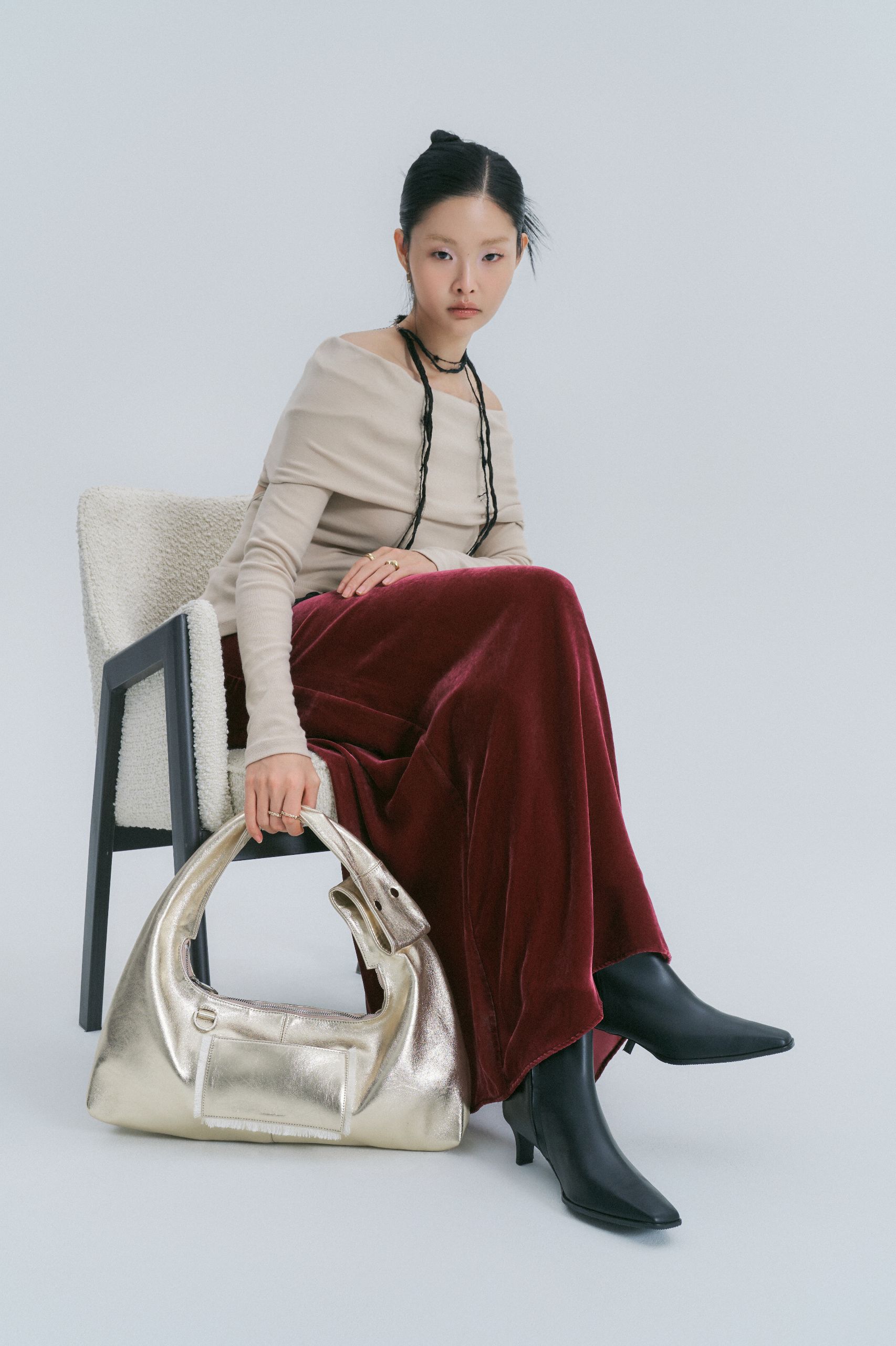 매니시한 시크함부터 로맨틱한 우아함까지, 플리스와 벨벳으로 완성한 연말 파티룩. 편안함을 자랑하는 내추럴한 플리스 팬츠는 퍼 소재 아우터와 과감히 매치해 세련된 무드를 연출했어요. 반면, 화려한 연말 분위기에 어울리는 레드 벨벳 스커트는 오프숄더 톱과 골드 백을 함께 매치해 파티의 주인공다운 강렬한 존재감을 드러냅니다.