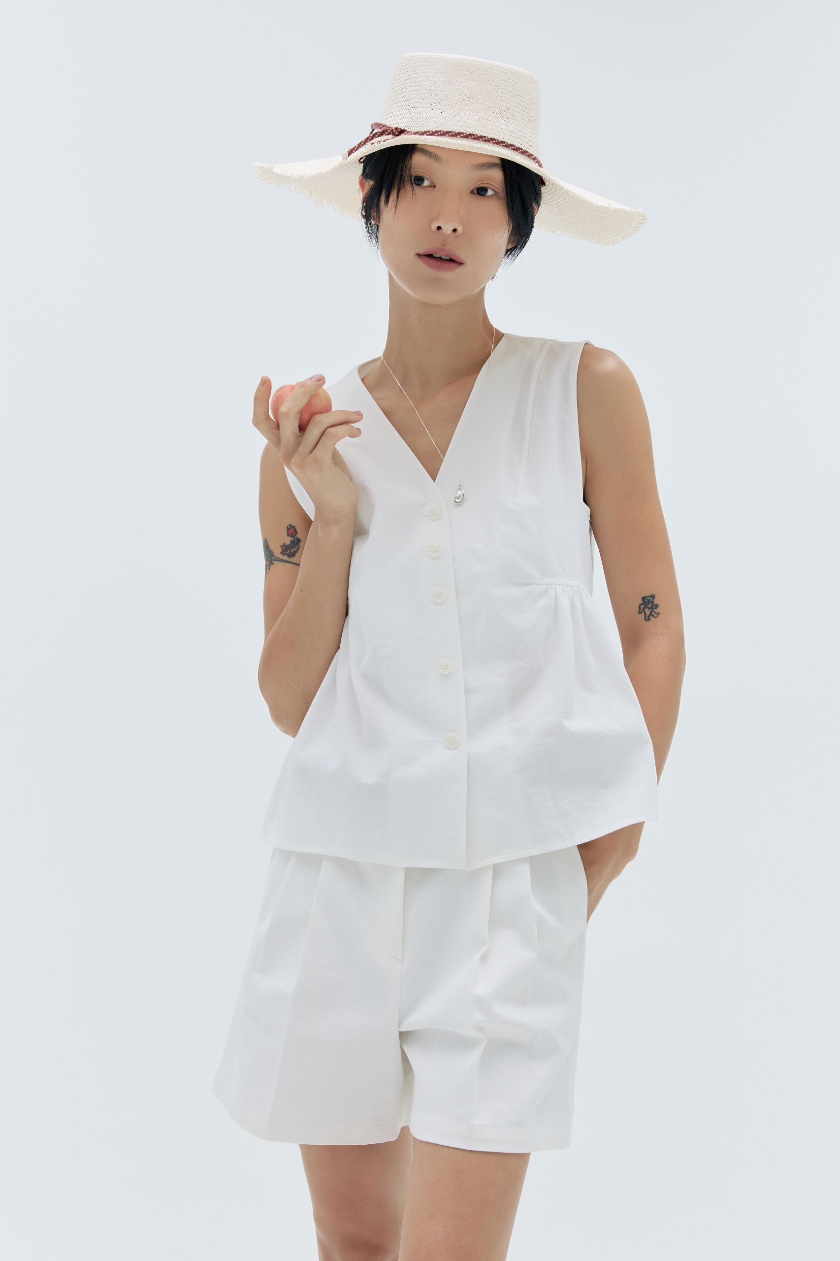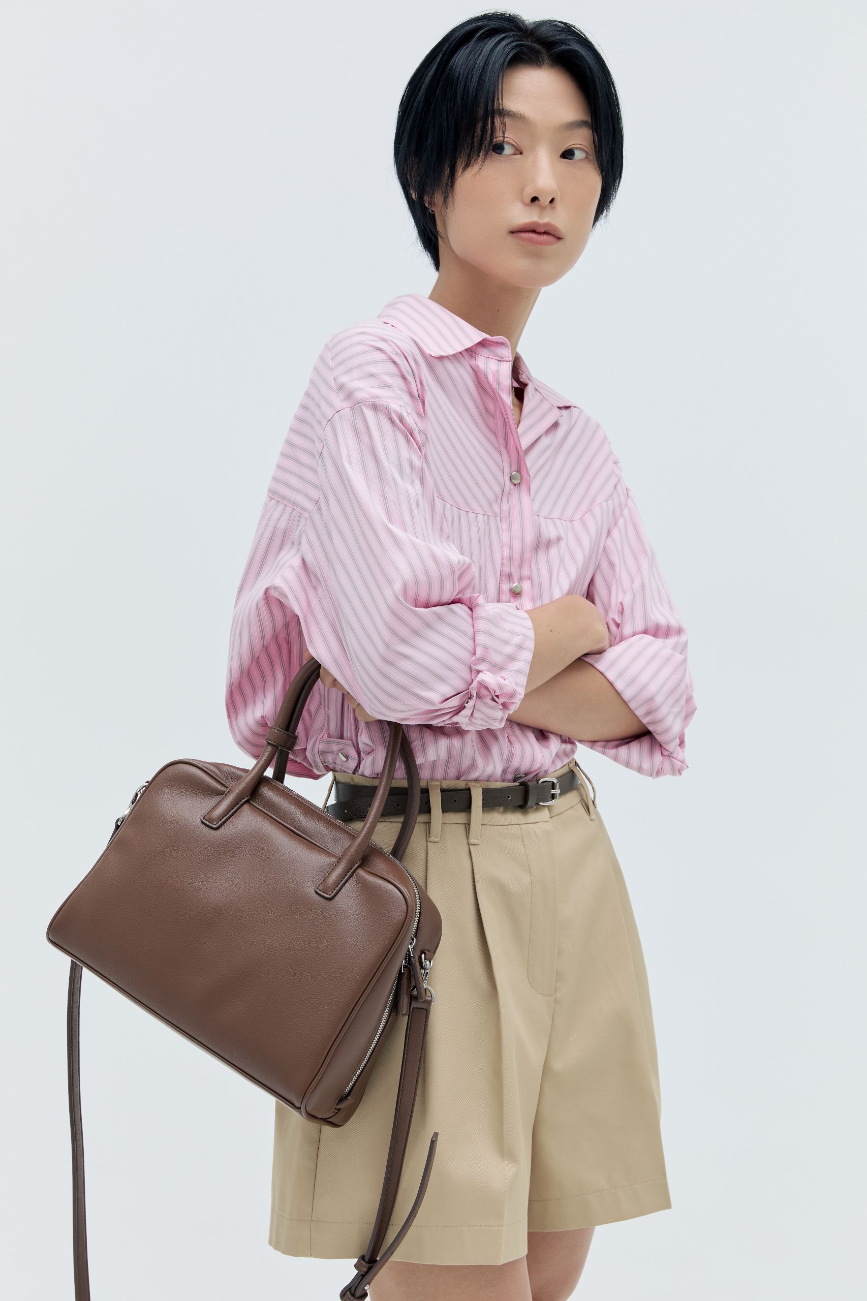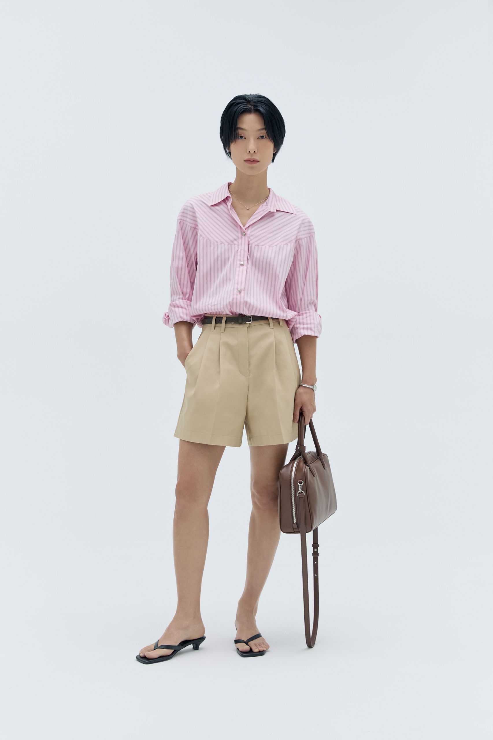 긴 바지를 입는 것조차 버거운 날씨, 무릎 위까지 올라오는 쇼츠가 그 진가를 발휘할 때입니다. 특히 고슬한 질감의 코튼 쇼츠는 스트라이프 셔츠나 정제된 베스트와 함께한다면 낭만적인 프렌치 룩을 완성할 수 있어요. 여기에 가벼운 숄더백 또는 파나마 햇을 더해보세요. 프랑스 영화 속 한 장면처럼, 격식을 잃지 않으면서도 여유로운 분위기를 느낄 수 있을 거예요.