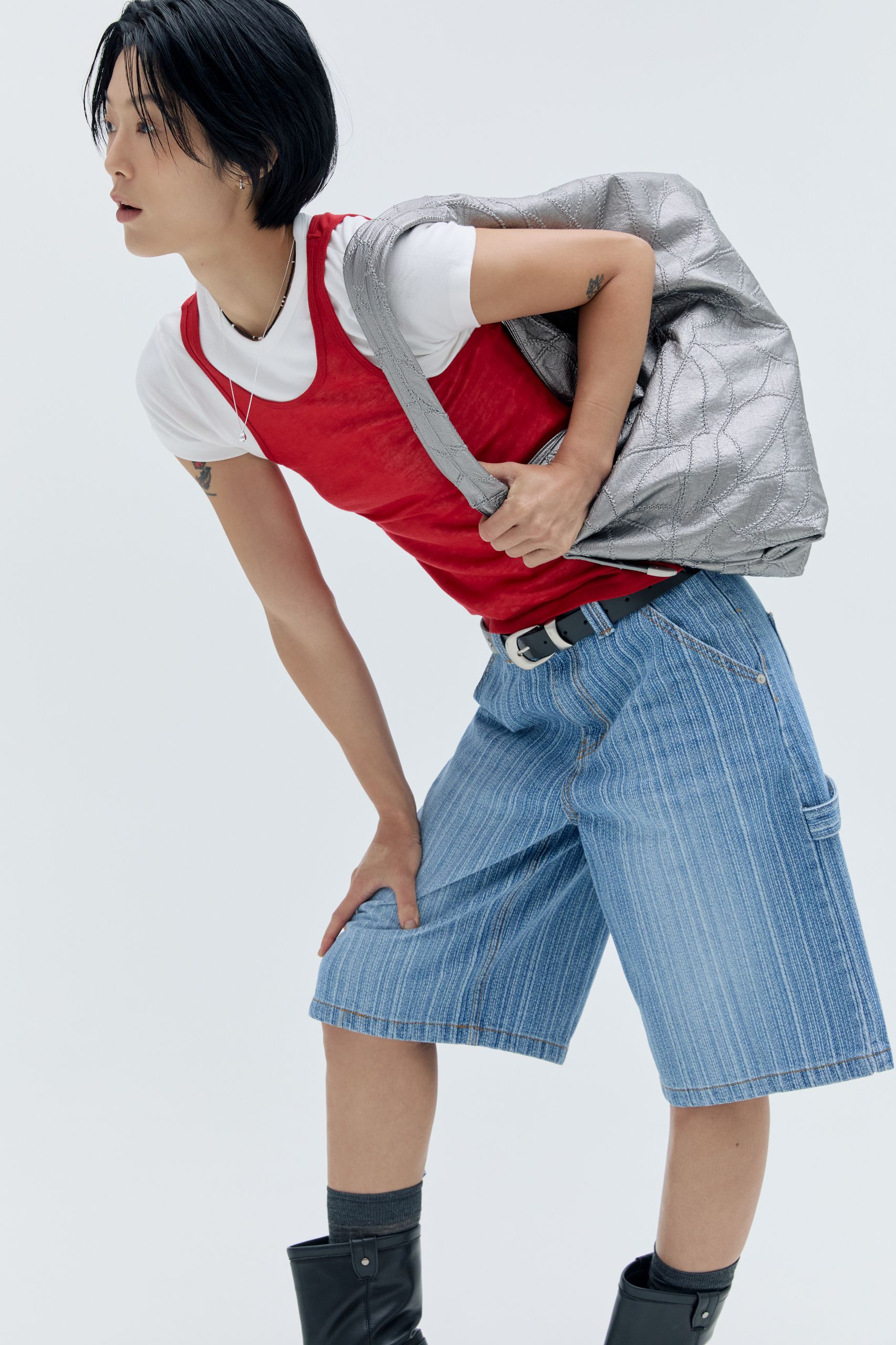 데님 팬츠만큼 날씨와 계절을 타지 않는 아이템도 드물죠. 특히 여름은 좀 더 과감하고 다양한 스타일을 시도해 보기 좋은 계절이에요. 담백한 분위기의 스트레이트 팬츠도 어깨 라인을 드러내는 튜브톱이나 개성있는 액세서리와 함께하면 색다른 분위기를 연출할 수 있어요. 장마철에는 긴 바지보다 무릎을 덮는 버뮤다 팬츠를 추천해요. 여름 부츠와 함께 매치하면 스타일과 실용성을 모두 갖춘 스타일링이 완성돼요.