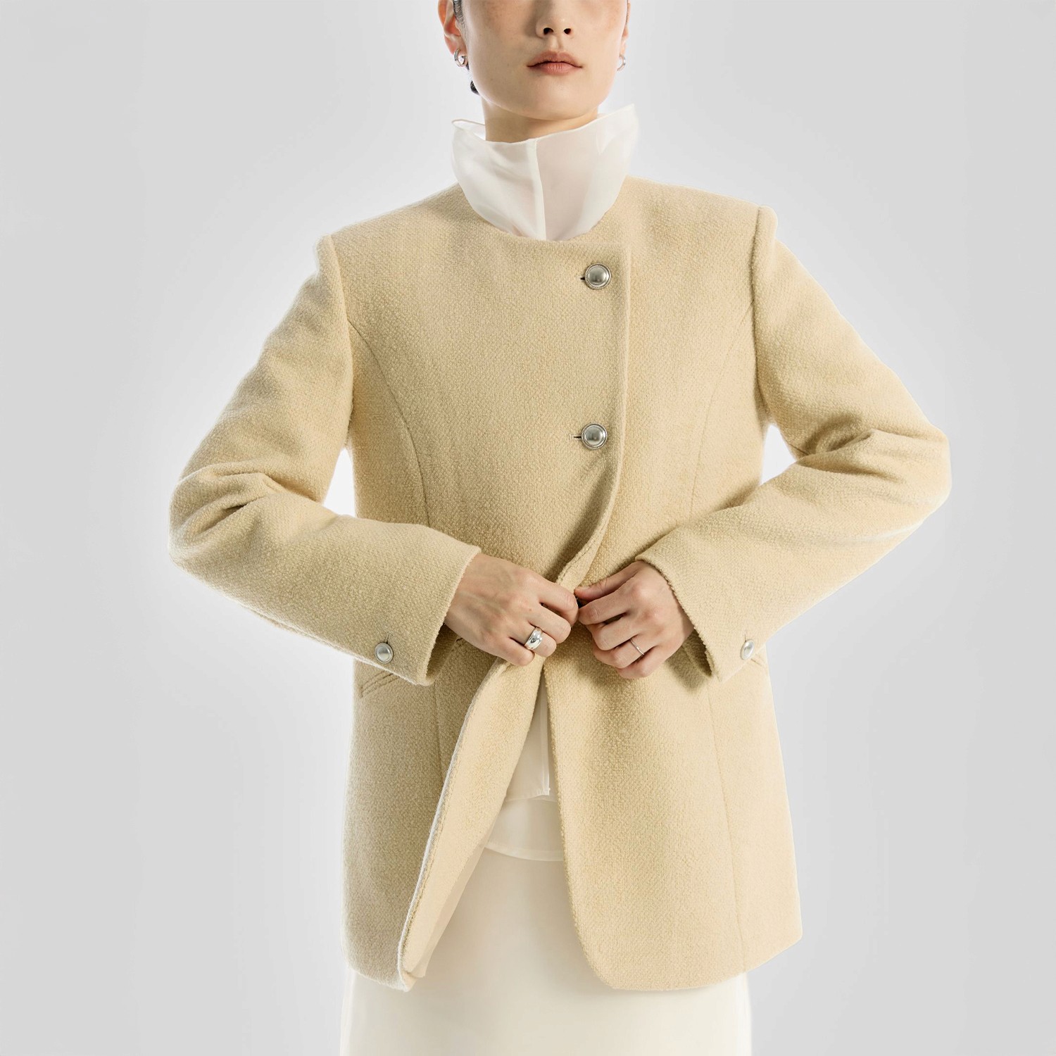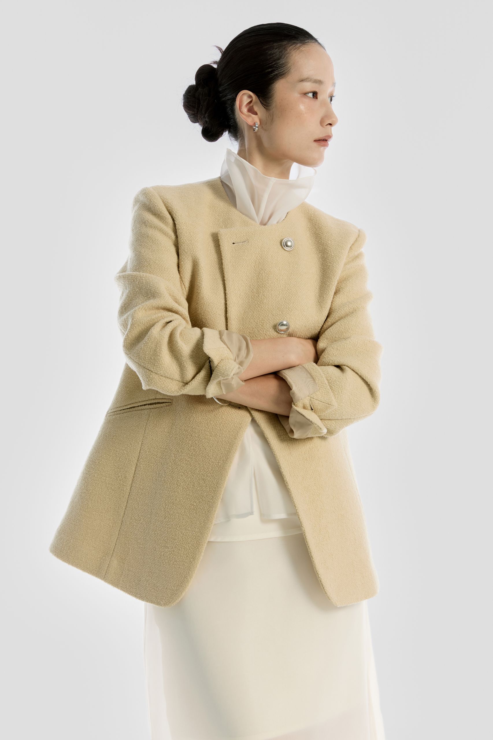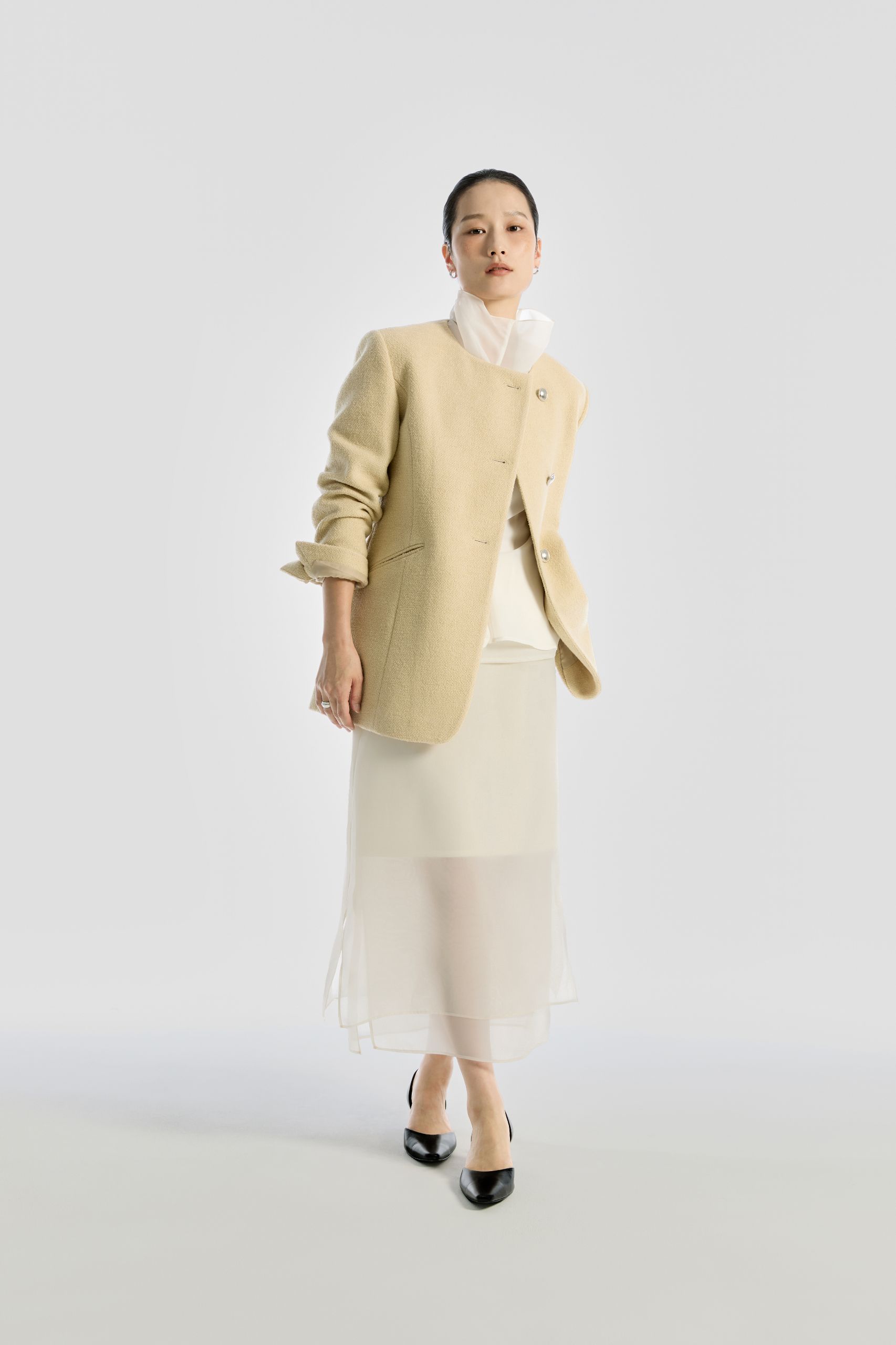 교복과 클럽 재킷에서 시작된 블레이저는 단정함의 상징이지만, 그 깔끔함 위에서 다양한 스타일로 변주됩니다. 카리스마 있는 포멀룩을 원한다면 간결한 실루엣의 싱글 브레스티드를 슬랙스와 매치해 보세요. 차분하고 우아한 무드를 원한다면 부드러운 라운드넥 블레이저에 실키한 블라우스를 더해보세요. 단정함 속 디테일의 차이로 서로 다른 인상을 남기는 것, 그것이 바로 블레이저가 가진 매력이랍니다.