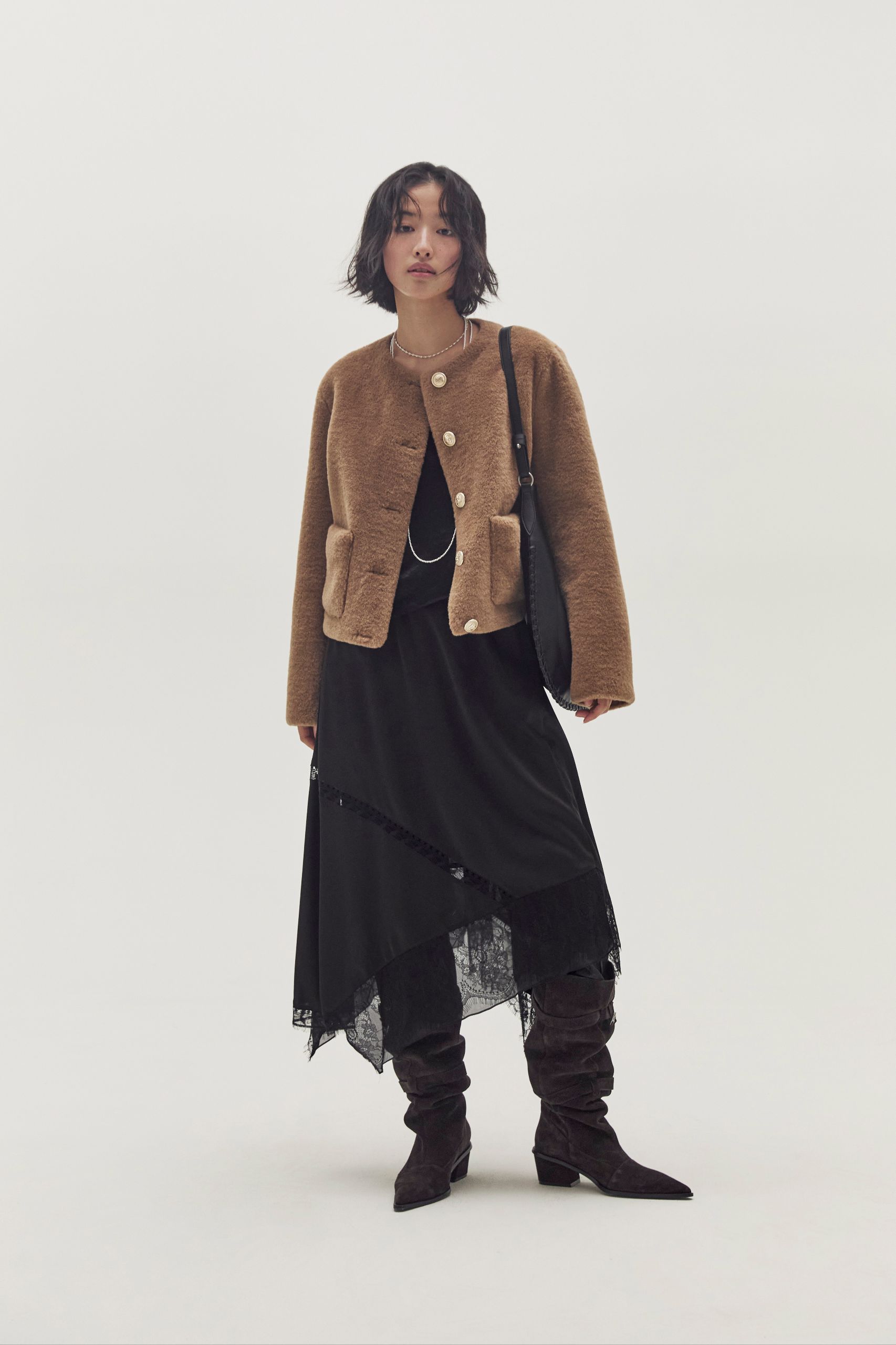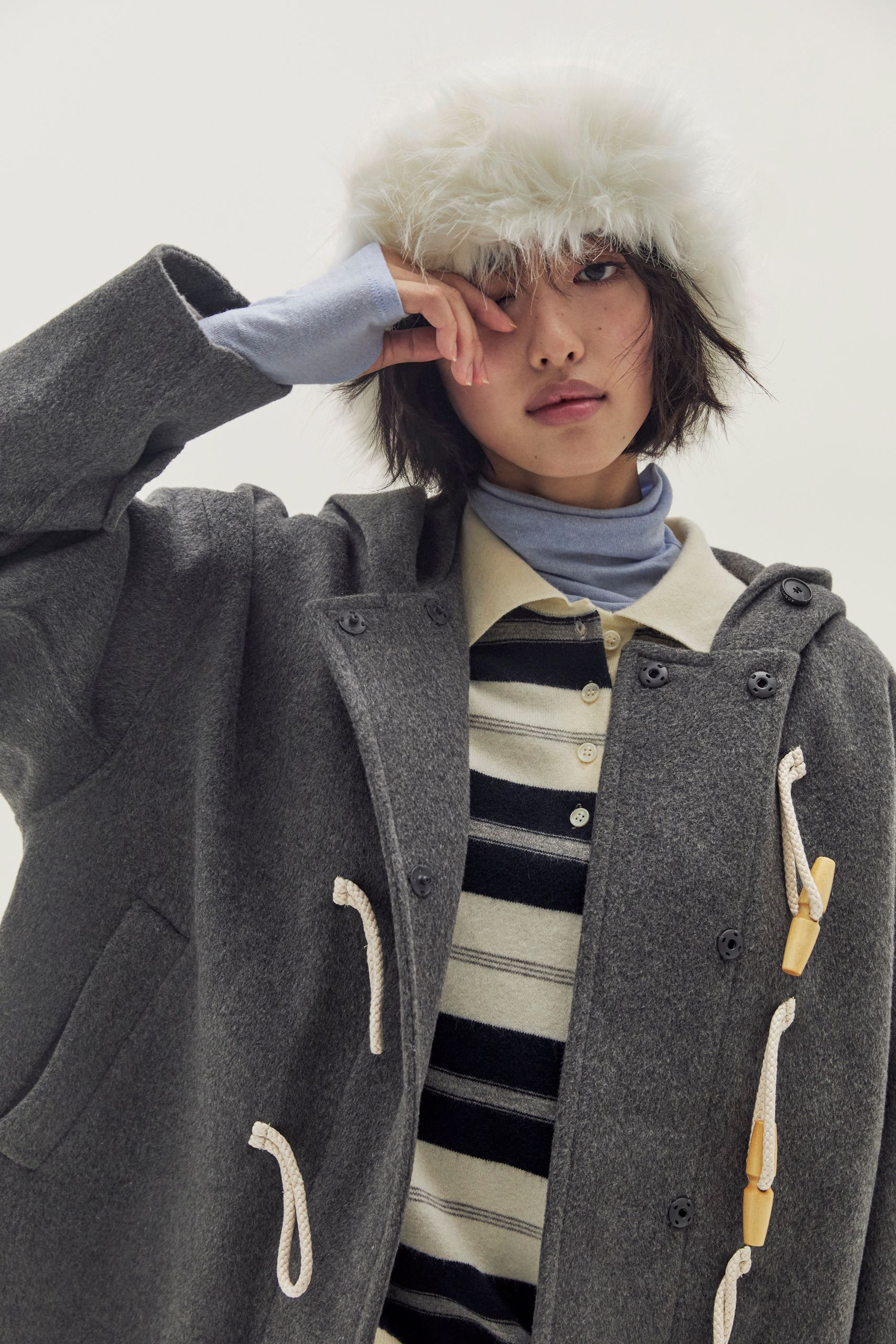 옷장 속 기본 아이템만으로 만족할 수 없는 날, 존재감이 확실한 숏 코트를 나만의 방식으로 활용해 보세요. 부드럽고 풍성한 퍼 재킷에 슬라우치 부츠와 레이어드 액세서리로 자유로운 보헤미안 무드를 연출할 수 있죠. 여유 있는 핏의 후드 코트엔 레그 워머와 트루퍼를 더한다면 머리부터 발끝까지 따뜻한 사랑스러운 룩을 만들 수 있을 거예요.