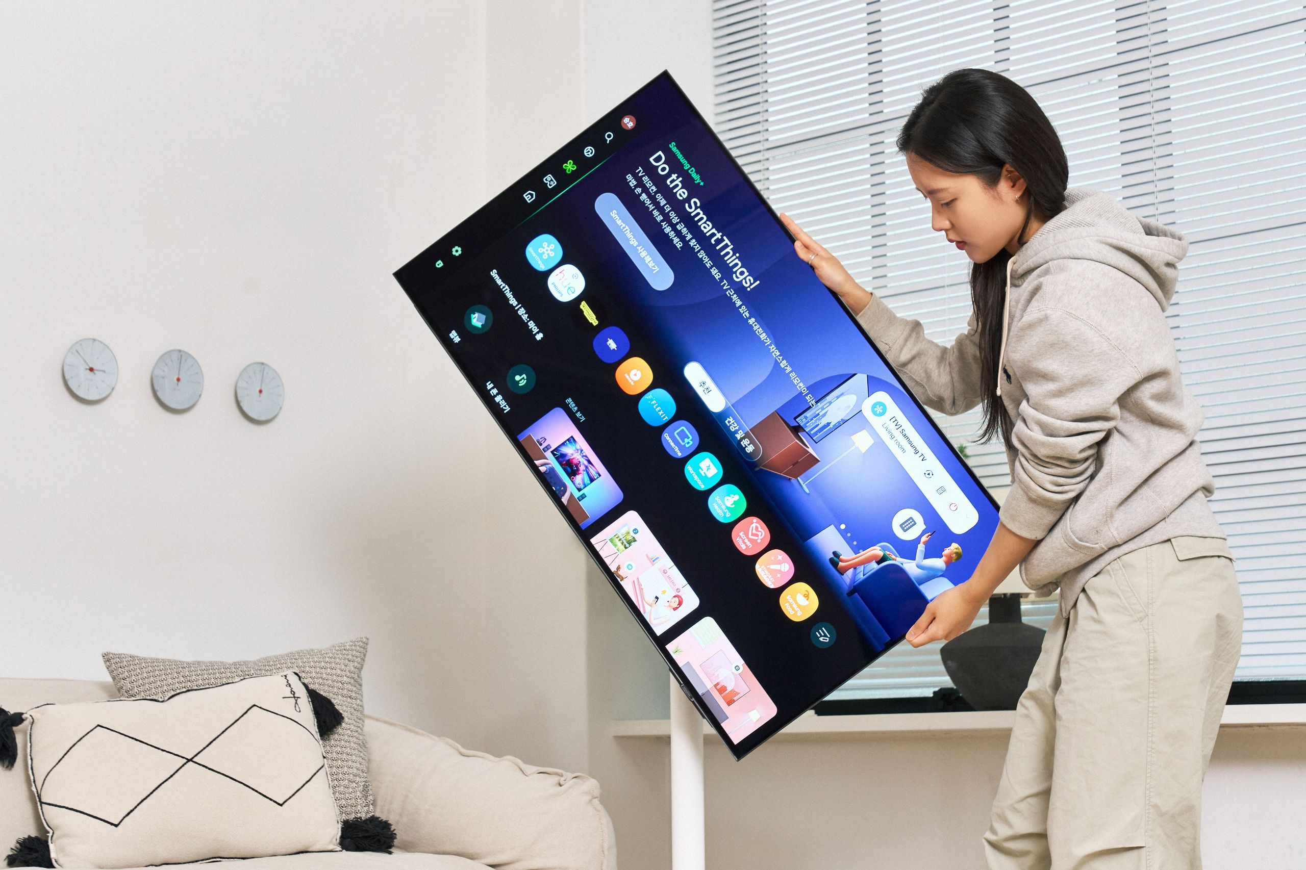 TV 하나만으로 우리 집을 단숨에 AI 스마트 홈으로 바꿔주는 마법같은 경험. TV를 향해 '하이 빅스비'하고 질문을 건네는 순간, 나만의 음성 비서 빅스비가 즉시 명쾌한 대답을 들려줄 거예요. 놀랍도록 선명하고 생생한 OLED 4K 화질과 우레탄 소재 바퀴 덕분에 슥 밀기만 하면 집 안 어디서든 원하는 콘텐츠를 감상할 수 있어요. 이렇게나 똑똑한데 어디든 편하게 이동까지 가능하다니, 정말 놀랍지 않나요?