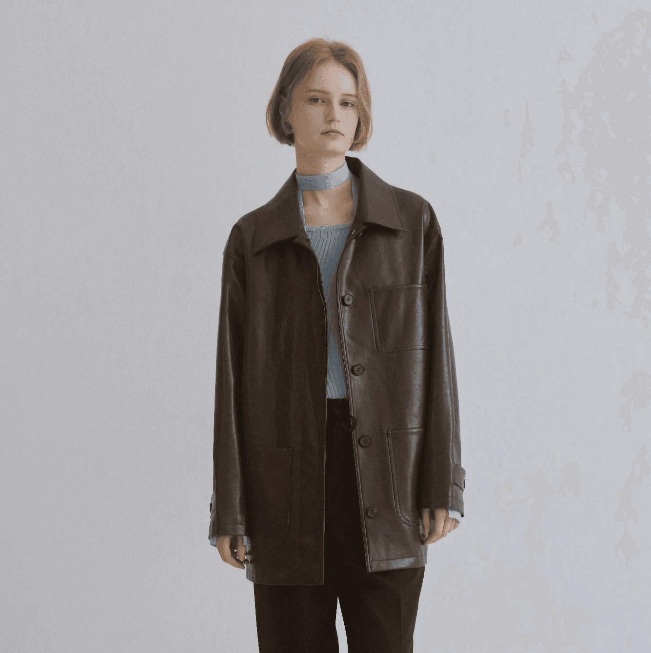 엉덩이를 가려주는 브라운 톤의 가죽 하프 재킷. 허리의 끈 장식으로 핏 조절이 가능함과 동시에 리본을 묶어 우아한 매력을 더할 수 있어요. 빛이 비칠 때마다 은은한 광택이 감돌아 멋스러움도 배가 돼요. 올가을엔 실키 스커트와 매치해 가죽 재킷 특유의 무게감을 중화시켜 보는 건 어떨까요?