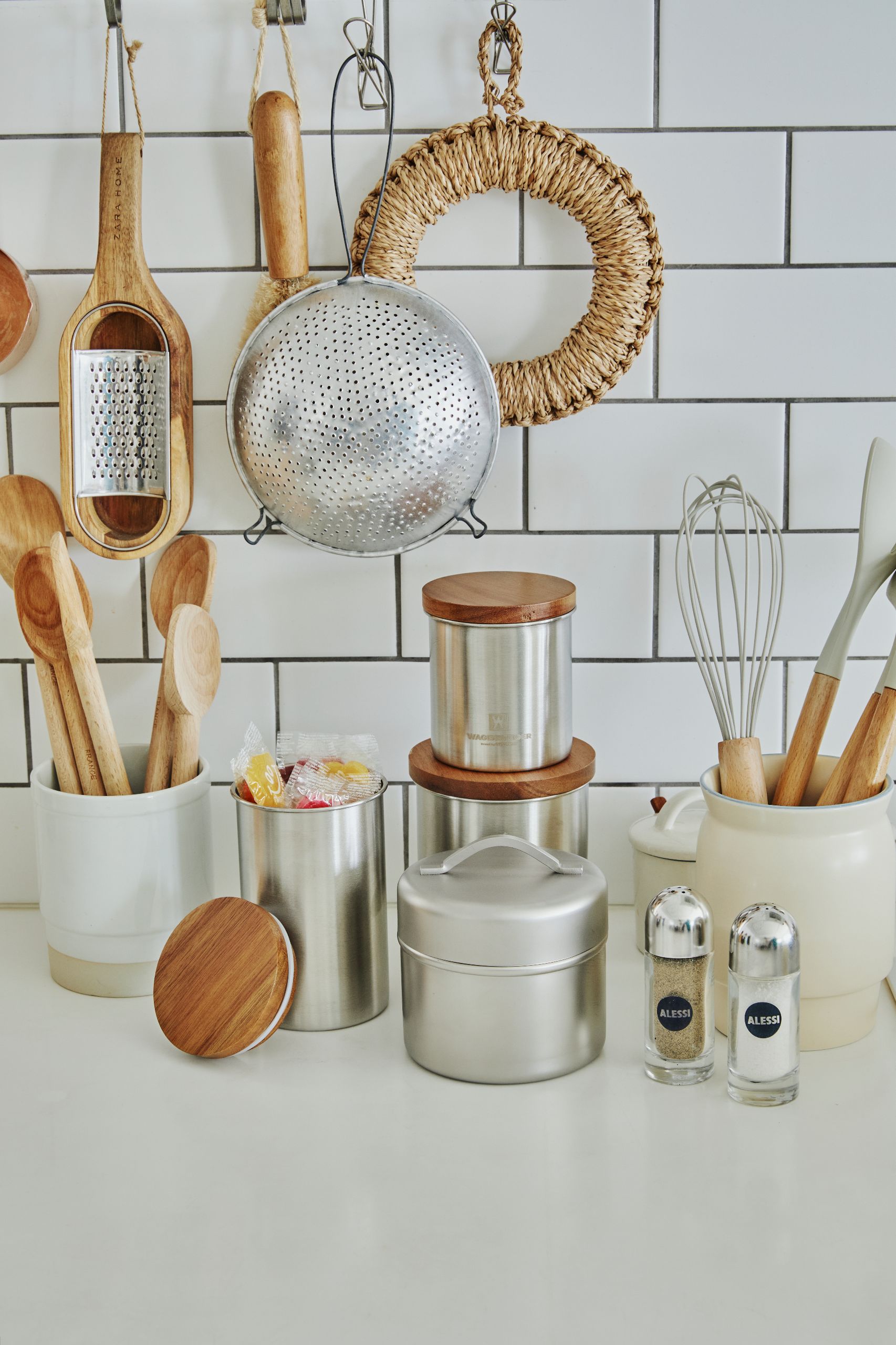 사부작사부작 꺼내 먹을 간식이나 양념같은 식재료는 굳이 냉장고 안에 넣지 말고 주방 한편에 따로 두어요. 공간에 어울릴 적당한 무드의 보관 용기를 찾아보면 좋겠습니다.