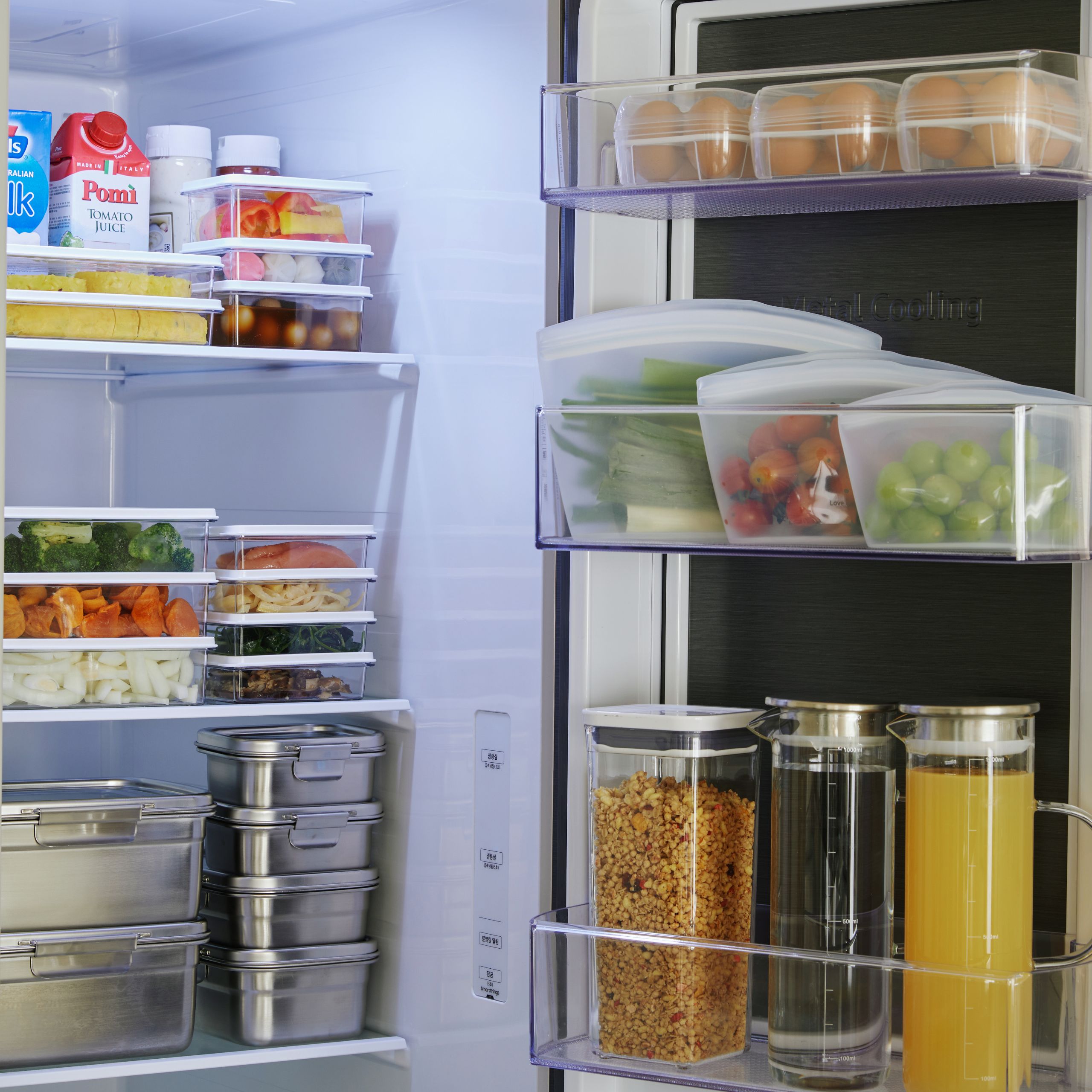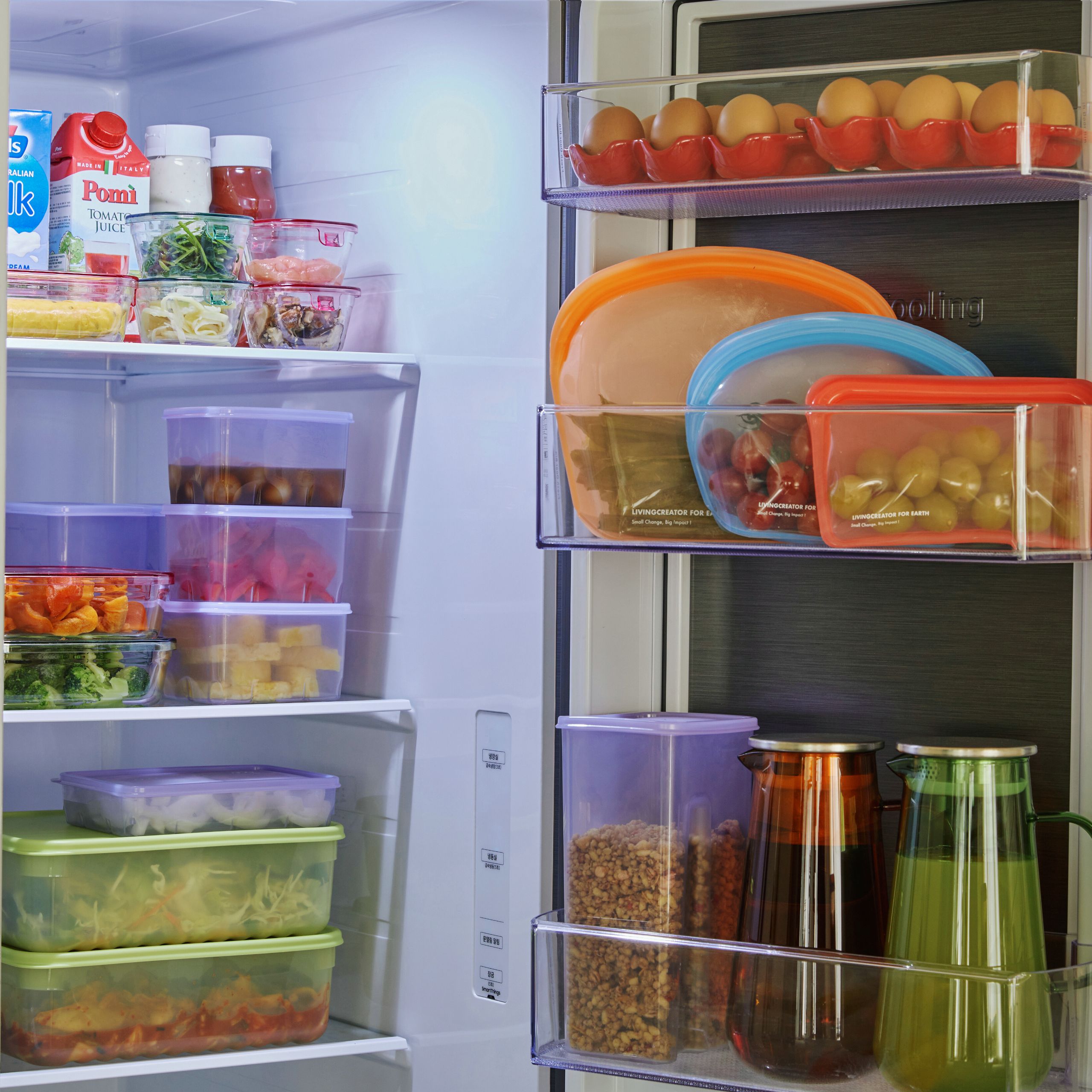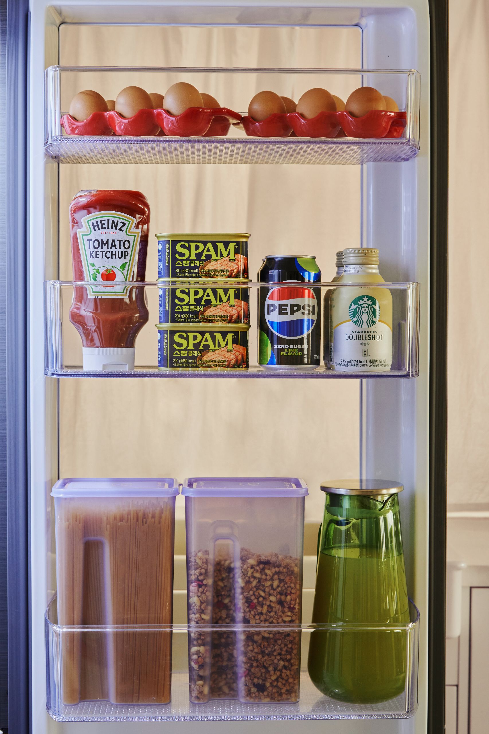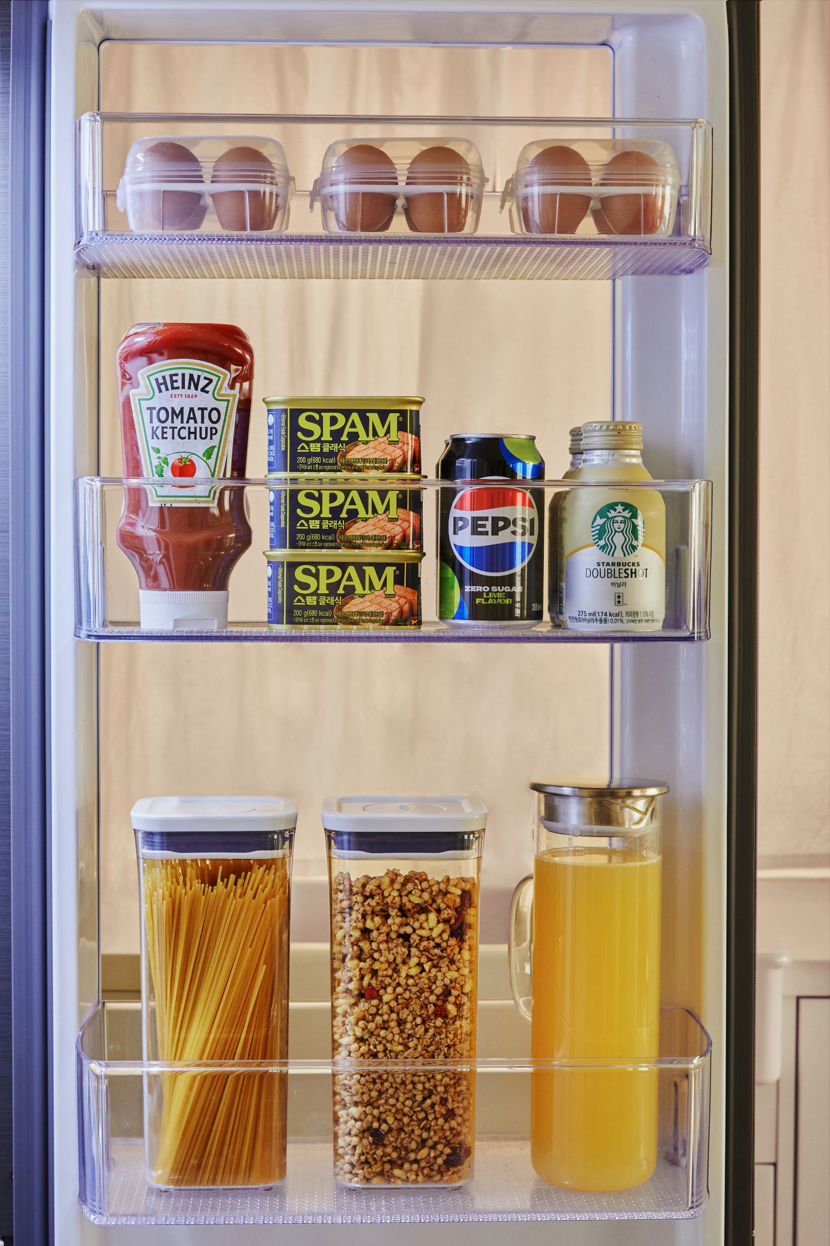 자주 찾게 되는 물병, 시리얼, 계란 같은 건 도어 포켓에 탁탁탁 둘 거예요. 비록 좁은 공간이지만 냉장고를 열 때마다 손이 닿게 되니 이곳에도 취향을 녹여보면 어떨까요?