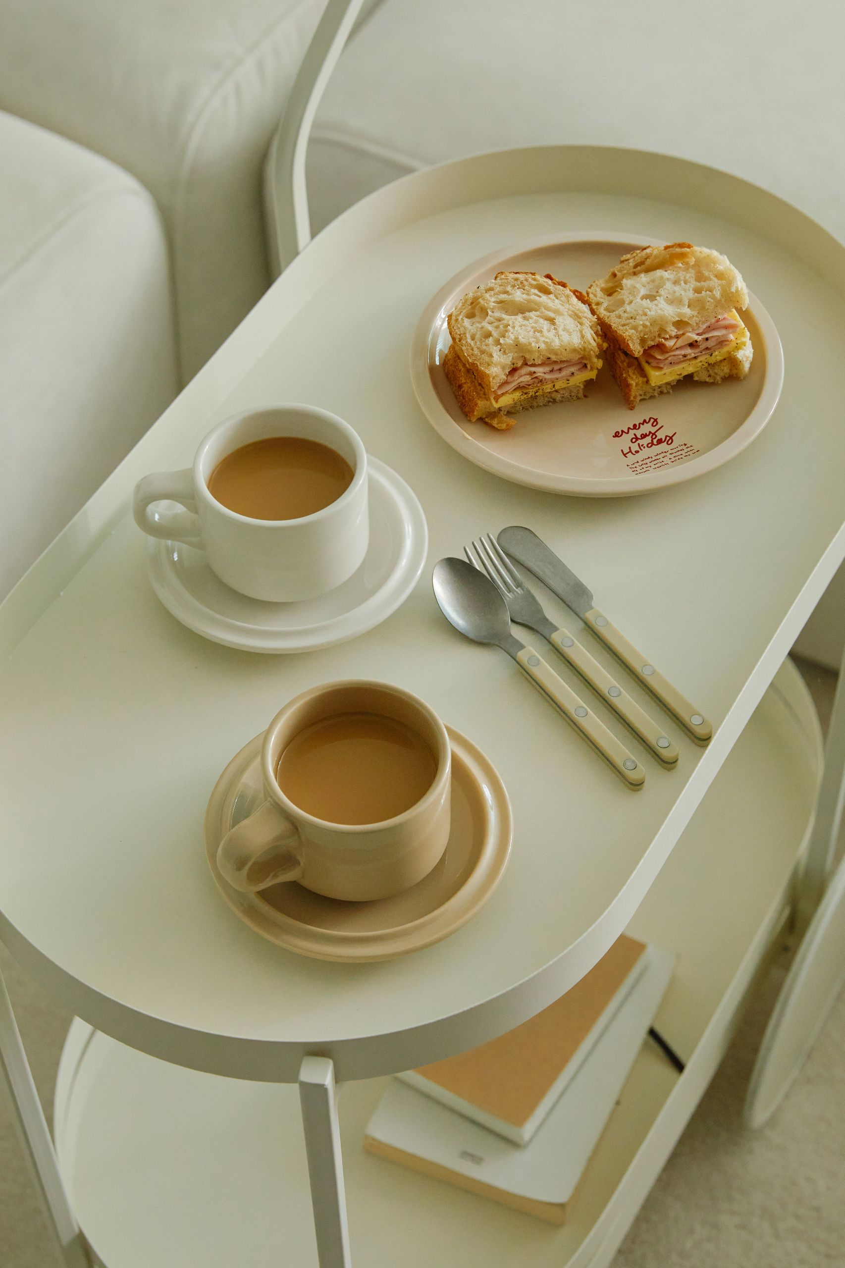 혼자만의 여가, 가족과의 휴식 반가운 손님의 환대까지. 두루 앉아 갖는 티타임 어때요? 적당한 크기의 사이드 테이블에 예쁜 컵과 소서, 커트러리로 분위기를 내어보세요.