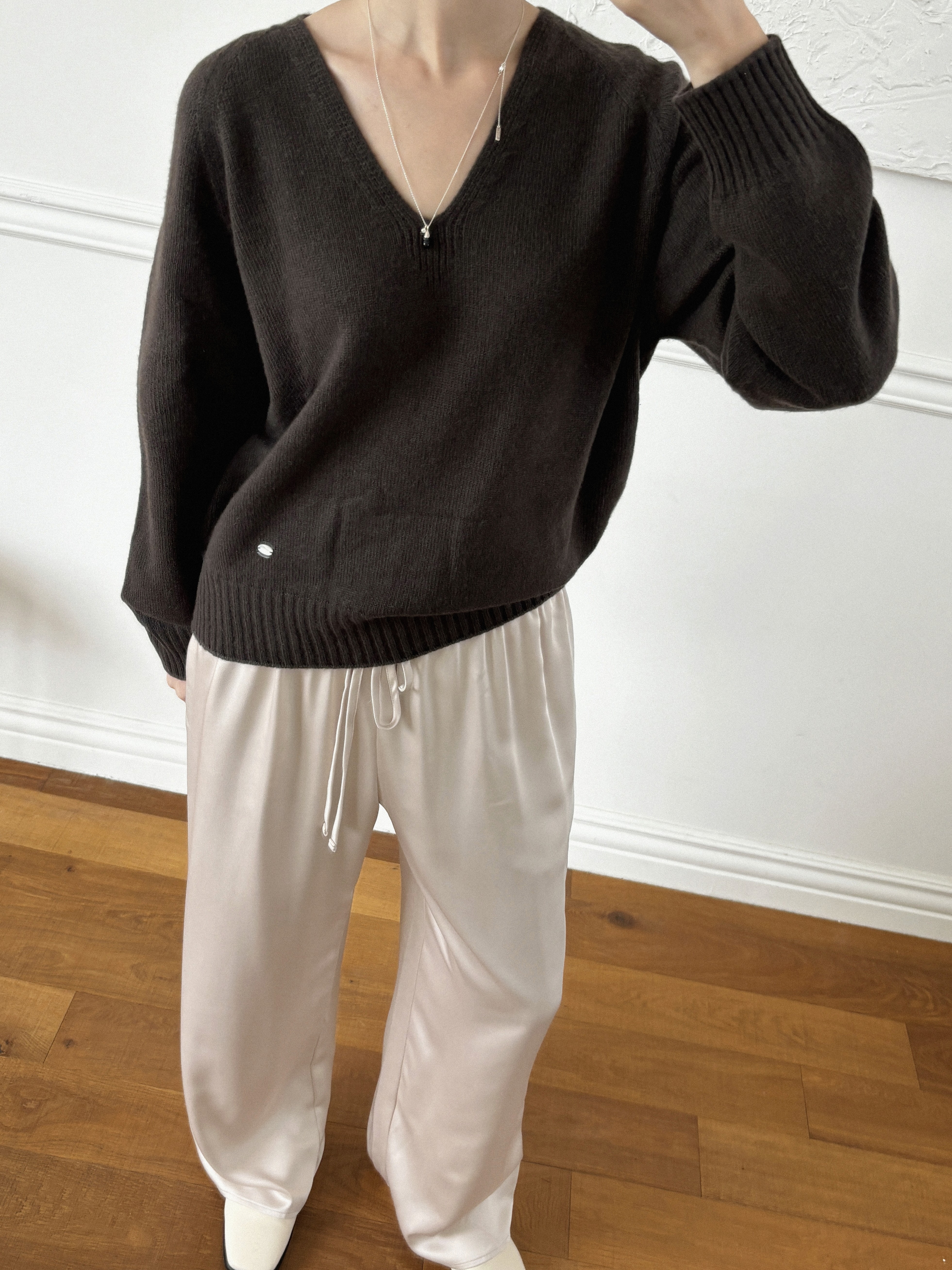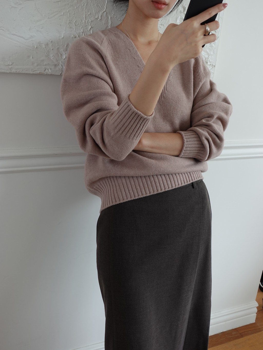 자연스럽게 흐르는 실루엣과 부드러운 촉감으로 대표되는 니트입니다. 모브 핑크와 우윳빛 아이보리 컬러가 많은 사랑을 받고 있으며 기본적인 홀가먼트 봉제 방식으로 완성도를 높였습니다.