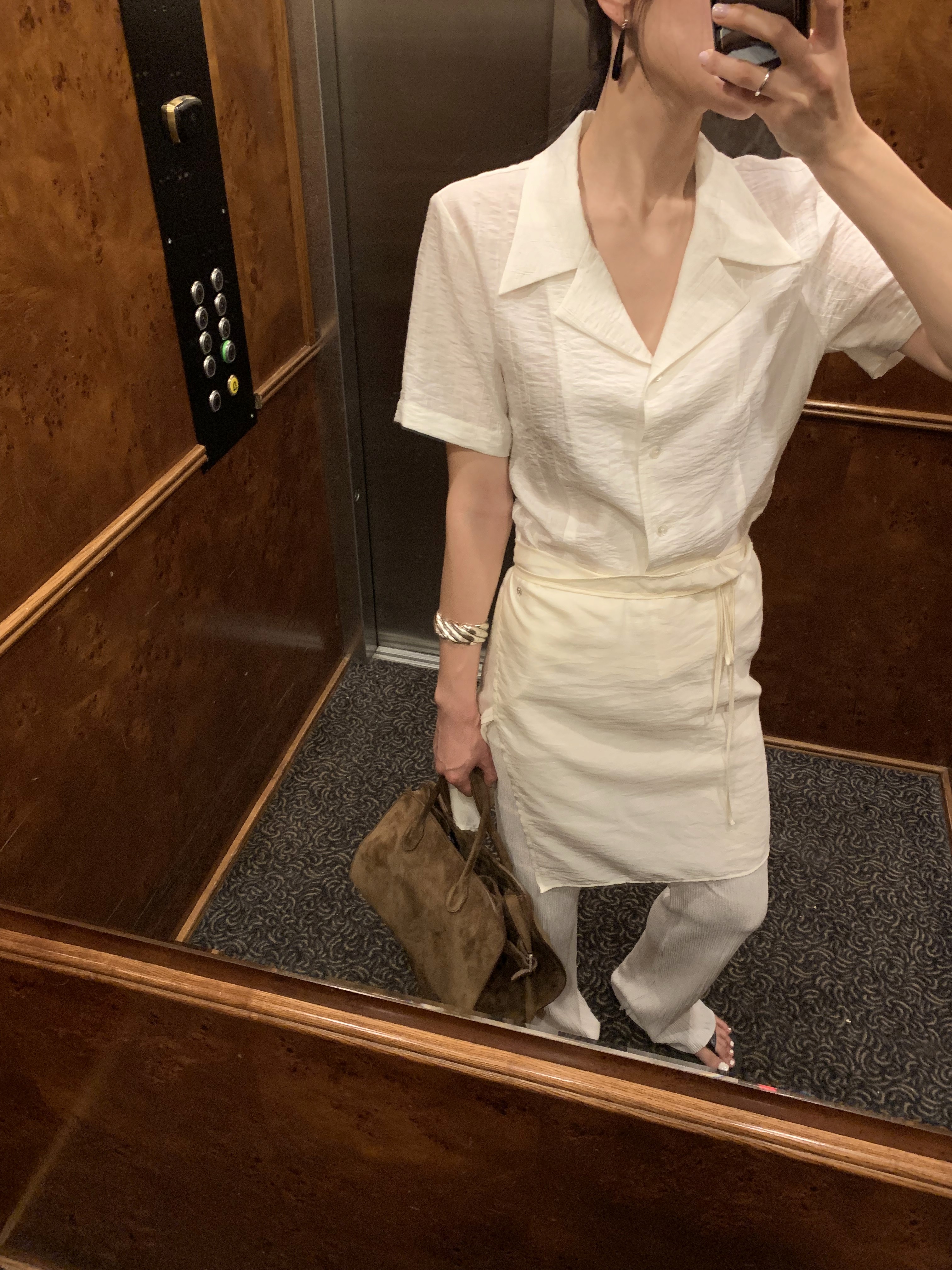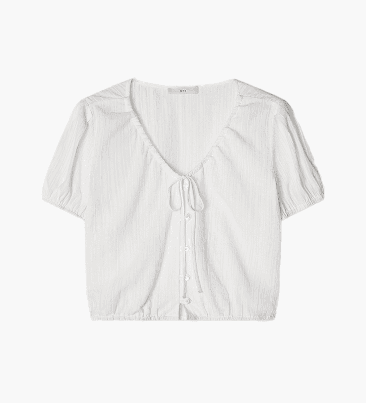 은은한 스트라이프 코튼 소재로 만들어진 화이트 블라우스입니다. 가벼운 터치감과 여유로운 실루엣, 네크라인과 소매의 턱 디테일이 더해져 단정하면서도 우아한 무드를 완성해 줍니다.
