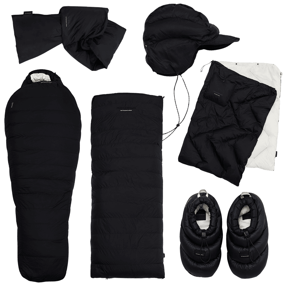 온몸을 감싸주는 침낭과 폭신폭신한 다운 삭스, 깃털처럼 가벼운 다운 머플러와 다운 캡까지, 혹독한 추위에 유용할 방한 아이템을 제작했습니다. 특히 추울 때 발끝에 온기가 필요한데요. 텐트 안에서 혹은 침낭에 들어가기 전 다운 삭스를 신어보세요.