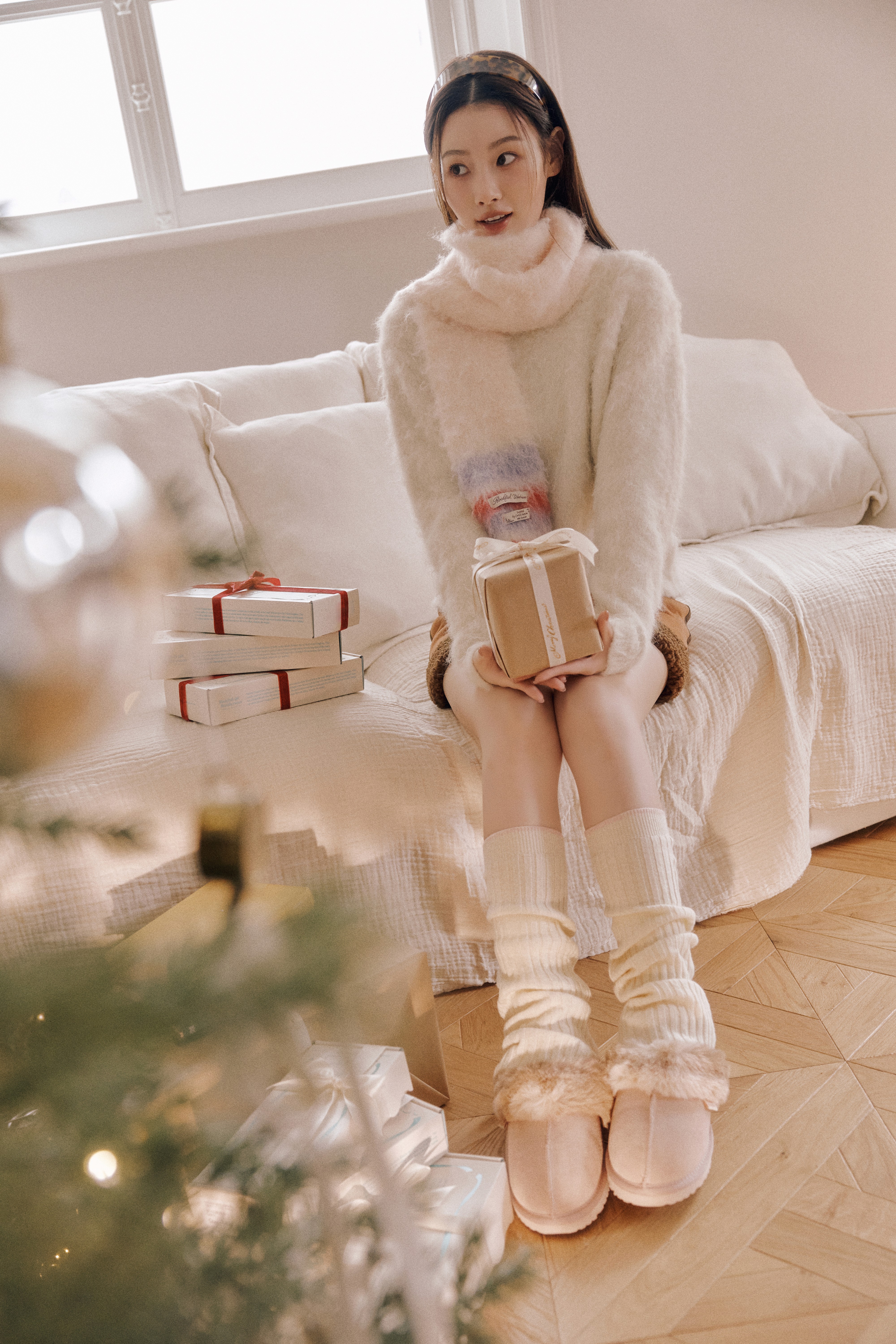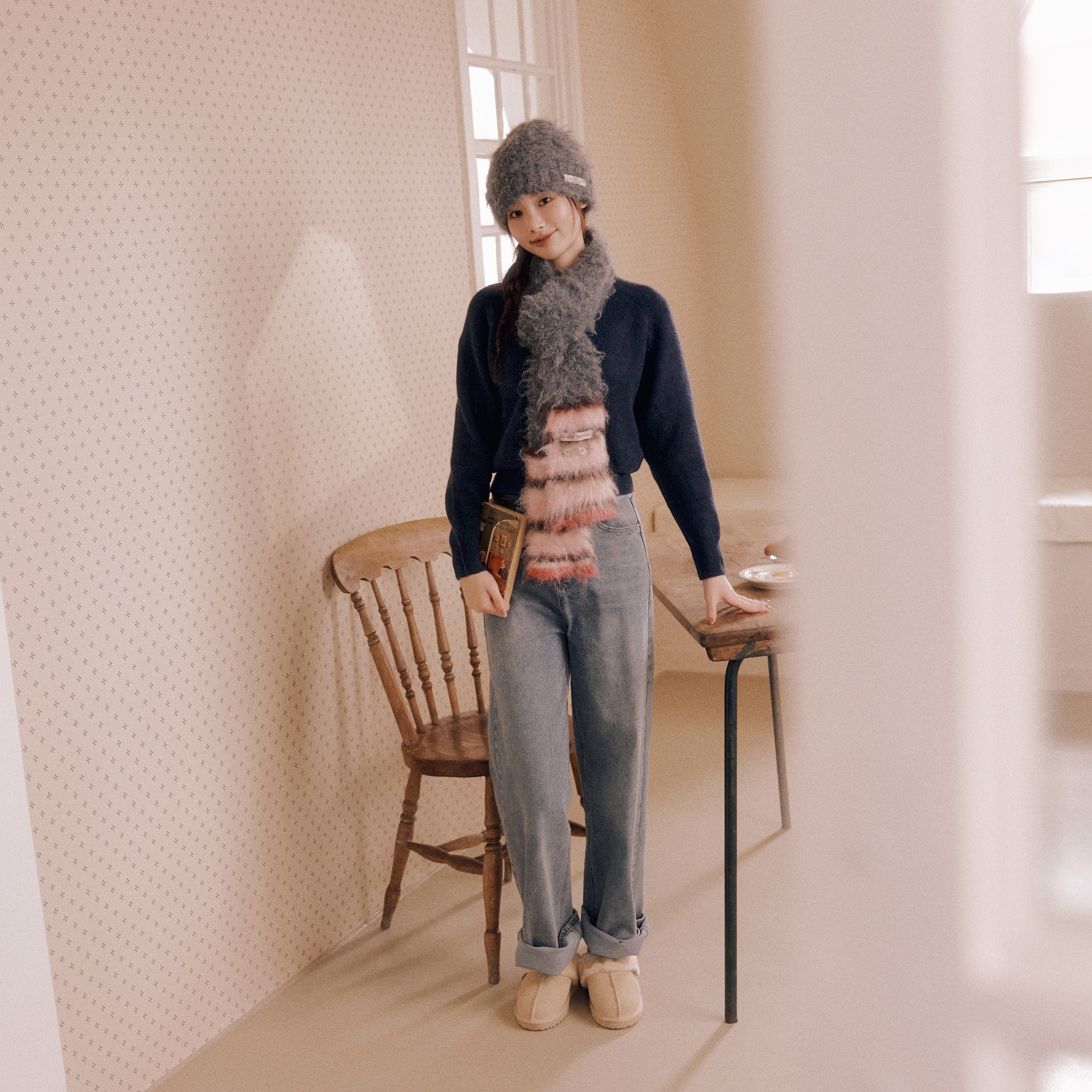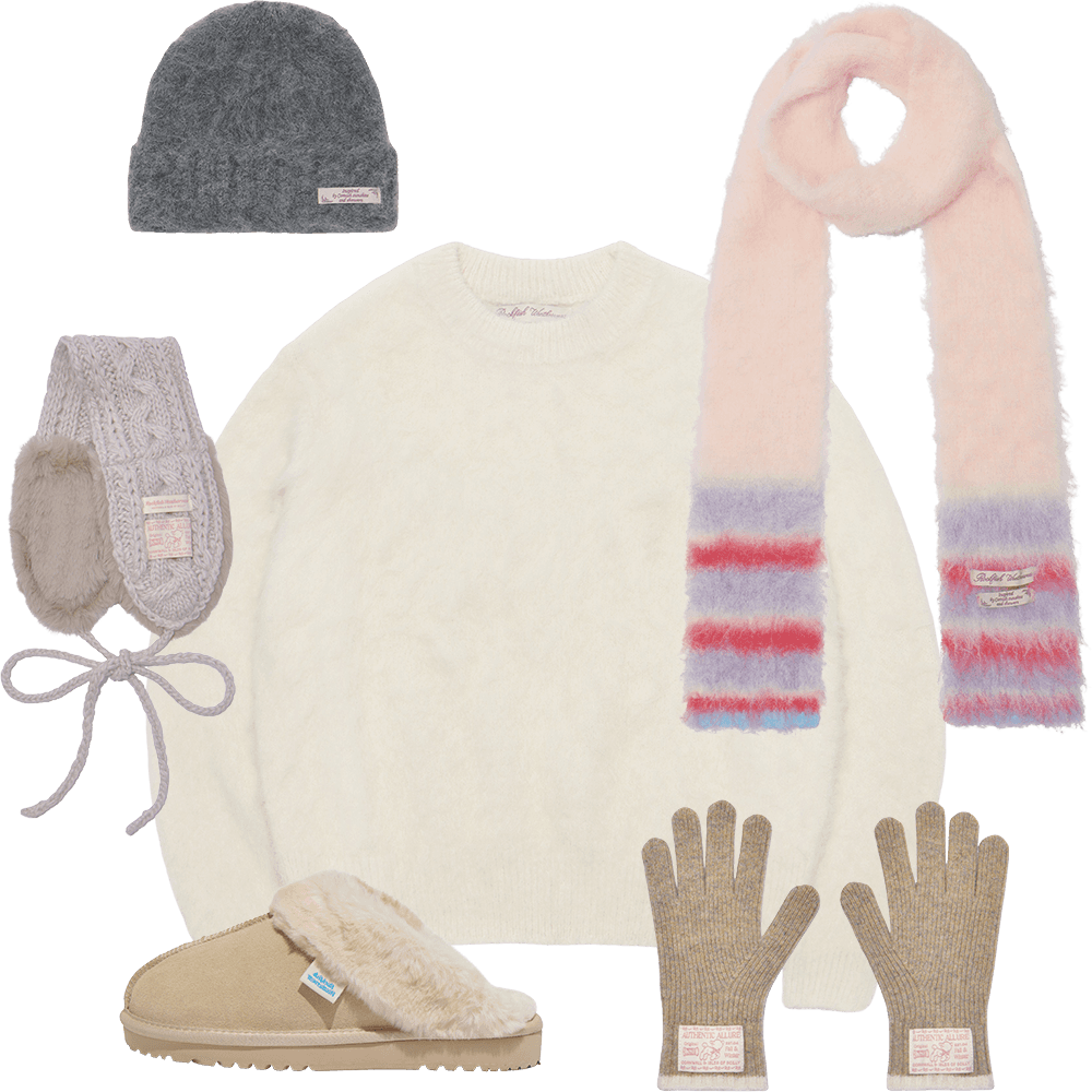 비니와 머플러, 니트와 윈터 슬리퍼까지. 겨울에 꼭 필요한 아이템으로 구성했어요. 특히 추천하고 싶은 제품은 윈터 슬리퍼인데요. 리얼 스웨이드 소재에 부드러운 퍼 안감이 톤온톤으로 매치되어 고급스럽고 사랑스러운 느낌을 자아냅니다. 발바닥에 귀여운 양 일러스트 라벨 포인트로 귀여움까지 더했으니 눈여겨봐 주세요!