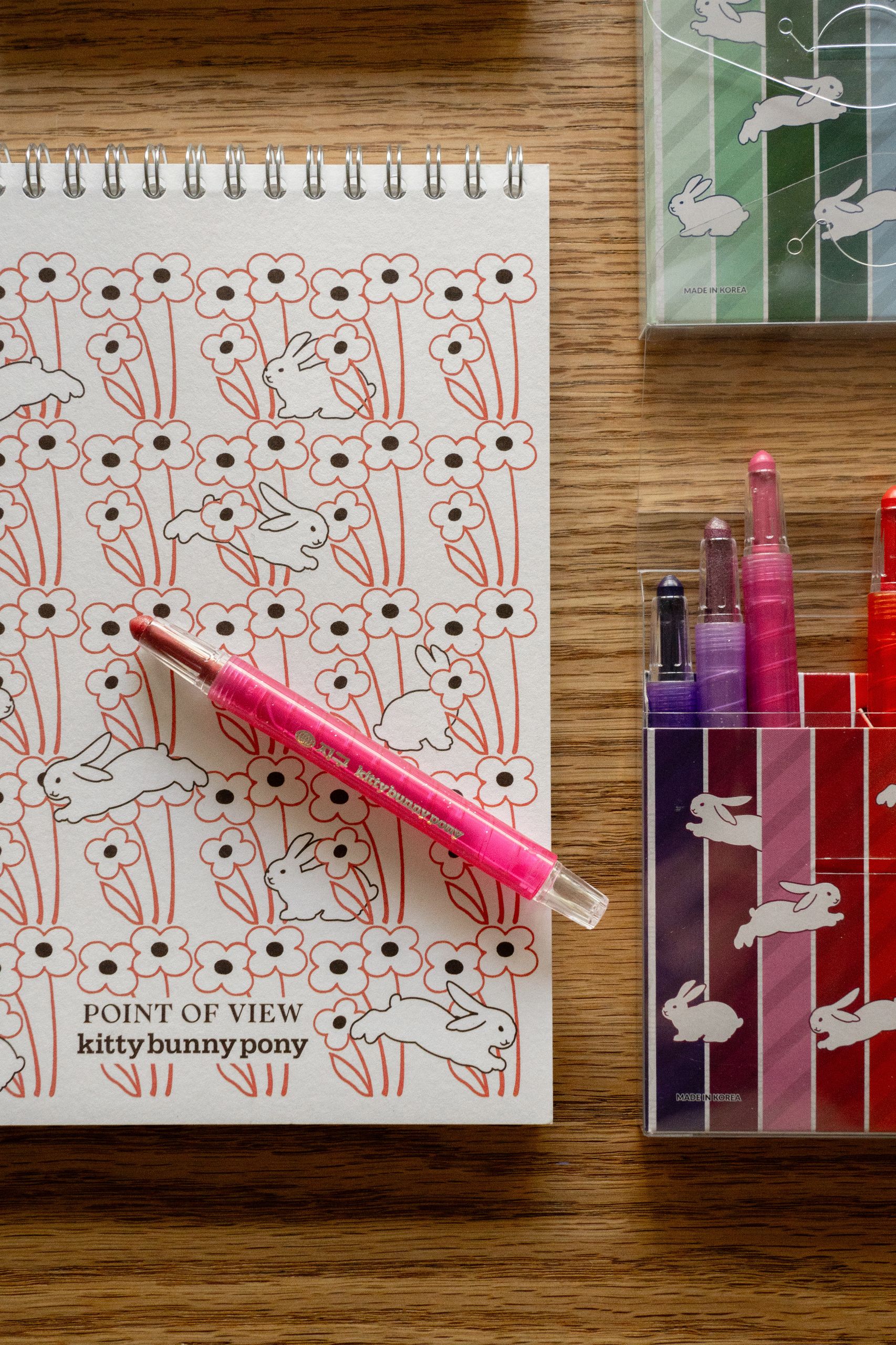 지구화학과 키티버니포니의 협업은 키티버니포니의 패턴 속의 폴짝 뛰어노는 버니처럼, 어른이 된 우리가 여전히 문구의 순수한 기쁨을 느끼길 바라며 탄생했어요.
